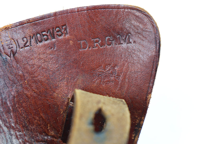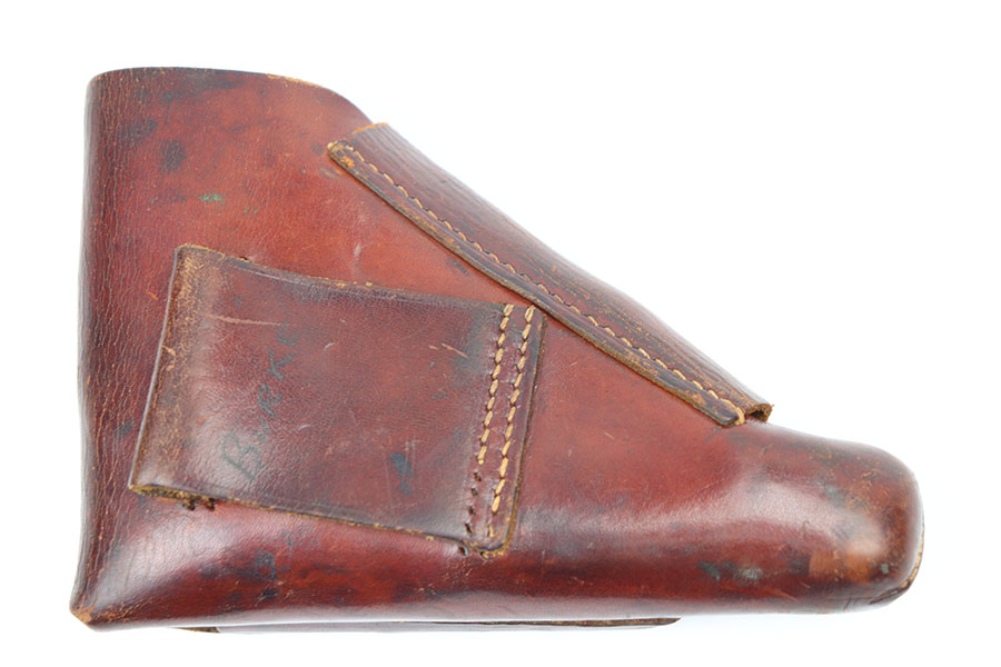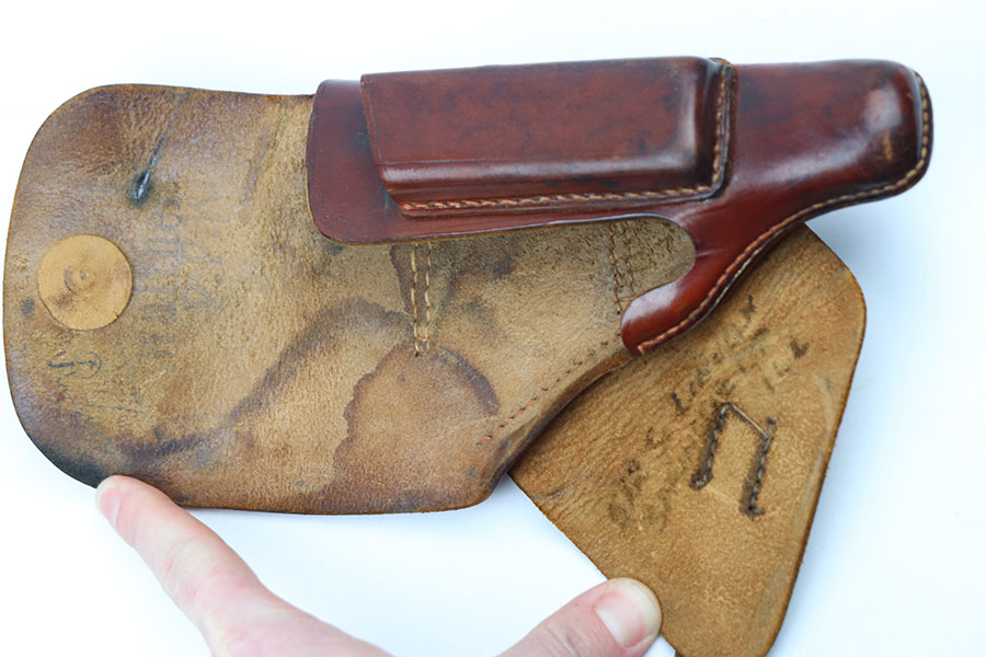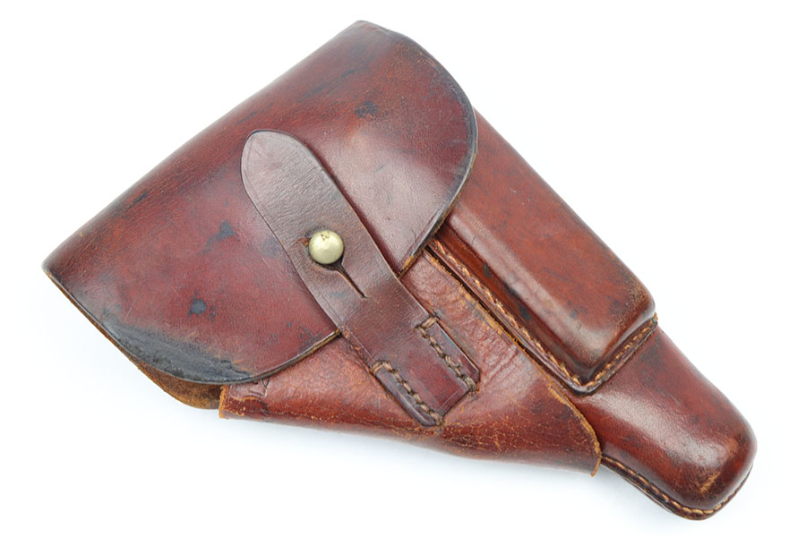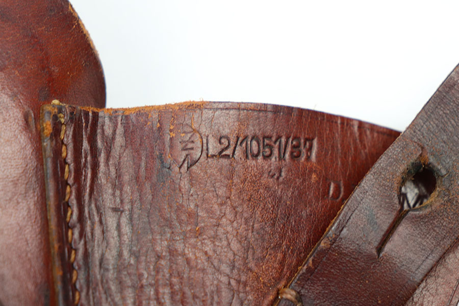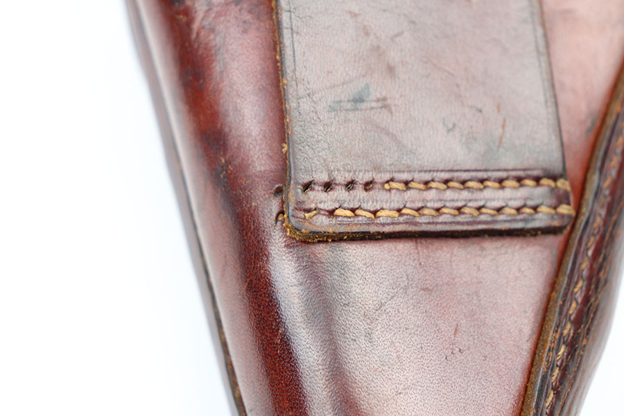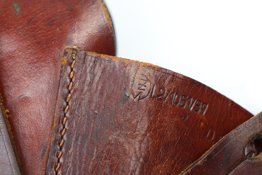 2/19/21 – This is an extremely hard to find AKAH PPK holster that is also RZM maker stamped. The holster is marked on the side flap and under the closure strap. See photos – these are seldom found and less common than SA or Party Leader PPK holsters. The leather is in great overall condition with some mild wear from aging and use. Stitching is all original and in tact.