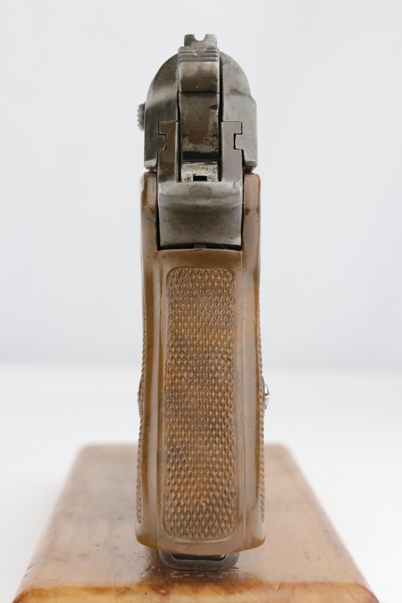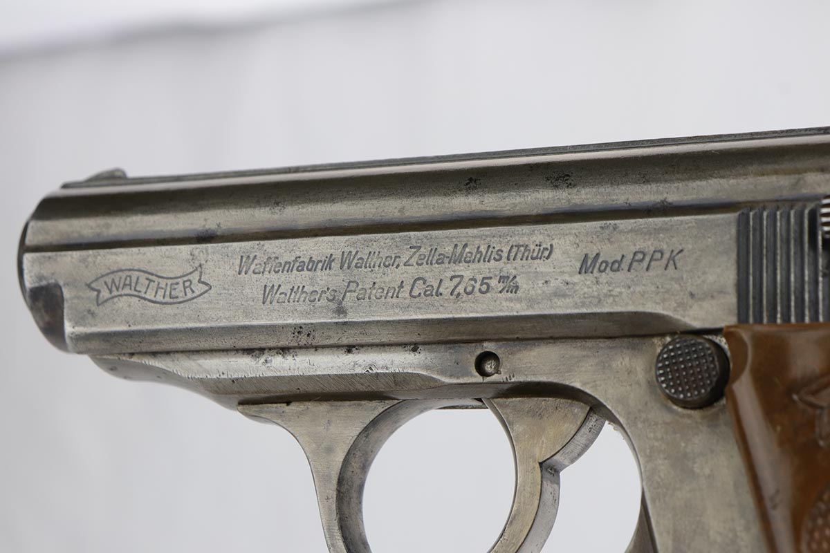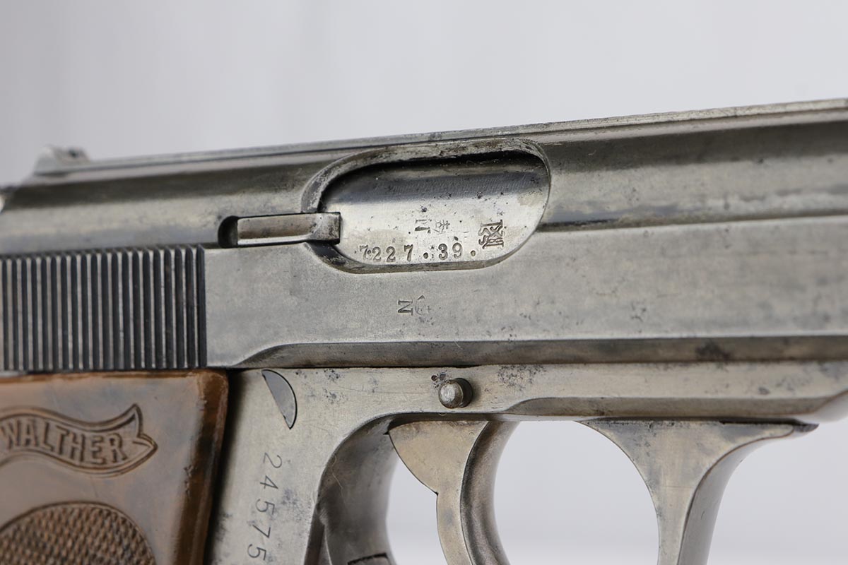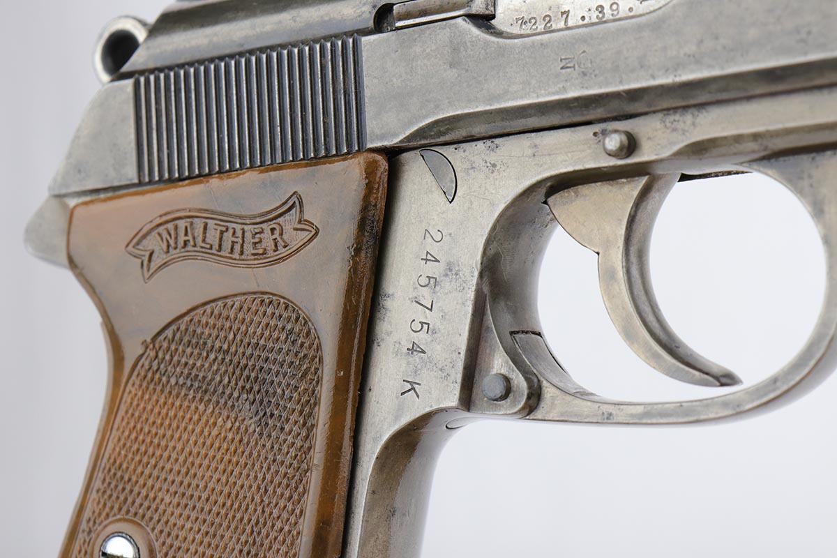 11/20/19 – This is an ultra rare Walther PPK variation that was issued to the Czech Police. There were only about 600 total PP and PPKs that were ordered by the Czech Police, and our database only has about 15 recorded serials. The ejection port shows the Czech Rampart lion with ’39 date and Police number 7227 on this one. While the gun is an original example of a rare variation, it obviously has seen some use and the finish has very little blue remaining. Surprisingly enough, the bore is excellent, though. Original grip is present but has experience some warping so doesn’t fit perfectly anymore. The trigger on this one can also be a bit sticky, but as this is likely not a good shooting candidate, it shouldn’t make too much difference. Also, our Youtube video on the Czech pistols is linked in the final image.