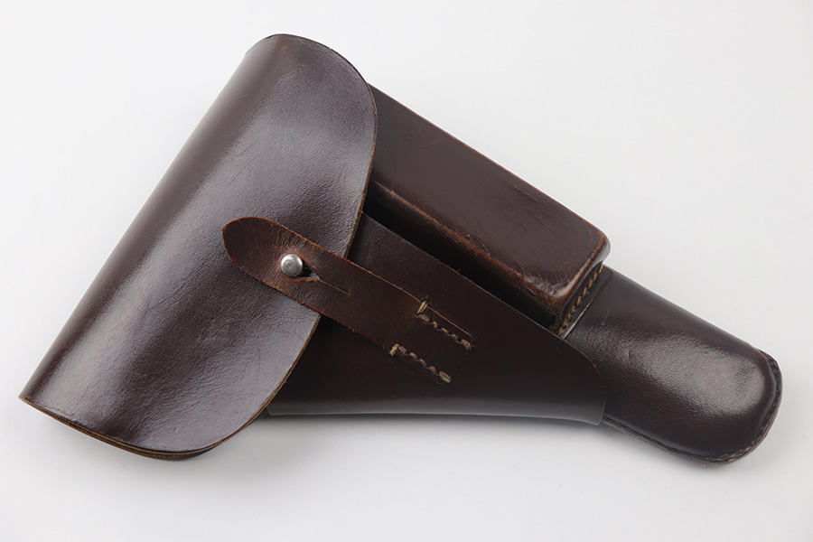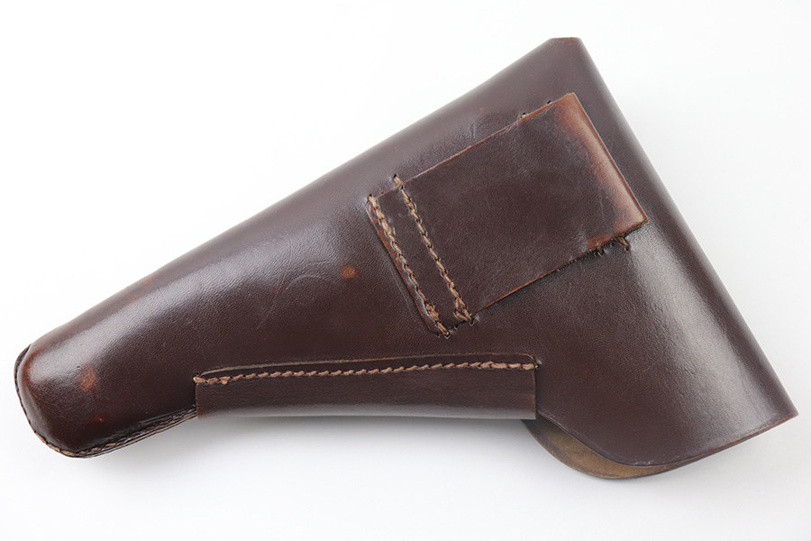 5/20/21 – This is a stone-mint example of a Nazi Hi Power holster, the best we’ve ever seen! The holster is makers marked, dated 1944, and has a waffen proof on the inside of the top flap. It is in like-new, un-issued condition, just two very light scuffs on the back. Just an amazing example. Impossible to upgrade!