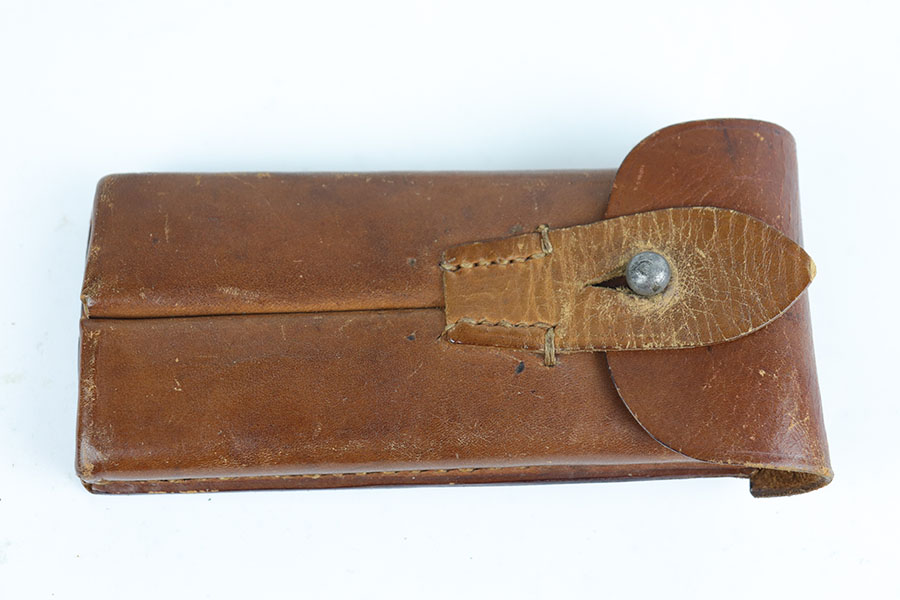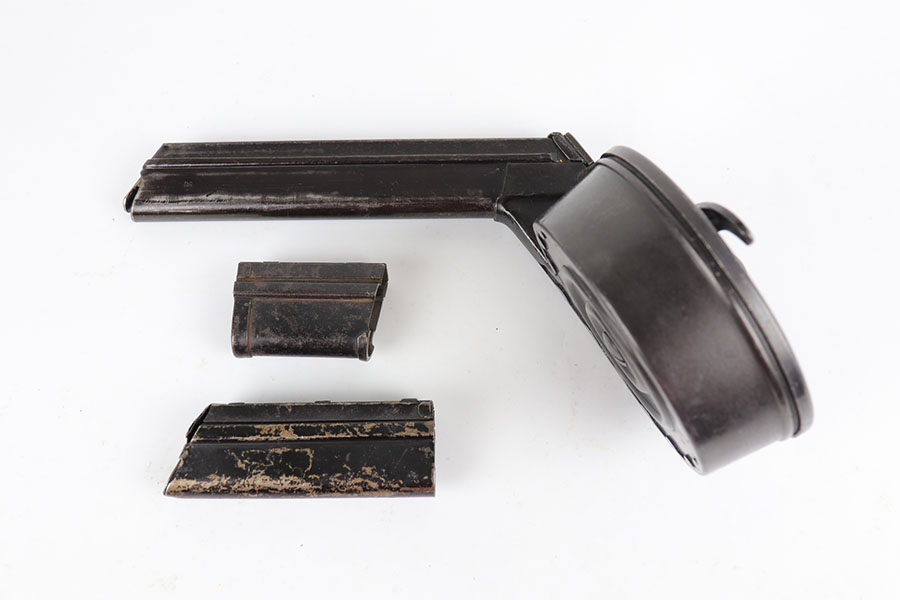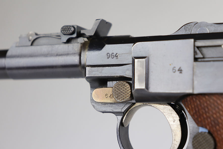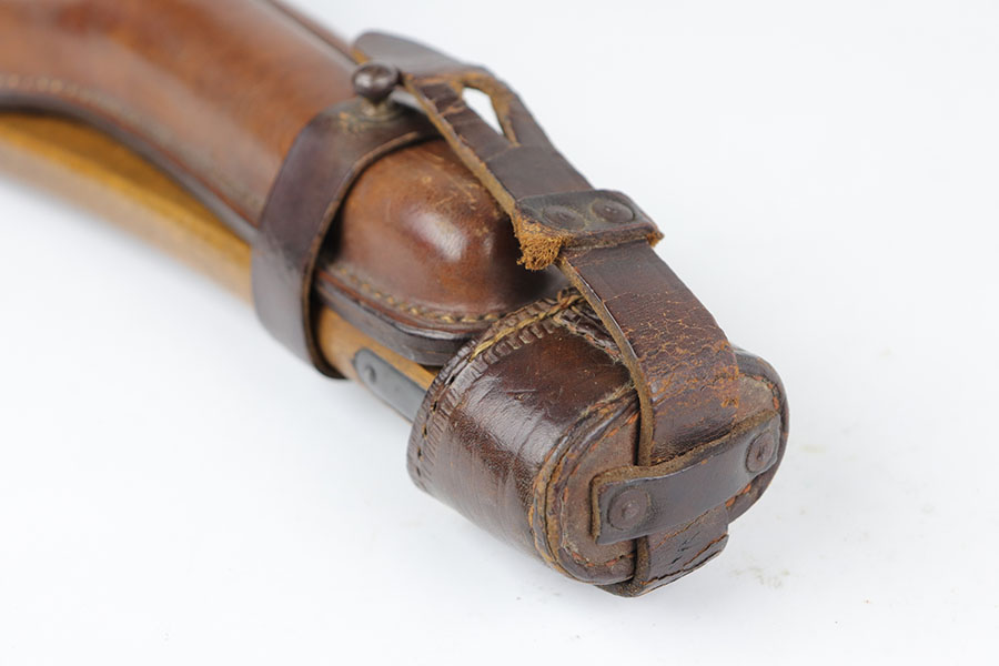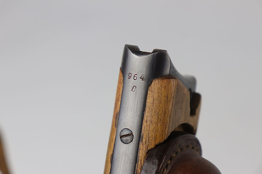 3/17/22 – This is likely the most incredible and complete Artillery Luger rig we’ve ever encountered, just an unbelievable find. The Luger is all original and in beautiful condition with the blue rating at about 97%. There’s minor high edge wear in a couple of areas but no major defects or areas of wear. The pistol has the original matching grips, and the grouping includes two of the original matching magazines, the original matching stock, holster, snail drum magazine, mag pouch, cleaning rod, snail drum loader and holster strap. The stock and holster combo are in fantastic condition. The holster is as nice as they come, and 1918 dated to go along with the gun. The rare snail drum magazine shows some age and wear but is in very good condition, and comes along with the original dust cover and loader. The magazine pouch condition matches that of the holster, and so does the cleaning rod. The strap shows some cracking and wear but is original and intact.