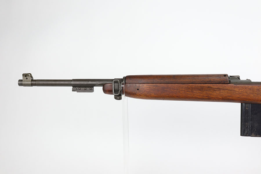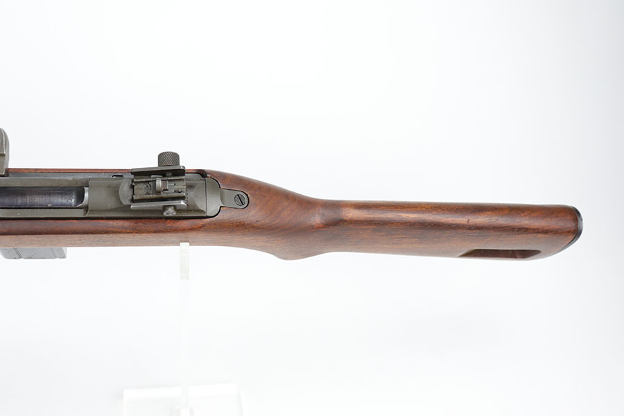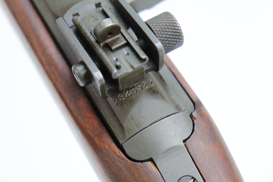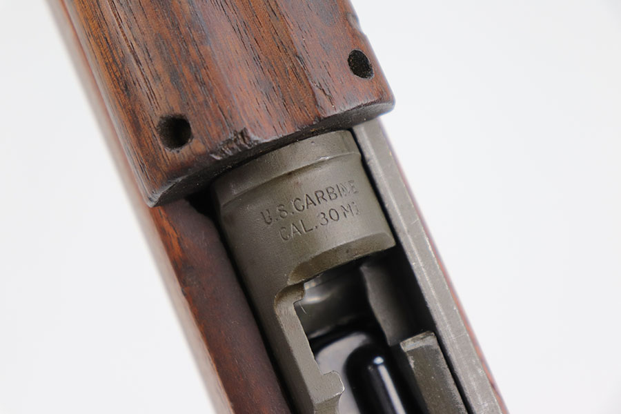 9/2/20 – This is an excellent Underwood M1 Carbine that was partially reworked for Korea following World War II, as evidenced by the bayonet lug and adjustable rear sight. Serial dates this one to late in 1943, and barrel is Underwood made with manufacture date of December, 1943. Stock is marked PU in the sling cut. Handguard is marked M-U. Hammer and trigger assembly are marked with the Underwood ‘U’. Slide and bolt are also ‘U’ marked. Bore is mint, and stock is in excellent condition with no defects.