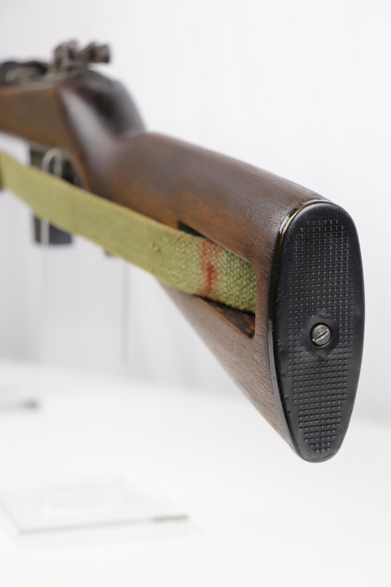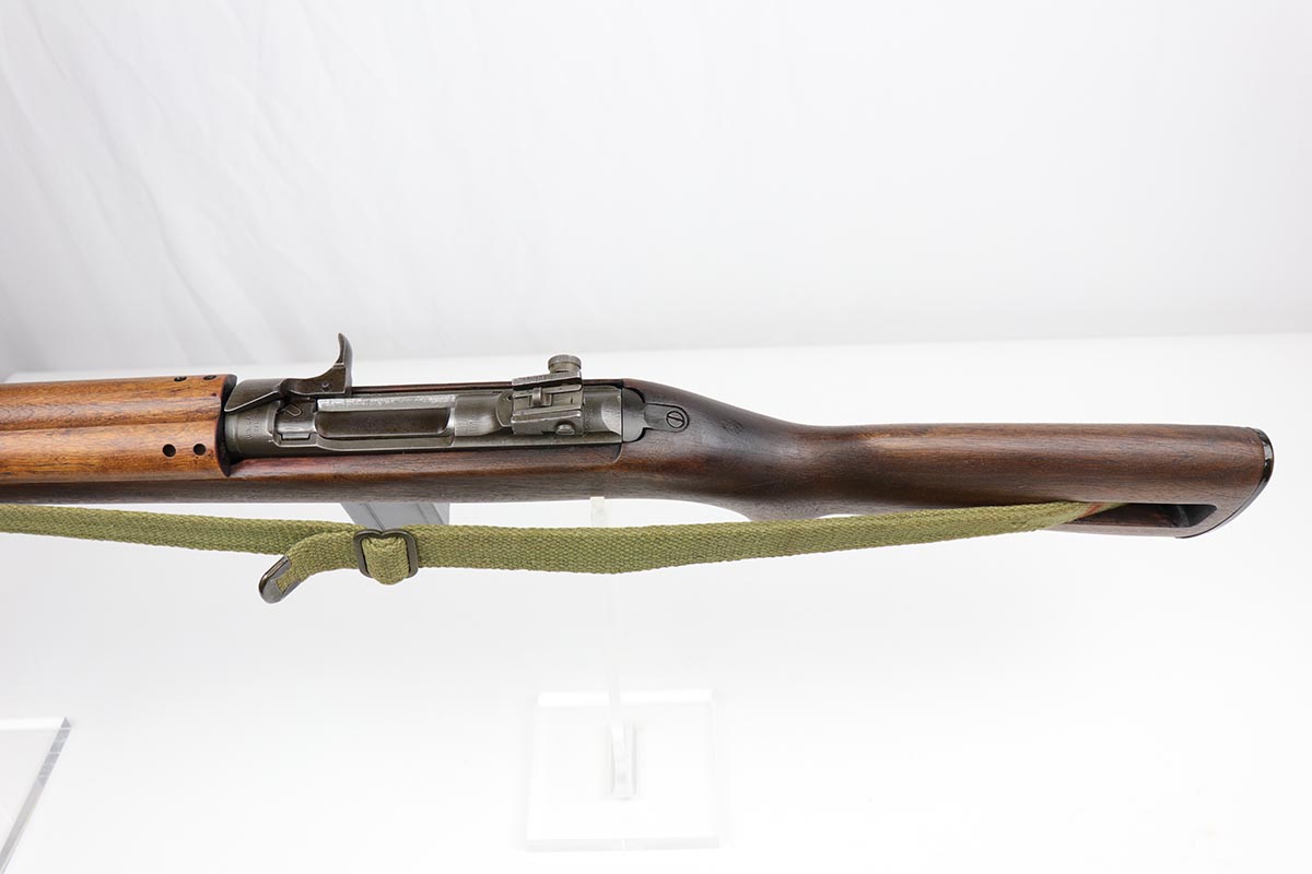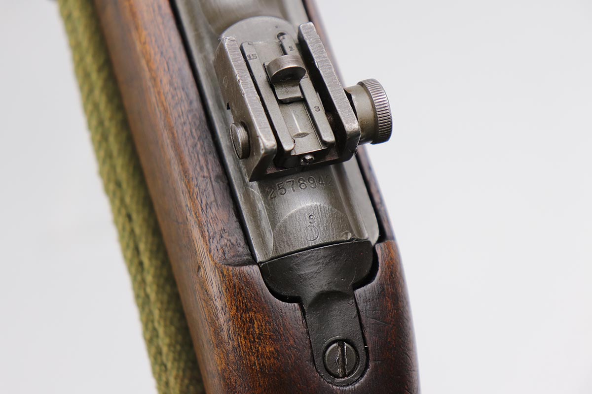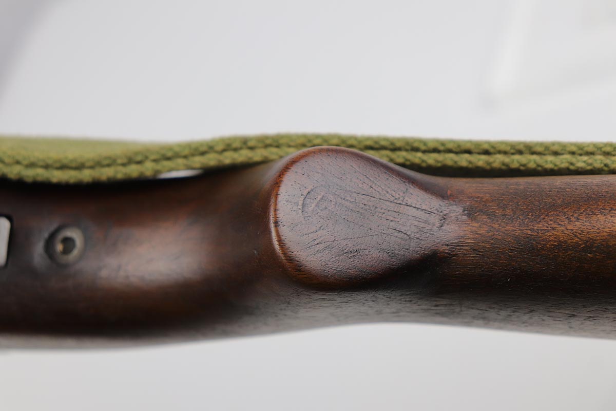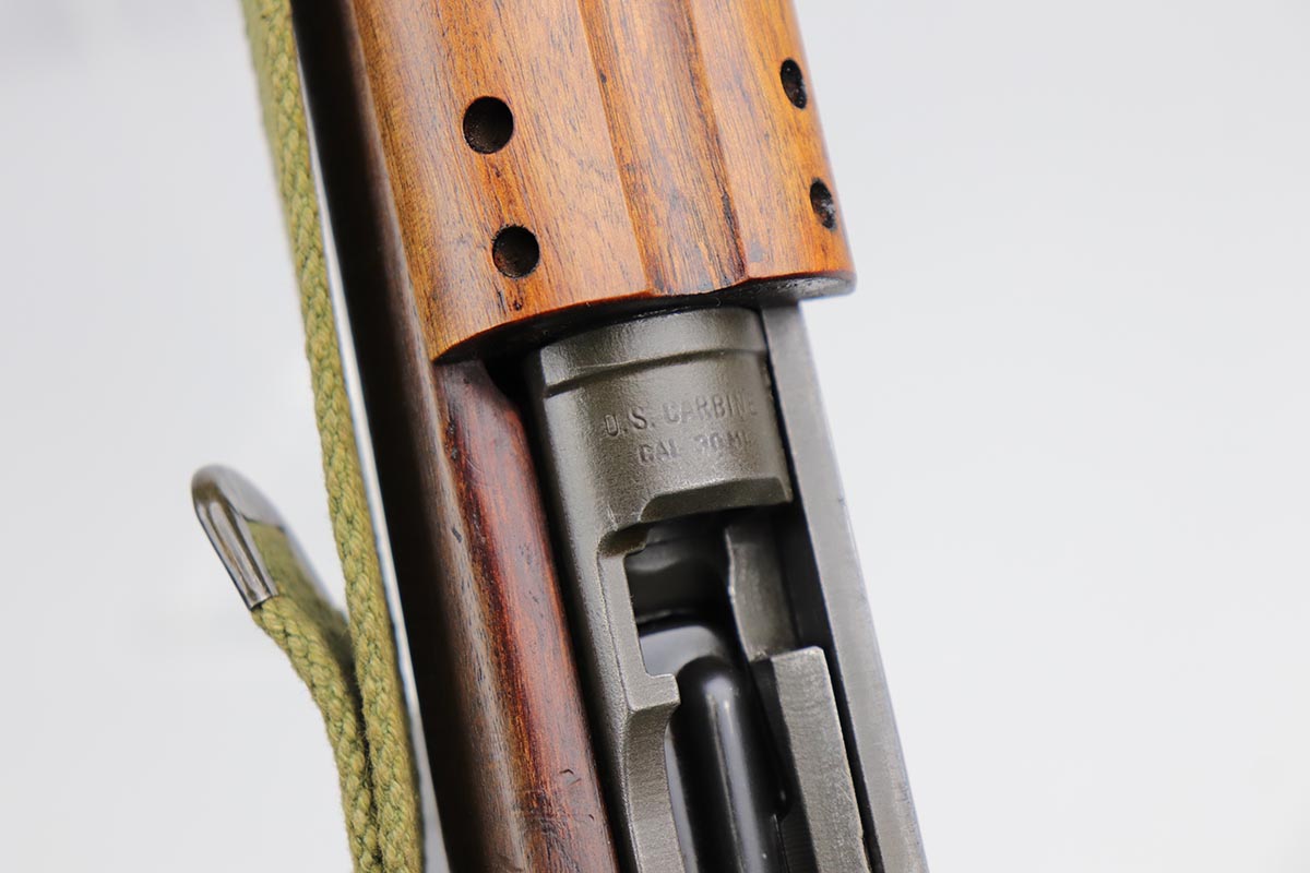10/2/19 – This is a nice example of an Underwood M1 Carbine from 1943 that was re-worked following the war, likely for Korea. The finish is original and rates at about 90% with a uniform but natural thinning on the receiver and bayonet lug. Receiver and barrel are Underwood marked, and barrel is dated to November of 1943. Stock and handguard are unmarked aside from circle P on the wrist. Front barrel band is ‘IS’ marked. Barrel is very shiny with strong rifling, but there is minor pitting in the forward third of the barrel. ‘IU’ marked magazine. Original sling. Import mark under the barrel.