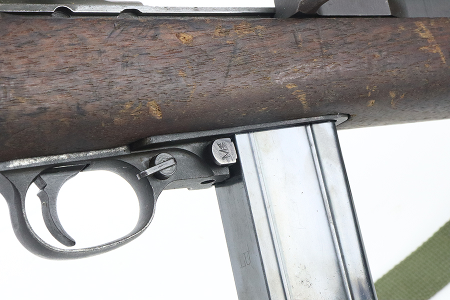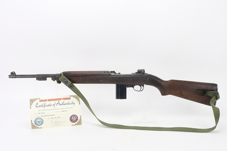 5/17/24 – This is a nice example of an Inland M1 carbine originally issued to the US military in 1943-44. It was later reworked and sold to the public through the CMP Program. This one comes with the original CMP certificate. The barrel is Underwood and dated 1-43. The stock appears to be marked “S-HB” in the sling well. Adjustable rear sight and bayonet lug were added. The finish rates roughly 85% with general high edge wear, light spotty wear throughout, and light brown patina throughout. The wood has no major damage but shows obvious signs of wear throughout. Two small holes on the left side of the stock. Comes with one magazine, sling, and oiler. Excellent bore.
