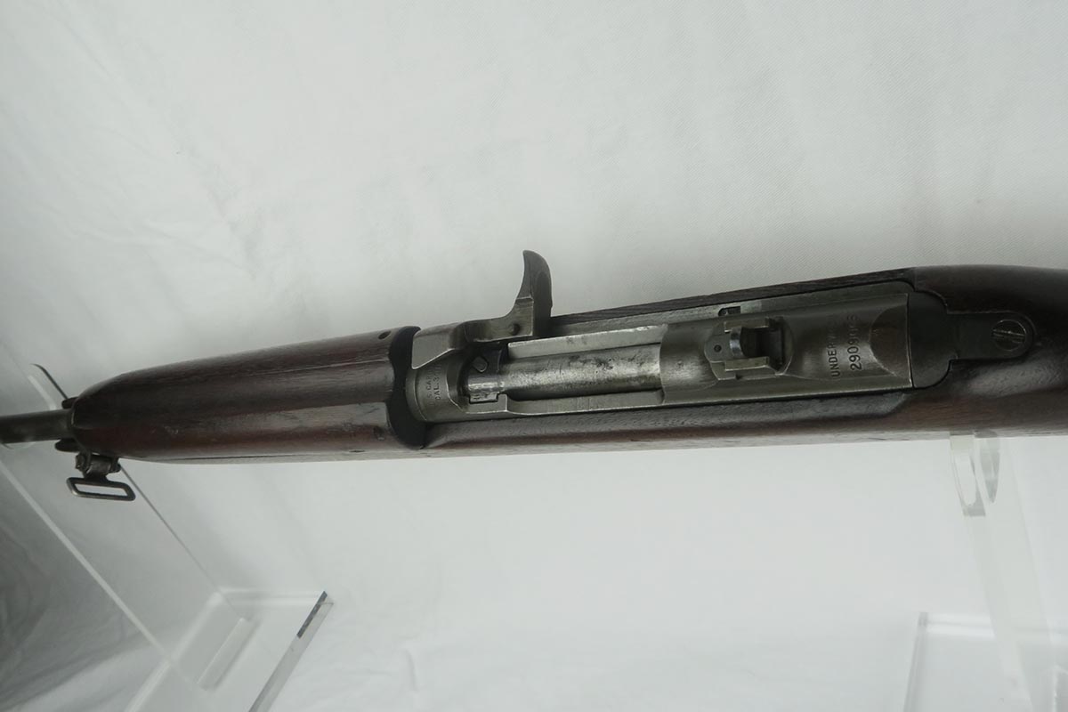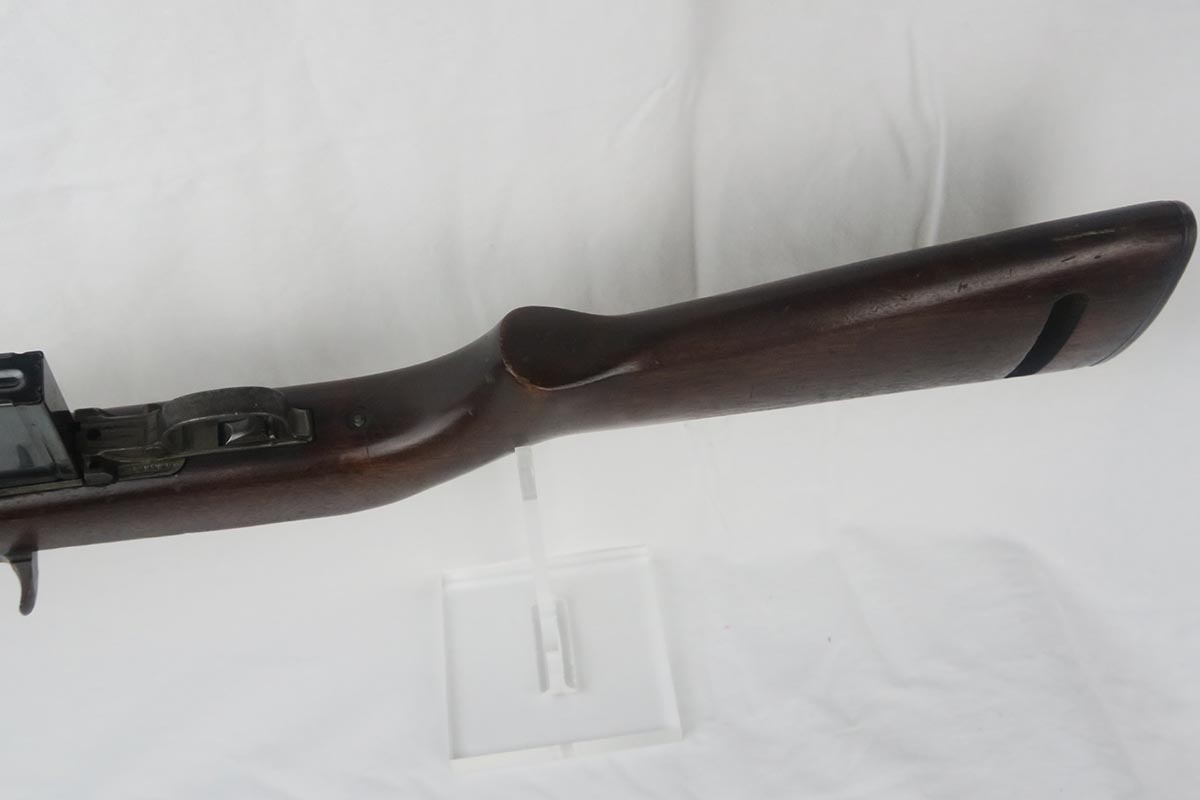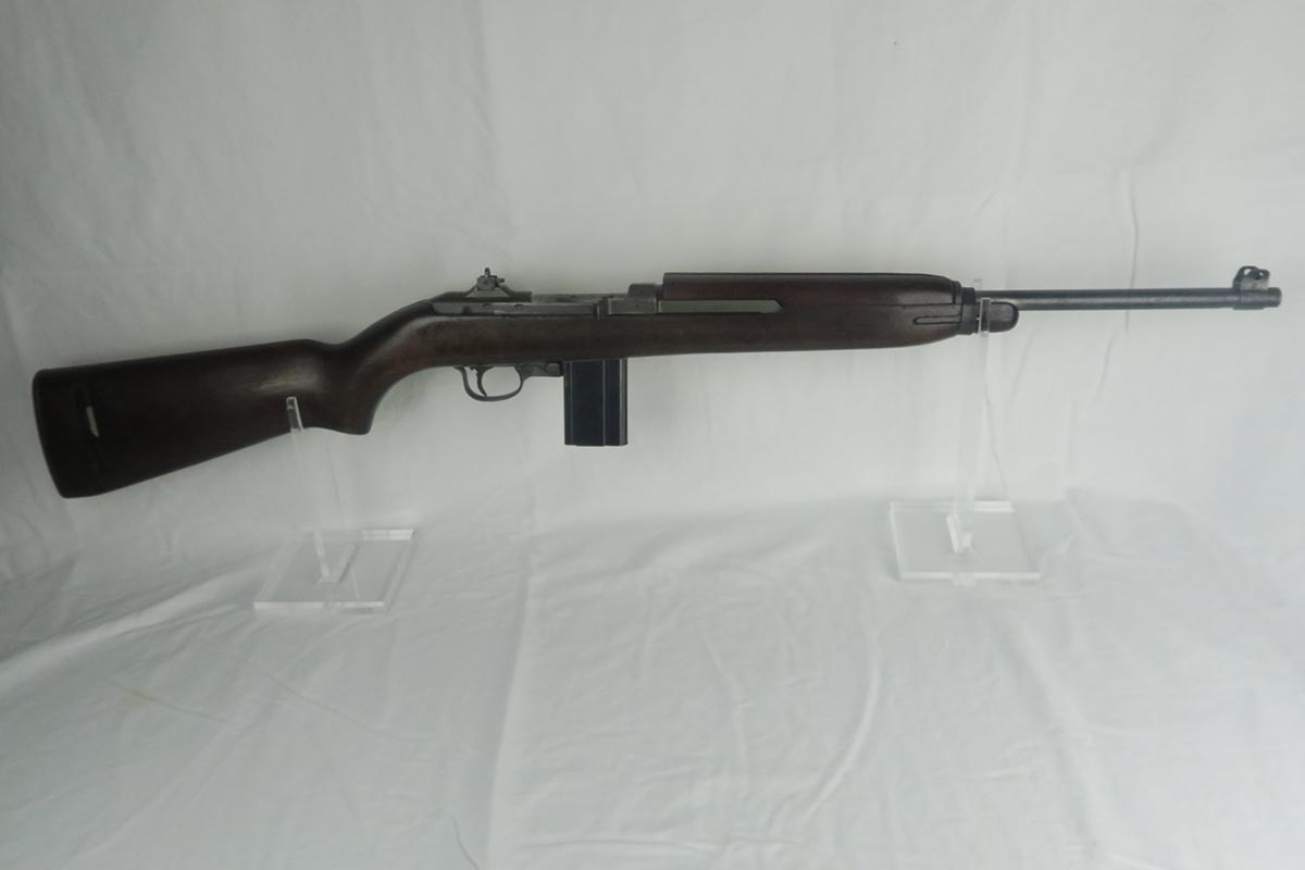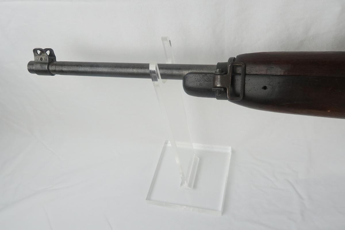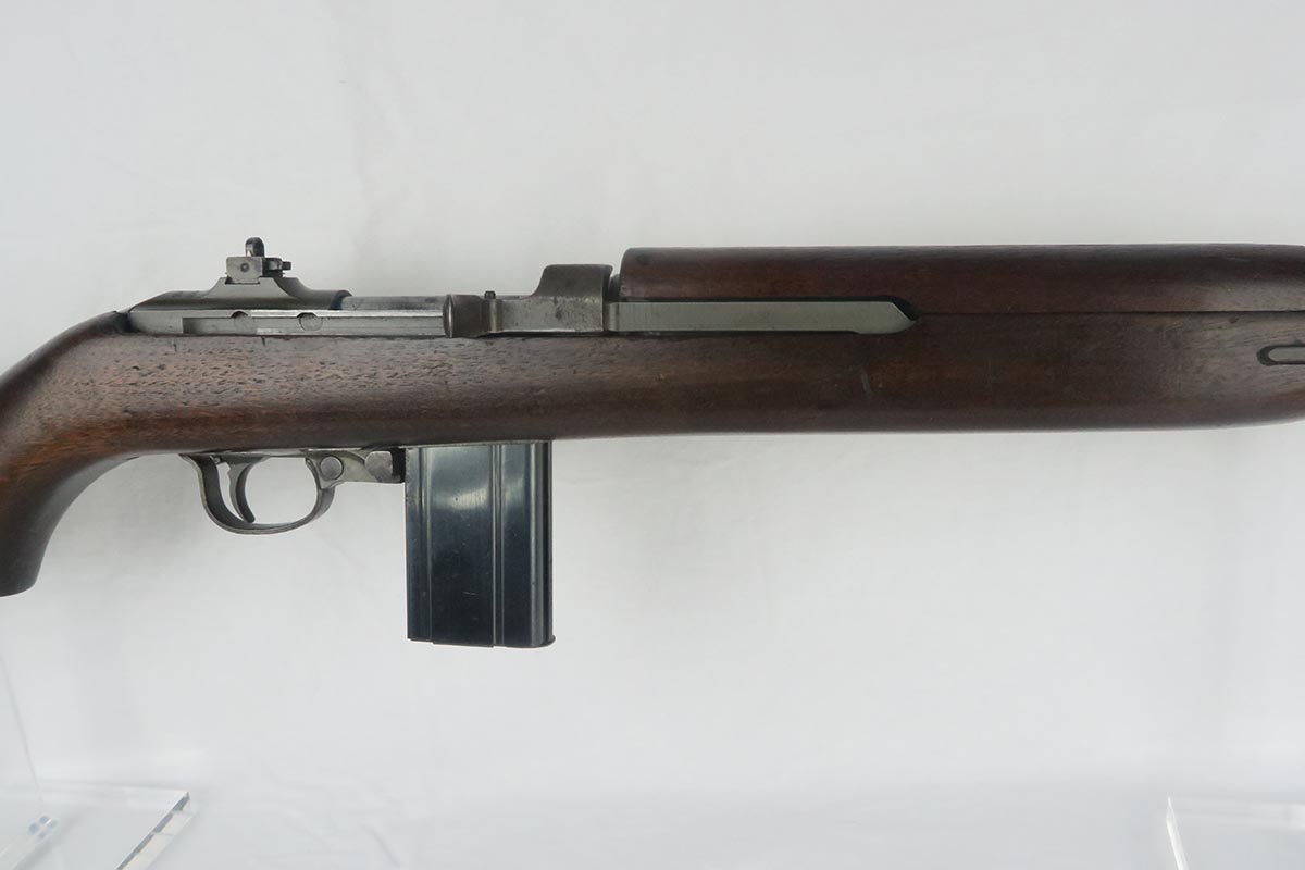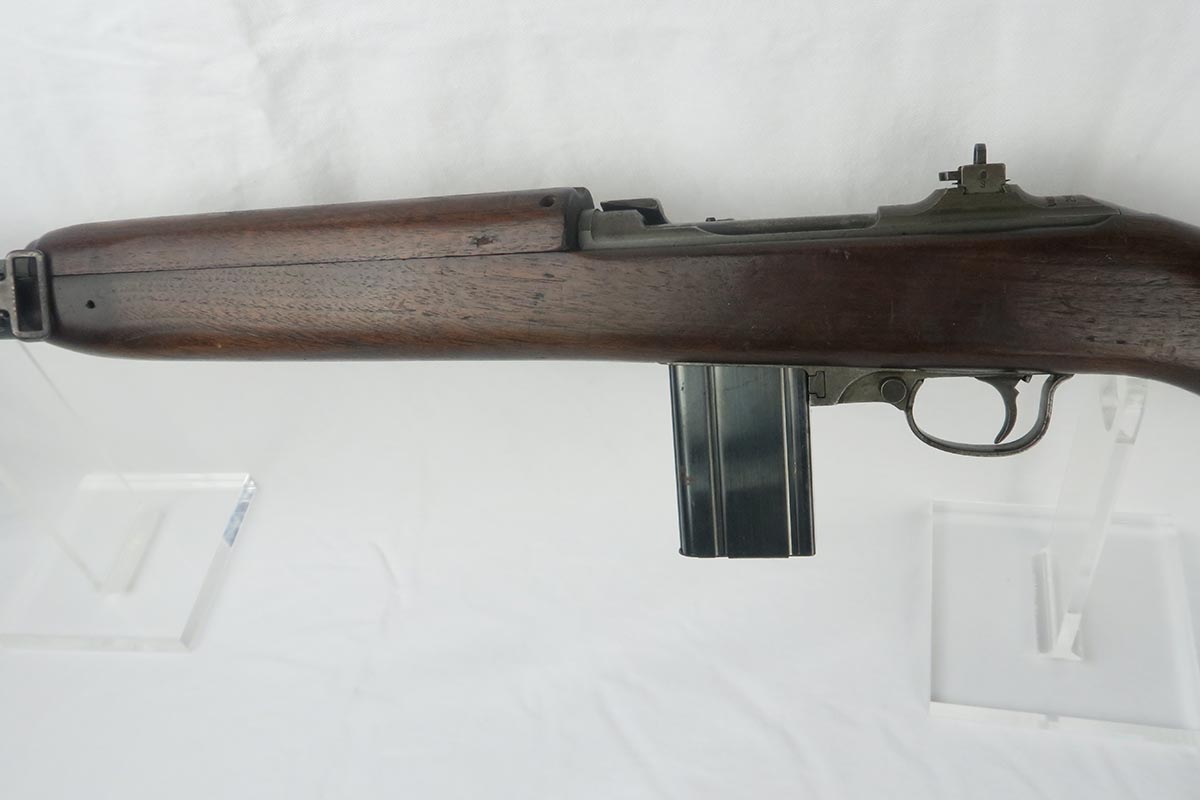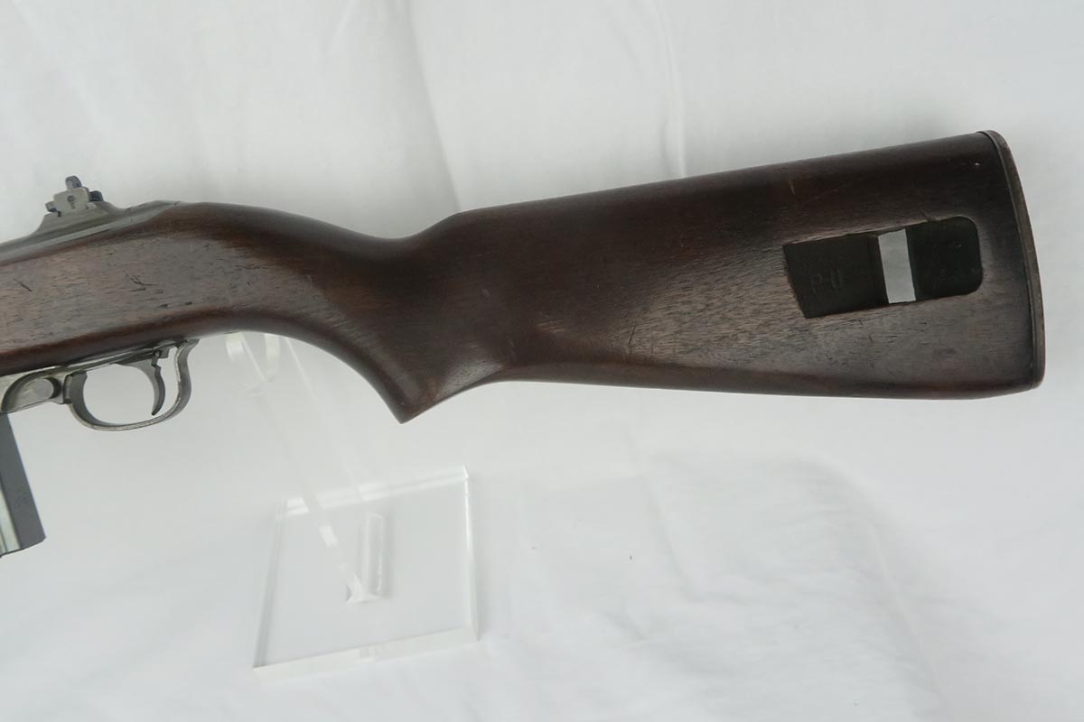 1/8/18 – Underwood Typewriter Corp. made a relatively small number of M1 carbines for World War II.  This one is mid-war and falls in the 2.9 million serial range.  Stock has correct cartouche and inspector proof on right side, and is marked P-U (Underwood) in sling cut.  Low wood, small barrel band.  Correct flip sight is ‘S’ marked.  Excellent bore.  Wartime magazine is marked S-0.  Wood is in pretty good condition but does show some nicks and dings, which is to be expected on used M1 Carbines.  The receiver has a nice parkerized finish but the barrel shows some thinning and patina.