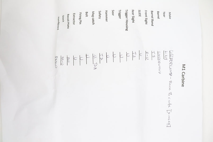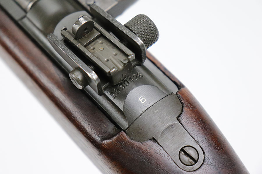 8/14/20 – This is a nice Underwood M1 Carbine with rare and desirable ‘B’ code receiver, indicating manufacture by Singer. From serial numbers 2,630,000-2,655,000 the B code is reported and this one falls in that range. A full parts guide is included in the photos of the listing. The finish on the rifle is excellent with minimal rub wear. Excellent bore. Stock is in terrific condition and without defect. It has faint cartouche on the right side, and a ‘U’ marking on left which may be an arsenal stamp. Excellent bore and good mechanics.