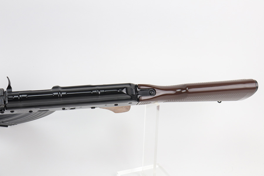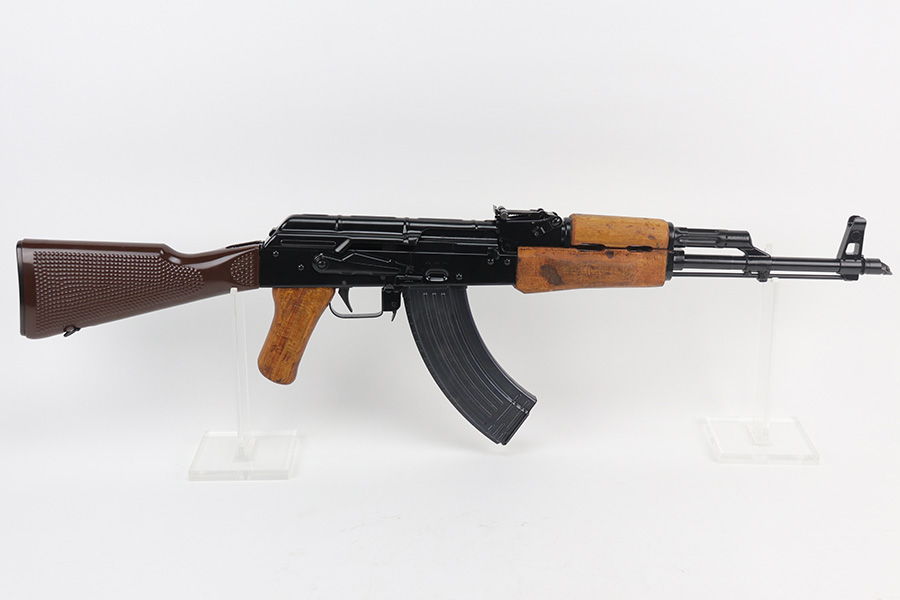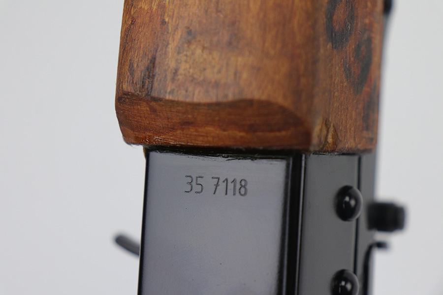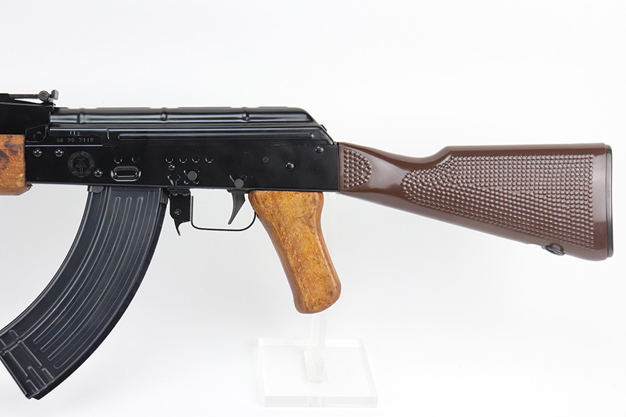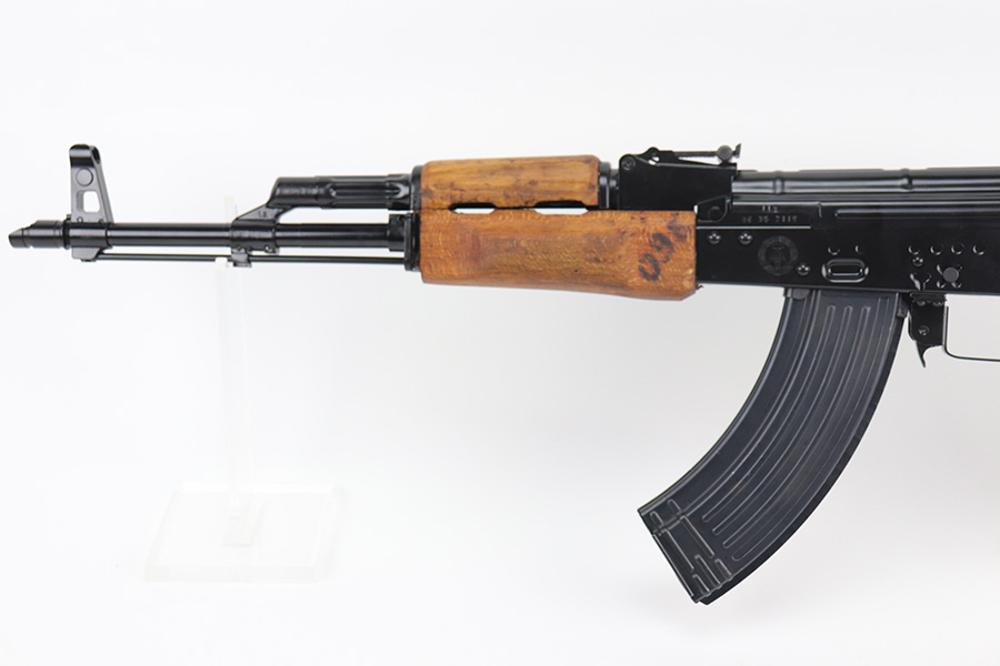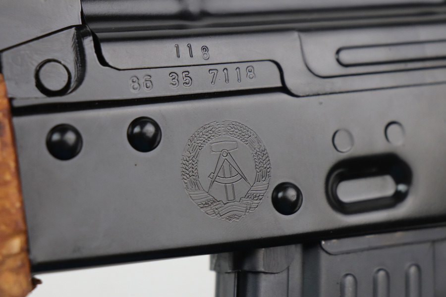 11/8/21 – This is a mint semi-auto AK built from an East German parts kit. It’s in mint condition with rare wood furniture and a pebble grain buttstock. Front trunnion and dust cover are matching, from a rare unsanitized kit (meaning the serial numbers were not scratched off). It has a Childers receiver which is force matched, built by the renowned Troy Sellers. Our consignor bought the build new and has never fired it. ALG trigger and an East German magazine. Mint bore.