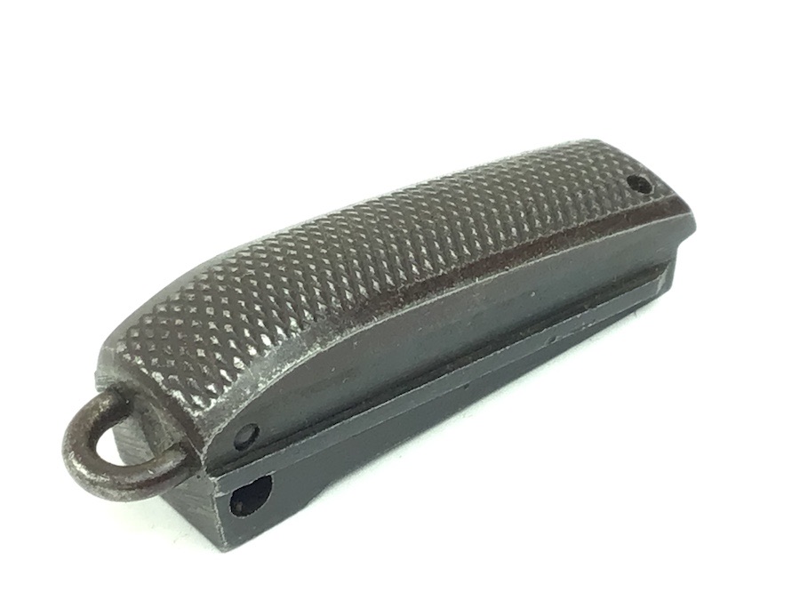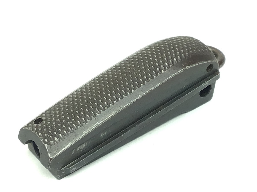 8/10/22 – Original, USGI Arched & Checkered Mainspring Housing with Lanyard Loop. Original finish rates 80 – 90%. Made for the M1911A1 Pistol. Housing only. No spring, plunger or retaining pin. Excellent, useable condition.