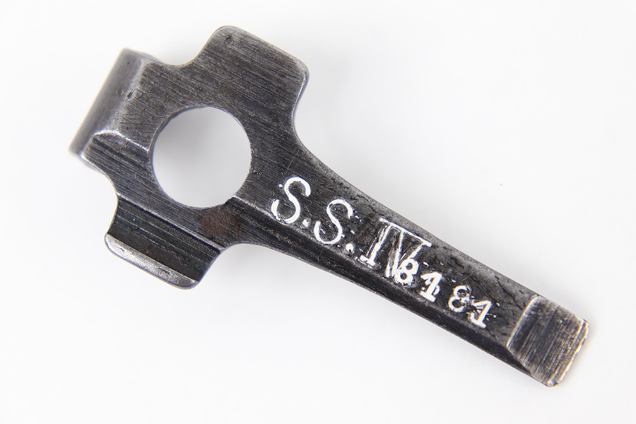 5/22/23 – This is an original WW1 era production Luger tool. The tool has a DWM shape with a unit number stamp on the back side as shown. This is either a police or military unit number. A common WW1 style marking. There’s mild surface wear throughout but no major issues.