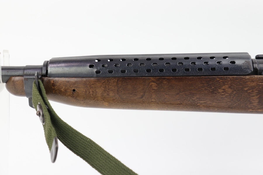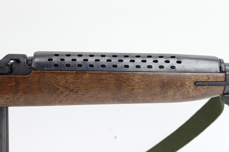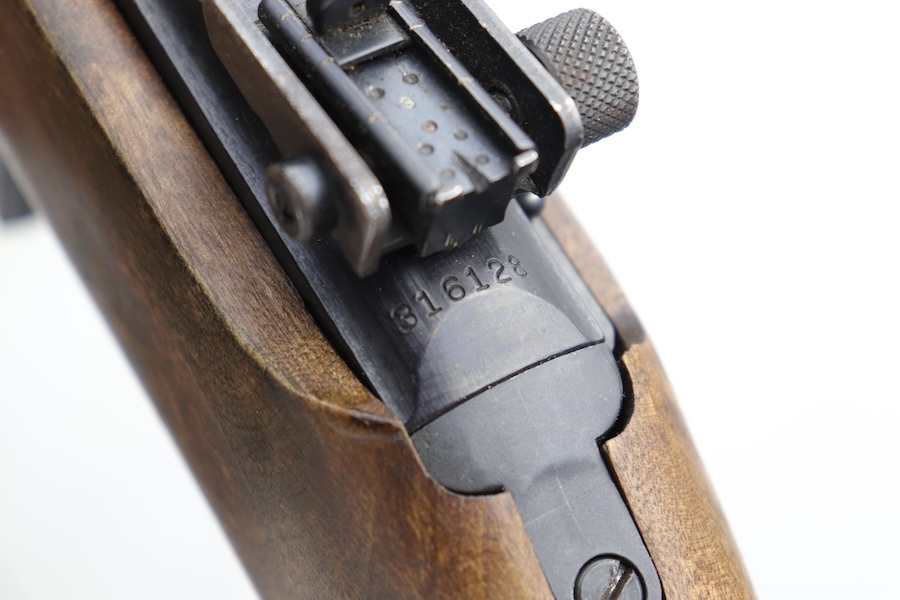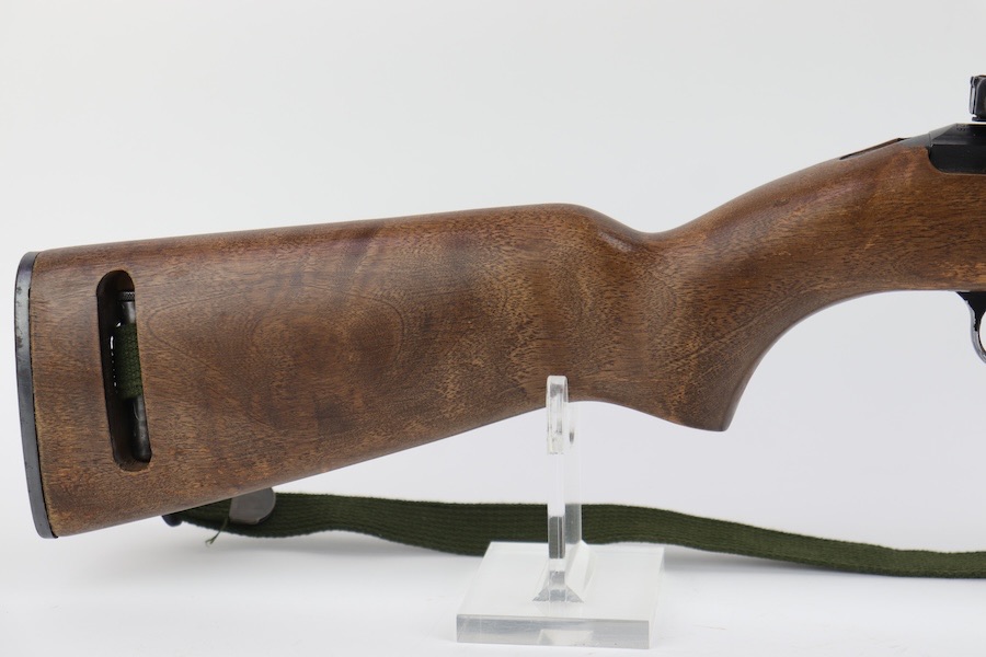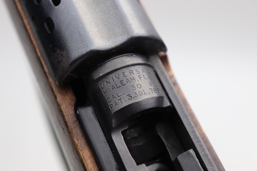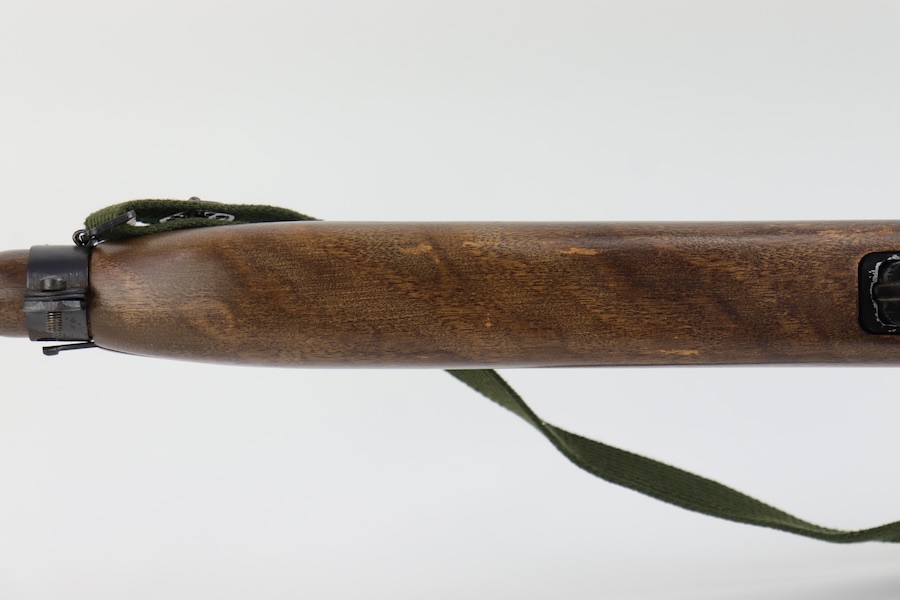 7/9/24 – This is a post-WWII Universal M1 Carbine. This rifle retains about 85% of its original finish, with the most significant areas of finish wear located on the top of the bolt and the bottom part of the receiver. The bore is generally clean with decent rifling and rates a solid 7.5/10 10. Action is smooth and fully functional. The wood stock has minor handling marks here and there, along with a very minor surface crack that we had professionally repaired. The rifle includes a Sling, an oil bottle, and one WW2 USGI magazine. Overall an excellent shooter-grade gun!