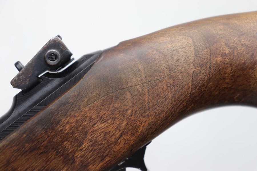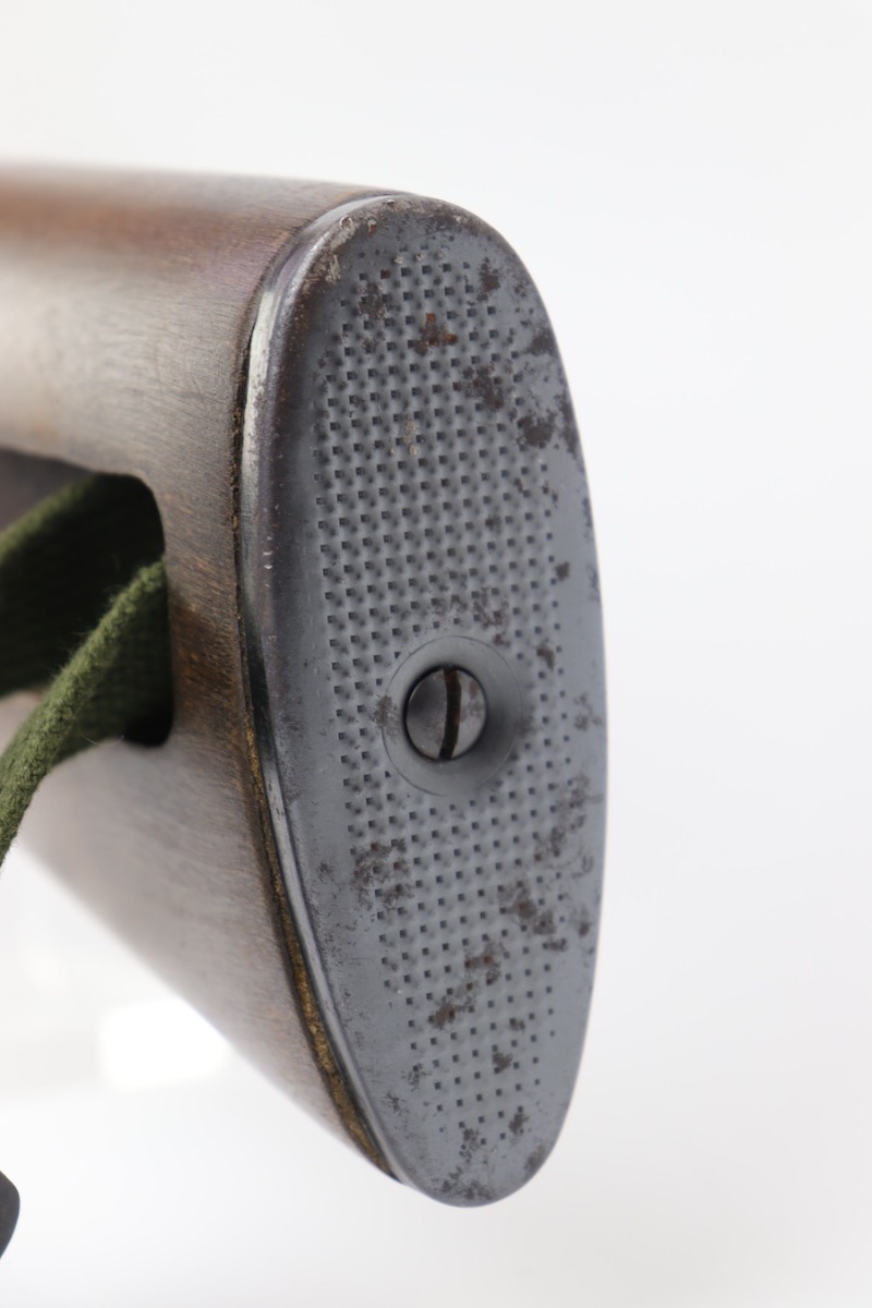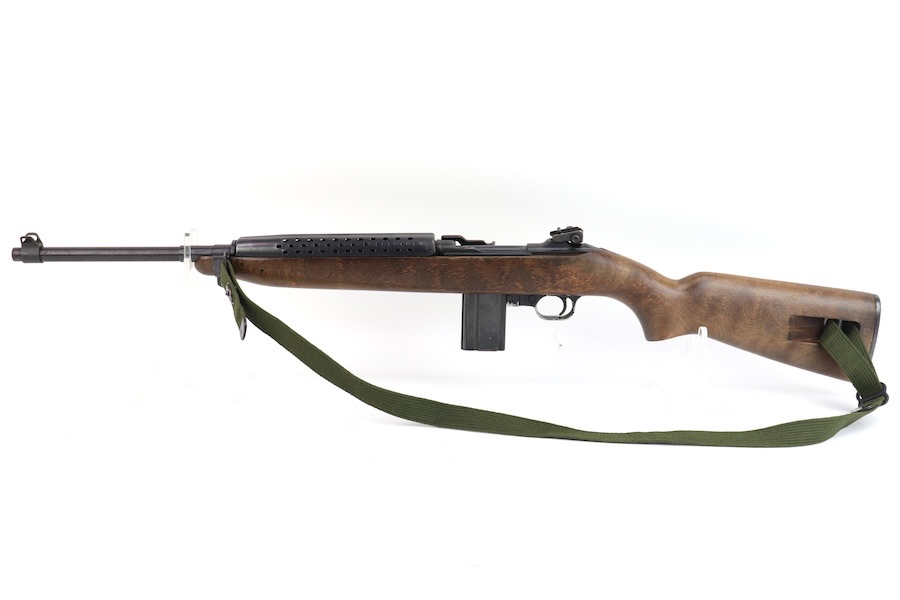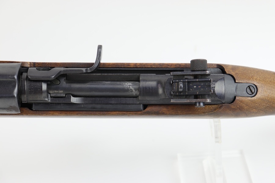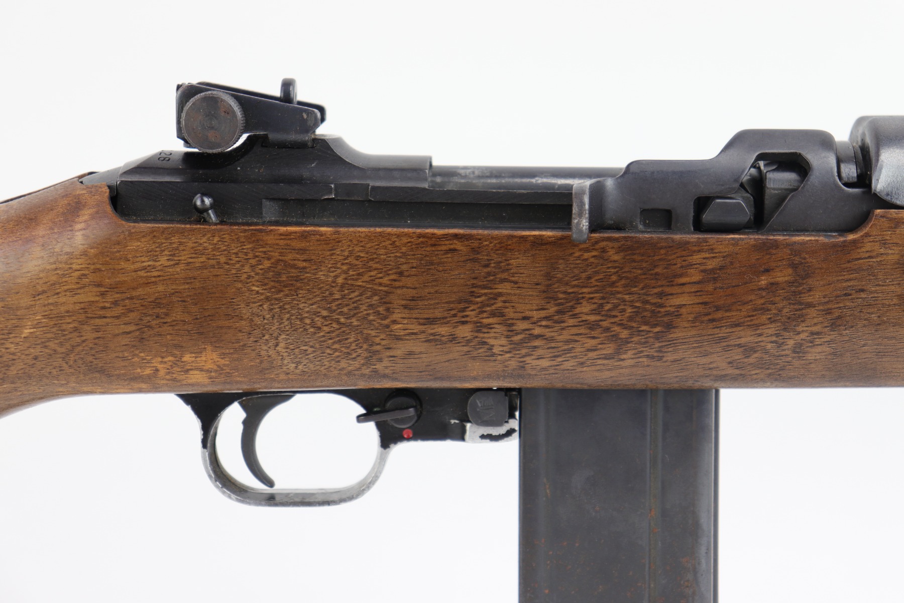 7/9/24 – This is a post-WWII Universal M1 Carbine. This rifle retains about 85% of its original finish, with the most significant areas of finish wear located on the top of the bolt and the bottom part of the receiver. The bore is generally clean with decent rifling and rates a solid 7.5/10 10. Action is smooth and fully functional. The wood stock has minor handling marks here and there, along with a very minor surface crack that we had professionally repaired. The rifle includes a Sling, an oil bottle, and one WW2 USGI magazine. Overall an excellent shooter-grade gun!