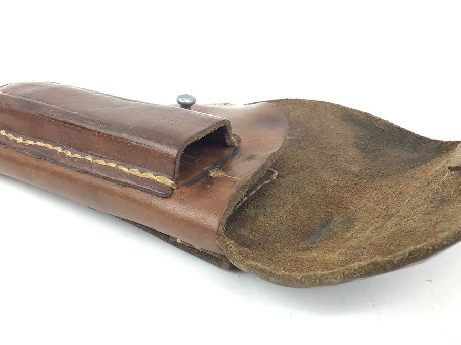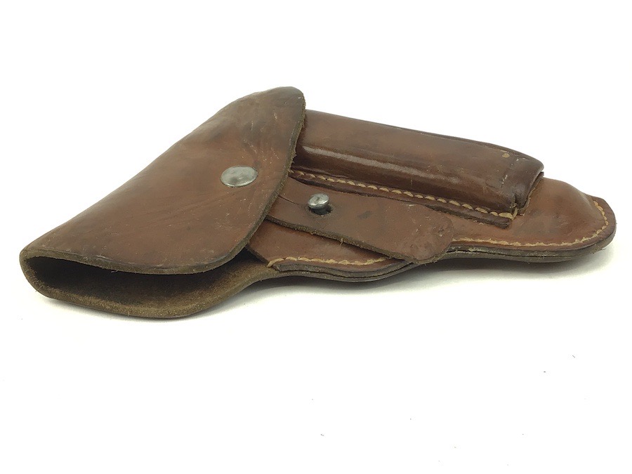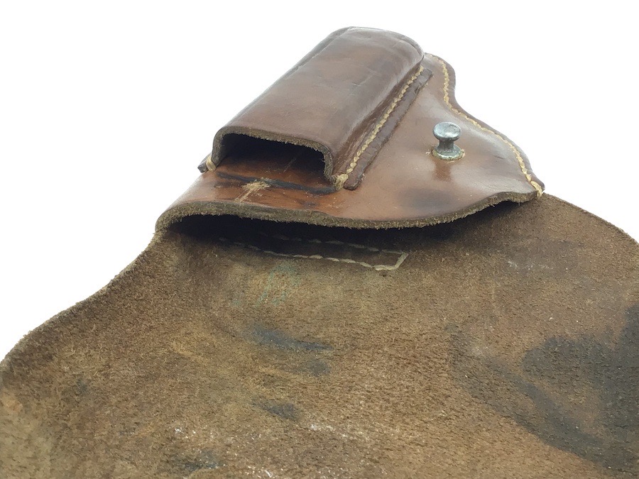 11/4/22 – This is an original WW2 era holster for a CZ-27. The holster has no markings or stamps, but is similar style to other CZ-27 holsters we’ve offered. The holster has nice leather with typical signs of aging and use, but no major issues. Original stitching is secure and intact.
