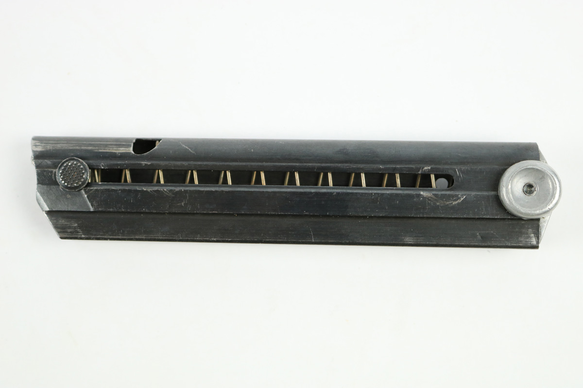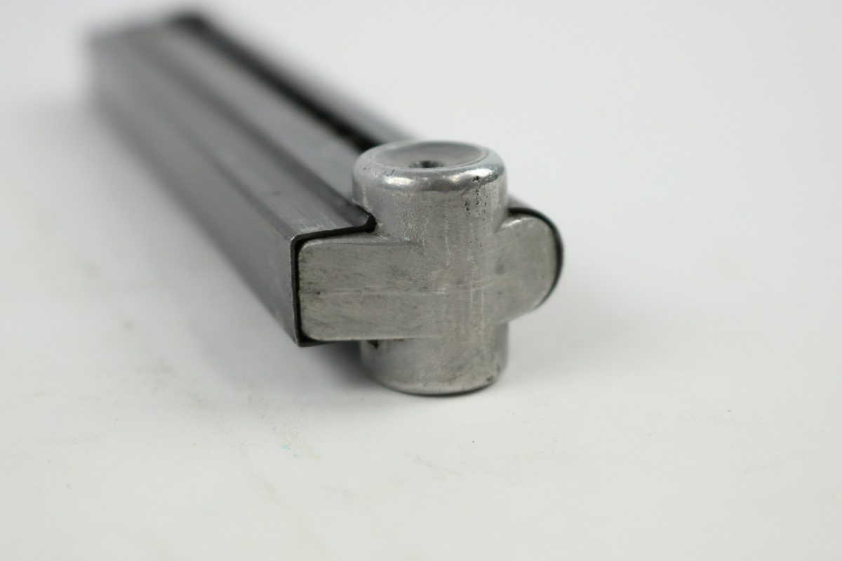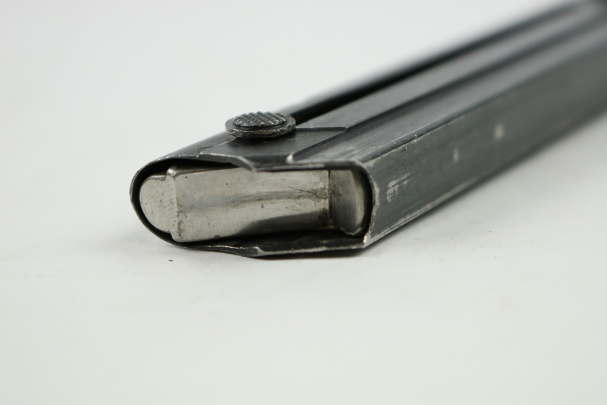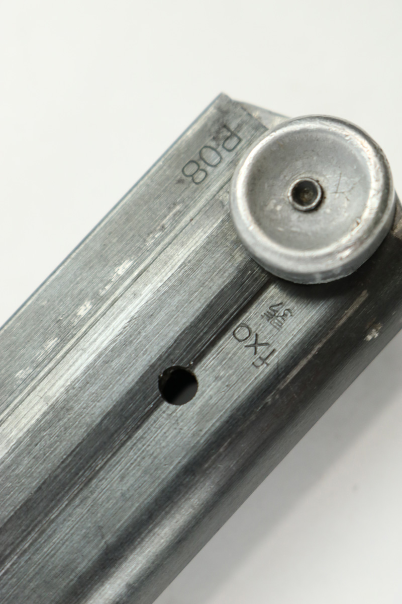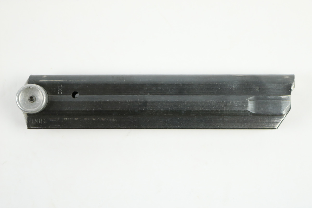 9/26/18 – This is an excellent, rare and desirable unmarked FXO Luger magazine from WW2. The magazine has an aluminum base with NO markings! This means it can technically match (at least not mismatching) to any Luger. Most appropriate for 41-42 Lugers as this is when we find the “fxo” stamp on magazines most often. The magazine has very minimal wear and a strong functional spring. Guaranteed original.