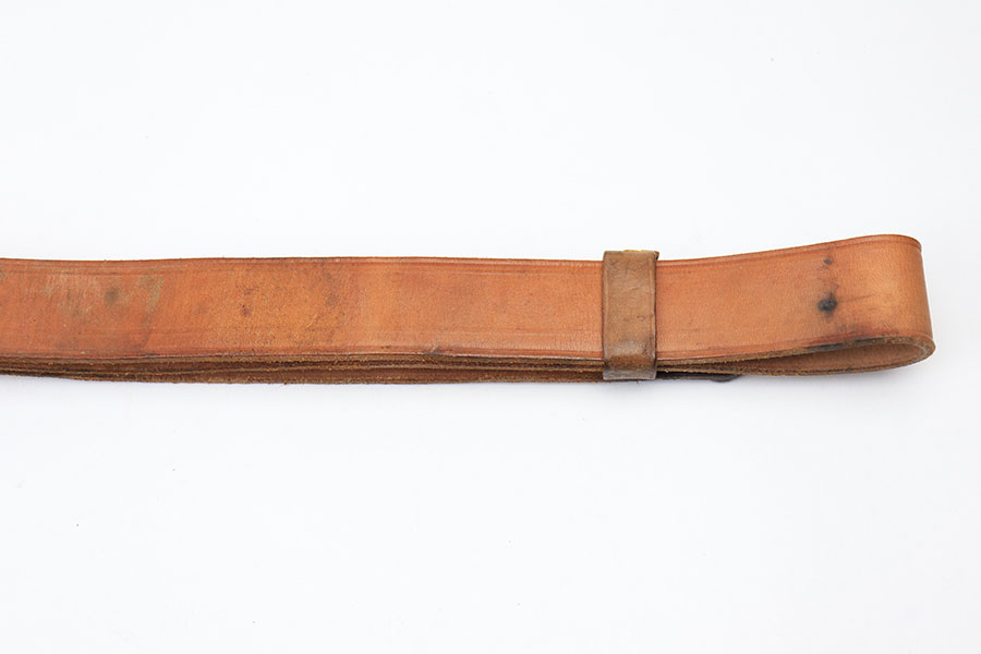 3/11/21 – This is an unmarked leather sling for a M1 Garand or model 1903 rifle. Appears to be WW2 style but there are no markings to confirm when this was produced. Priced accordingly. The leather and stitching is in great overall condition with some mild signs of use and aging.