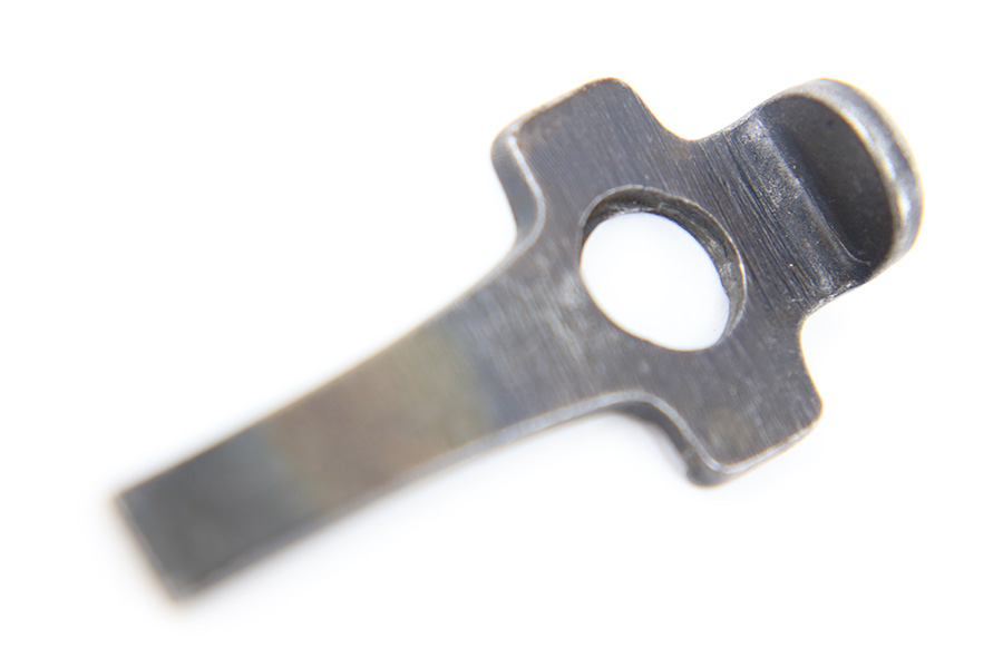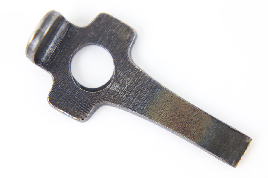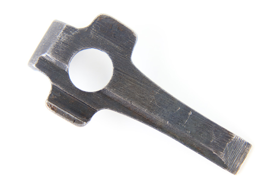 8/15/23 – This is an unmarked Luger tool. Likely WW1 era production based on the shape and style. Most of the blued finish is intact although there is some mild finish loss and surface discoloration throughout. No rust or pitting. Measures 52mm long and 24mm wide (at the widest point).