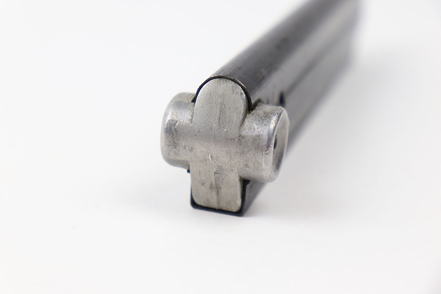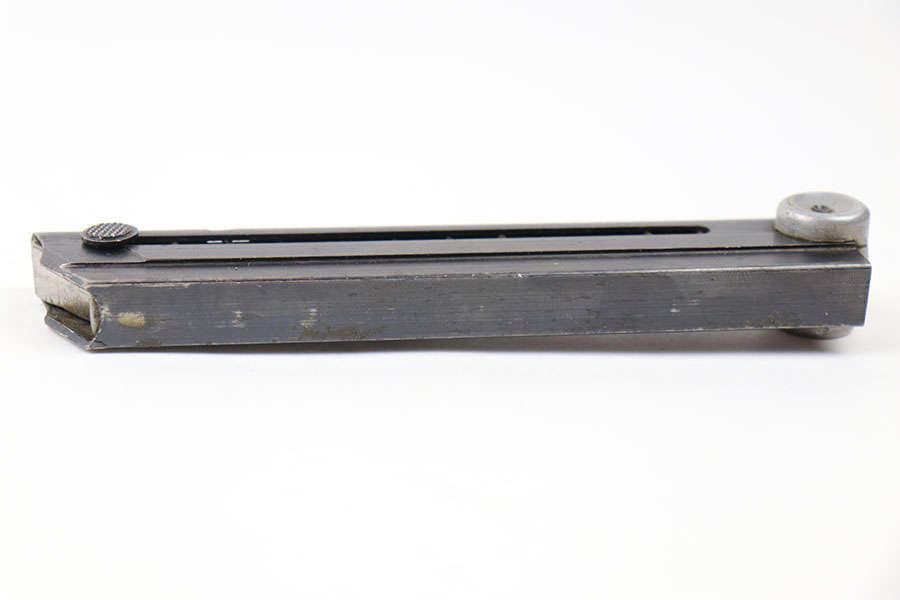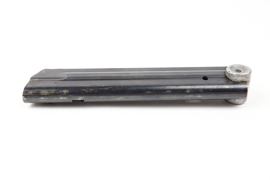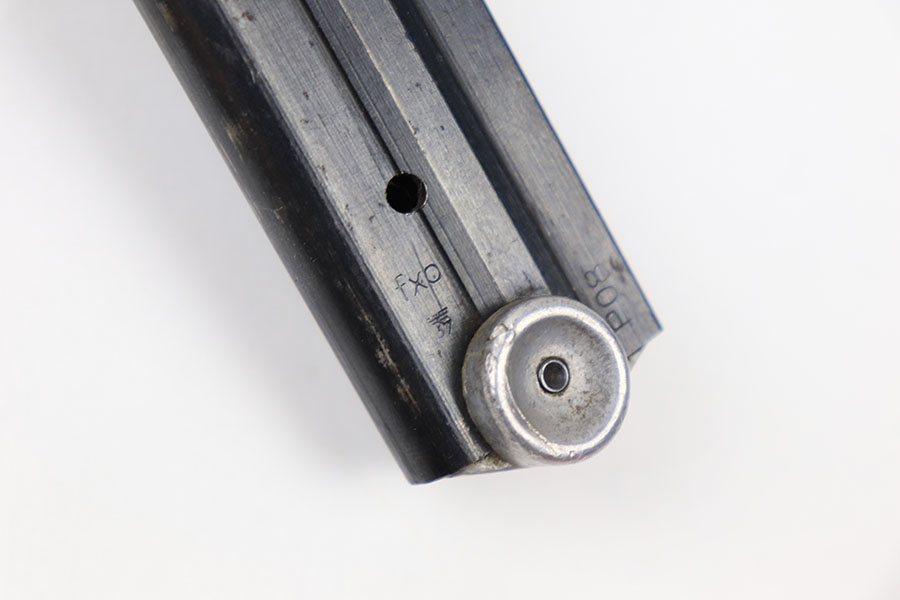 7/9/21 – This is an original Haenel “fxo” luger magazine from WW2. The base is not numbered or proof stamped, which is a desirable variation and often considered a “field replacement” magazine. Excellent blued tube that is eagle 37 proof stamped and fxo stamped. Strong, fully functional spring.