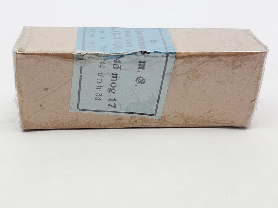 6/26/20 – This is an original box of 9mm Luger pistol ammunition. Covered in a clear plastic wrap for preservation. 16 rounds total. Assuming they’re in excellent condition. See photos.