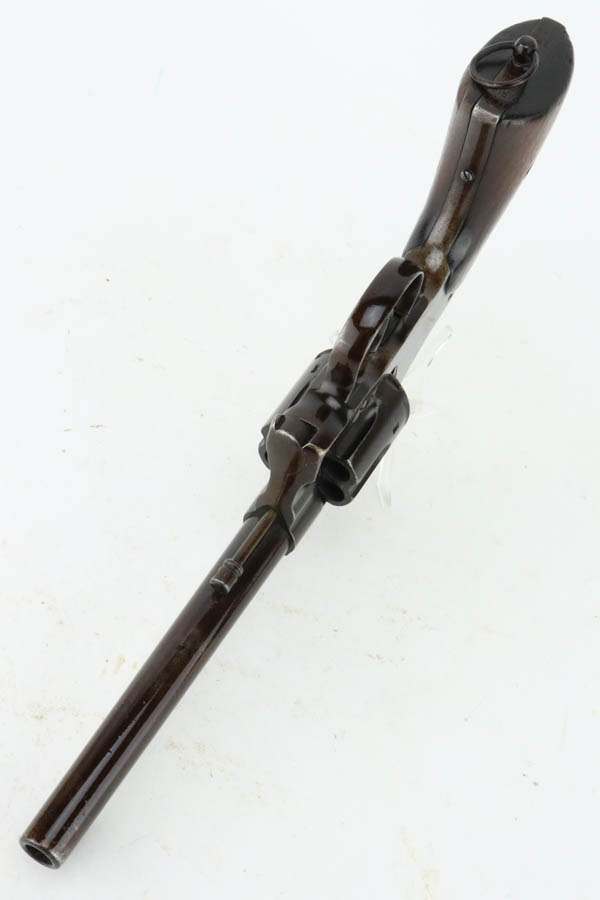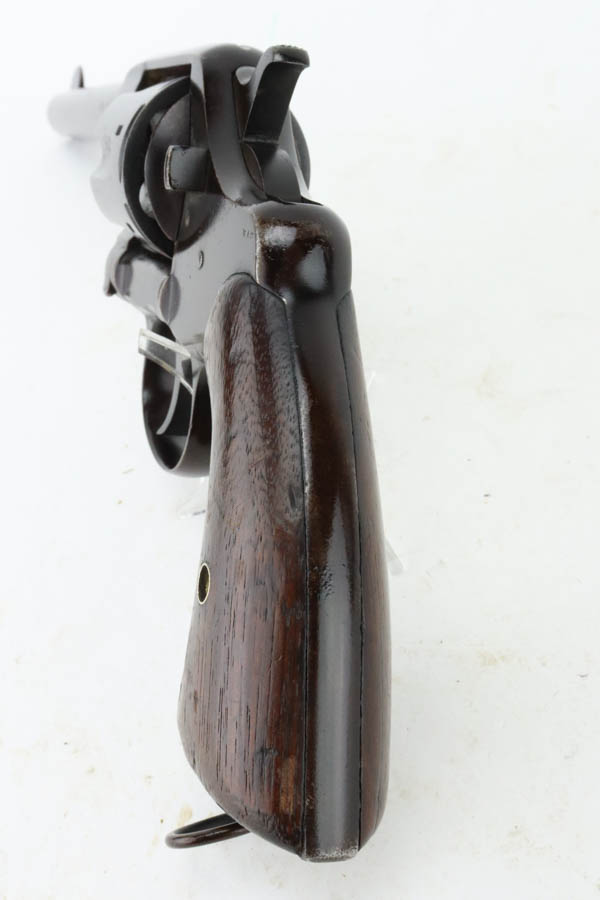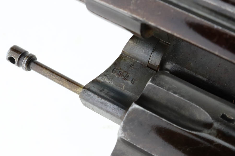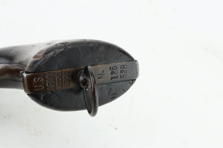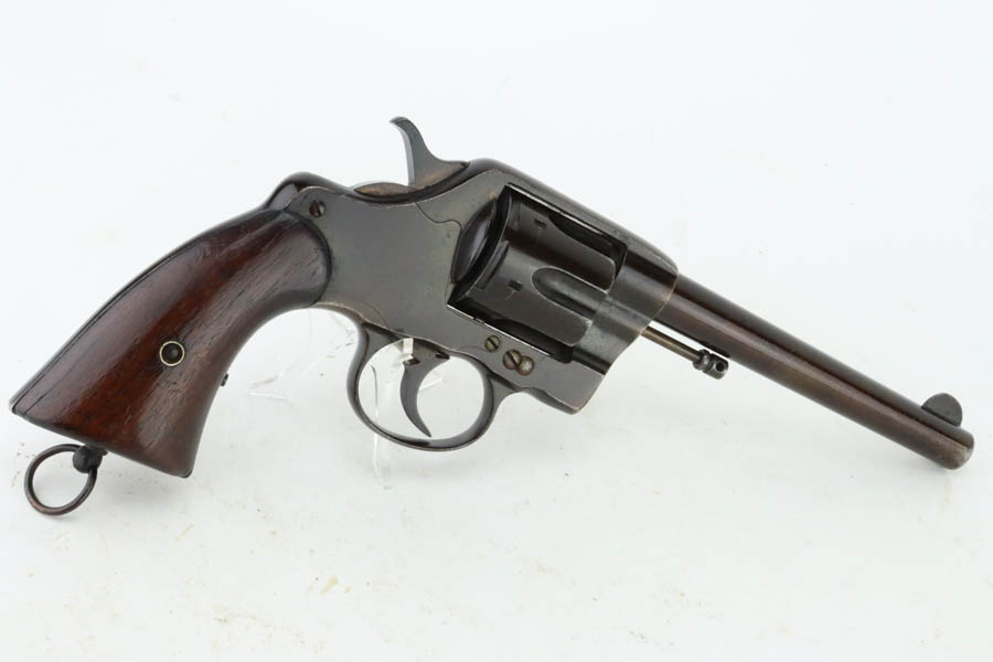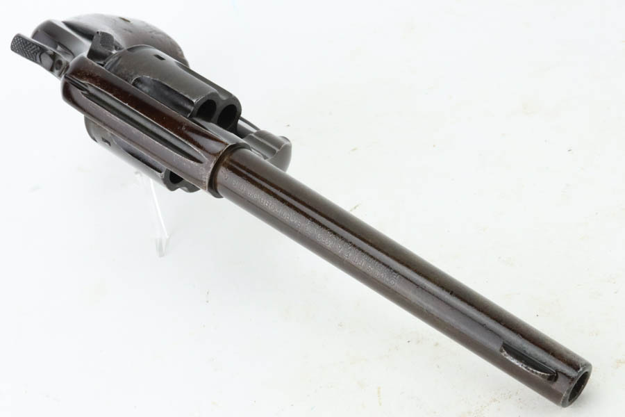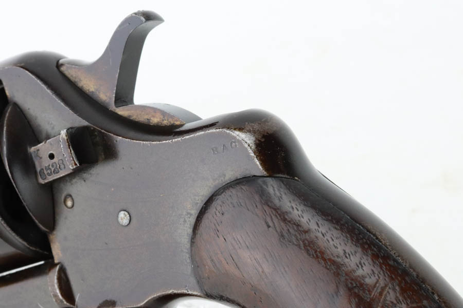 7/10/24 – This is a US Army Colt Model 1901, manufactured in 1899 and chambered in .38 Caliber. It is all matching. While there isn’t a ton of actual finish loss, there is obvious brown patina and oxidation throughout. The grips are hand-numbered to match. There is light surface rust on the frame under the grip panels. The bore has good rifling, but there are a couple of small spots of light surface oxidation. The lanyard ring on the butt of the frame has been replaced.