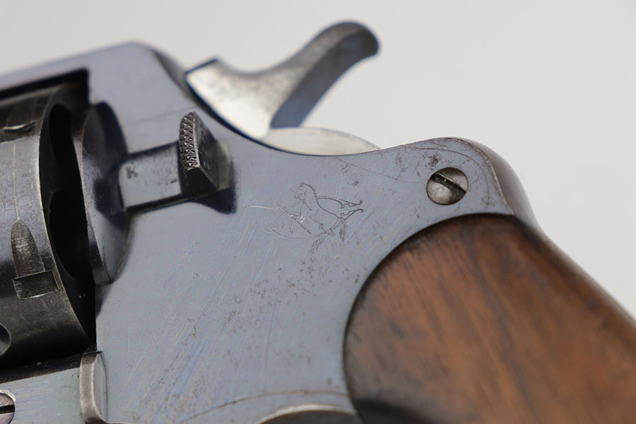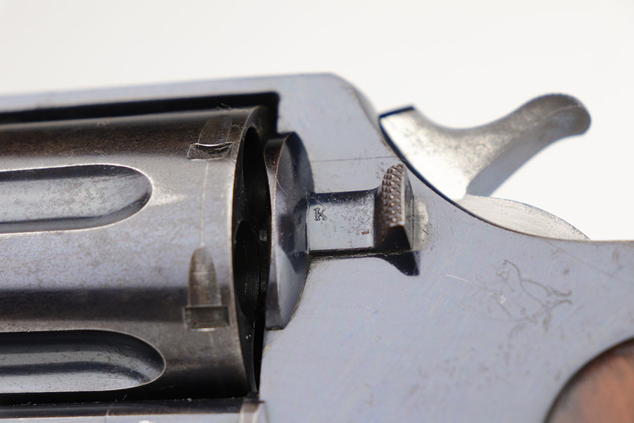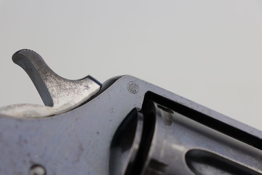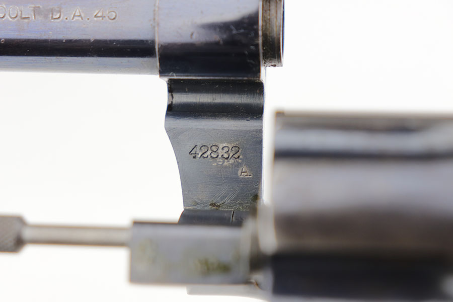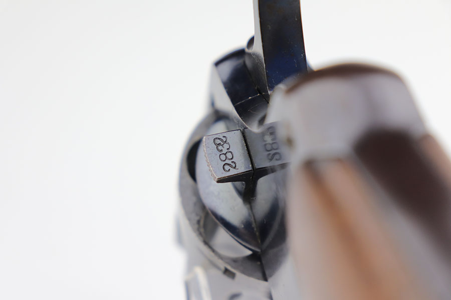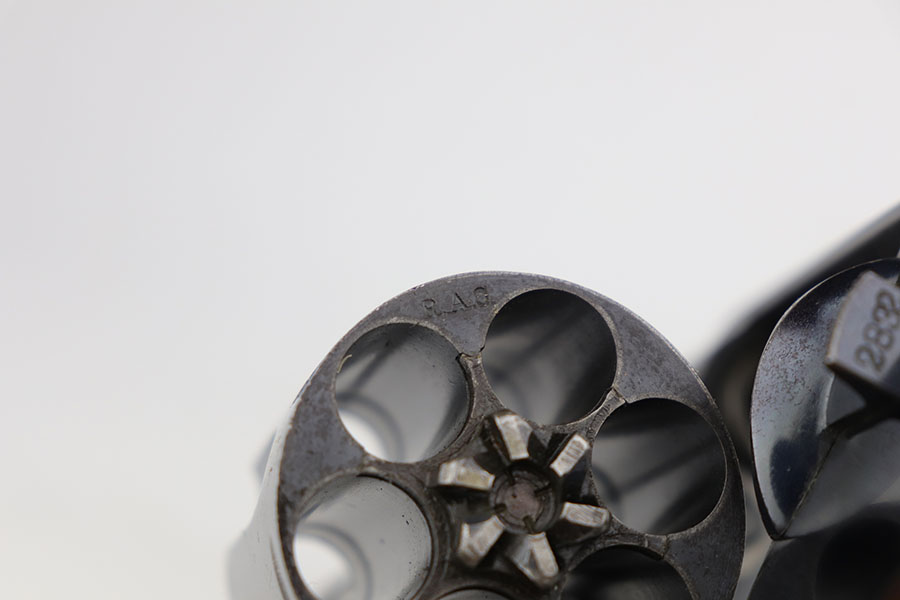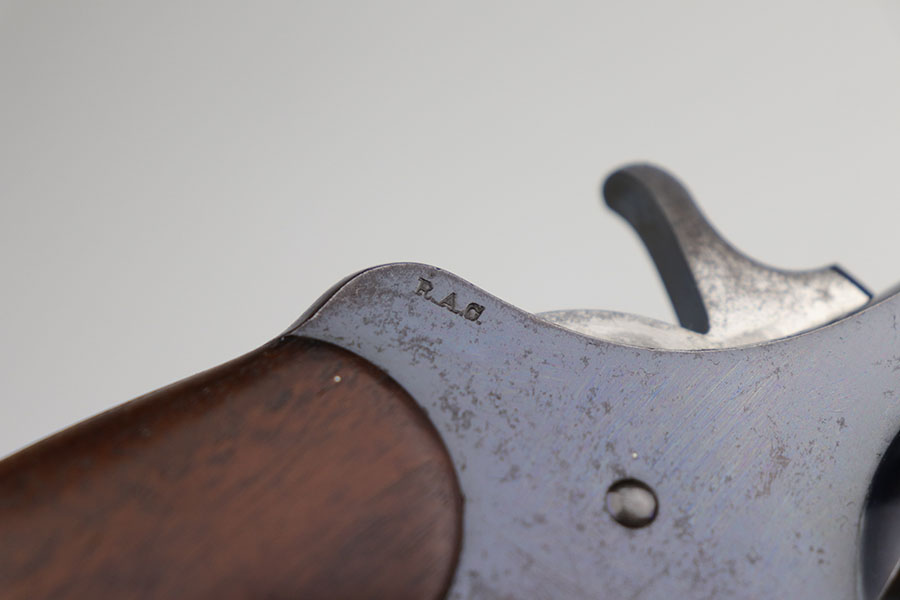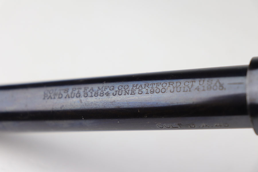 2/3/21 – This is a very nice example of a Colt Model 1909 revolver issued to the US Army during WW1. It is “United States Property” marked under the barrel and has “R.A.C.” inspector initials on the frame and bottom of the grips. It has retained roughly 85-90% of its original high polish bluing. Most of the wear is on the barrel and around the muzzle. There are light handling marks and areas of spotty brown patina throughout. The cylinder is tight and the action is smooth. Excellent bore – shiny with strong rifling.