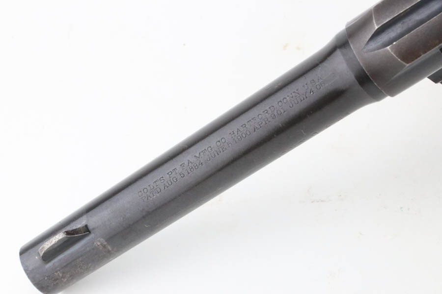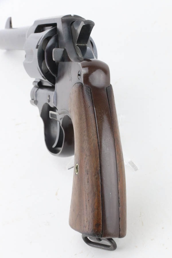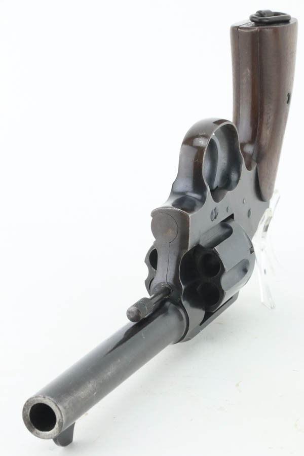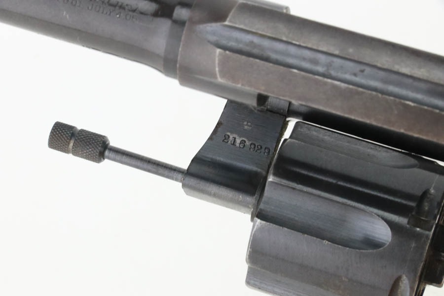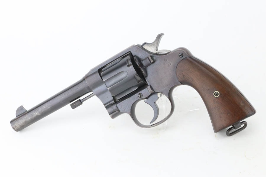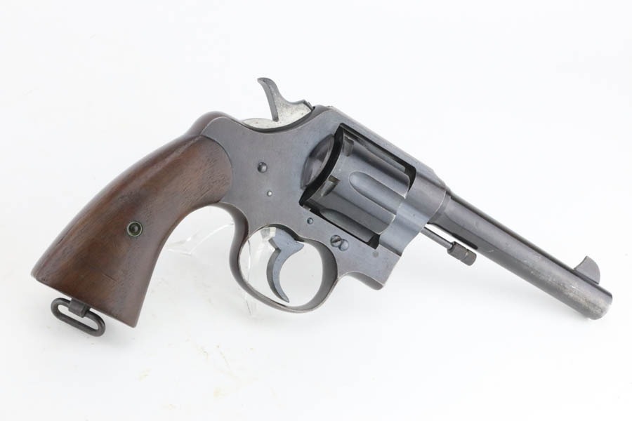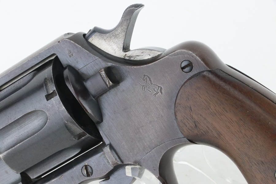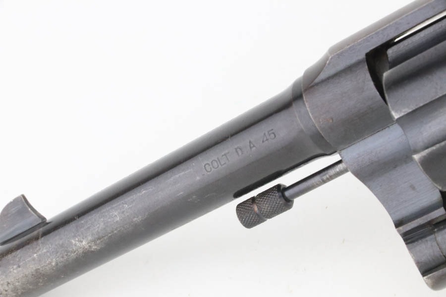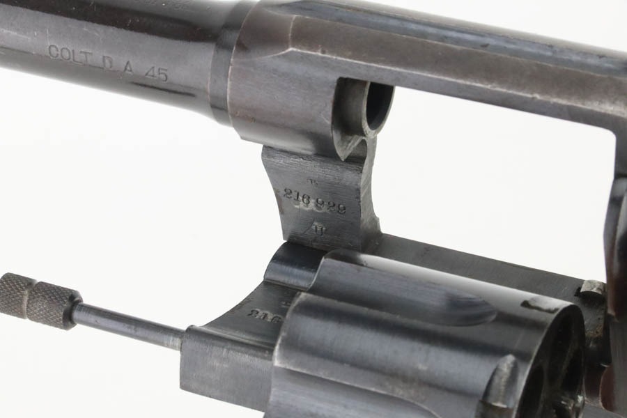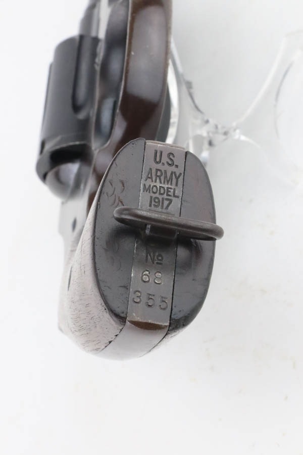 10/18/24 – This is a nice example of a Colt Model 1917 revolver issued to the US military during WW1. It is all matching, has the proper military acceptance proof on the left side of the frame, and is “United States Property” marking on the underside of the barrel. It’s original bluing rates somewhere between 85-90%. The majority of the finish loss comes from wear around the muzzle with noticeable oxidation on the left side. While there isn’t a ton of actual finish loss, there is light brown patina covering the gun. Fitted with period-correct grips – the left is numbered and mismatched, the right is not numbered. Mint bore.