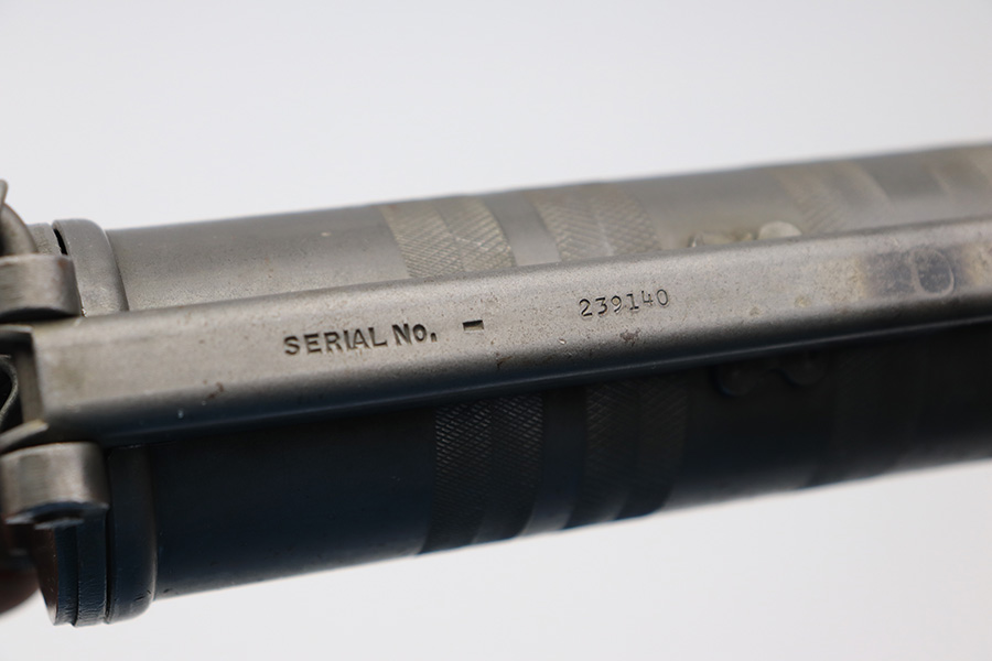3/25/22 – This is an original WW2 m9 pyrotechnic launcher device. These were used for projecting flares or signaling between ground troops and aircraft. The parkerized finish is in great condition throughout with some mild signs of aging. Fully functional.