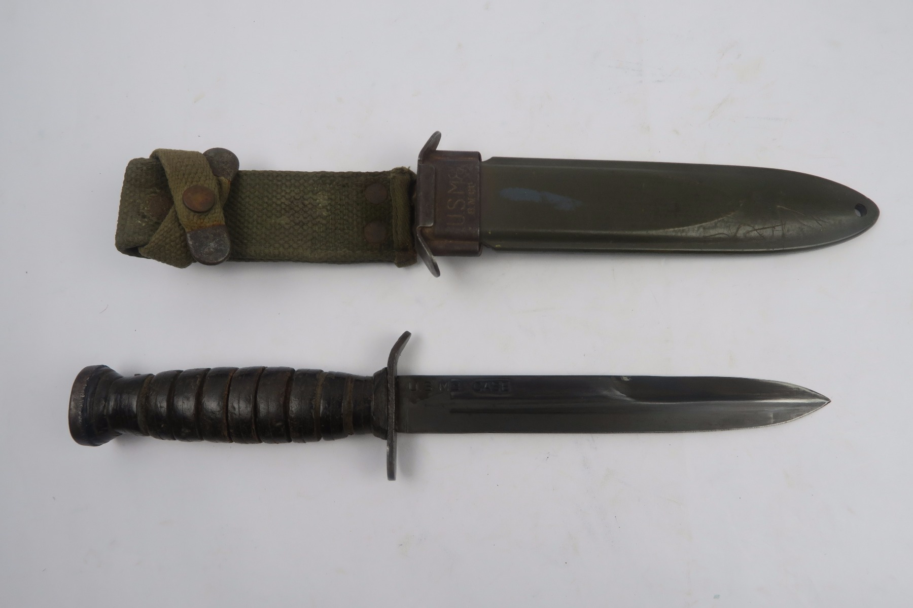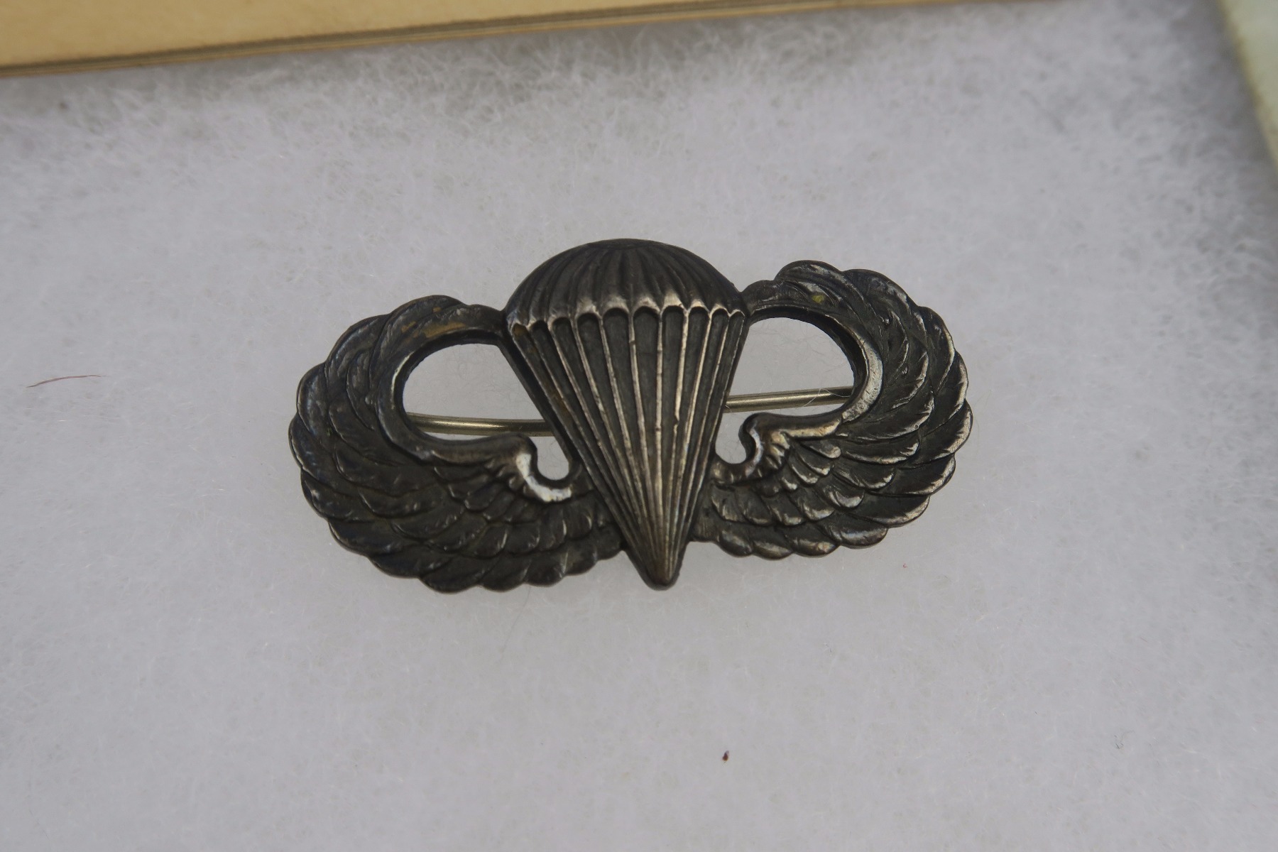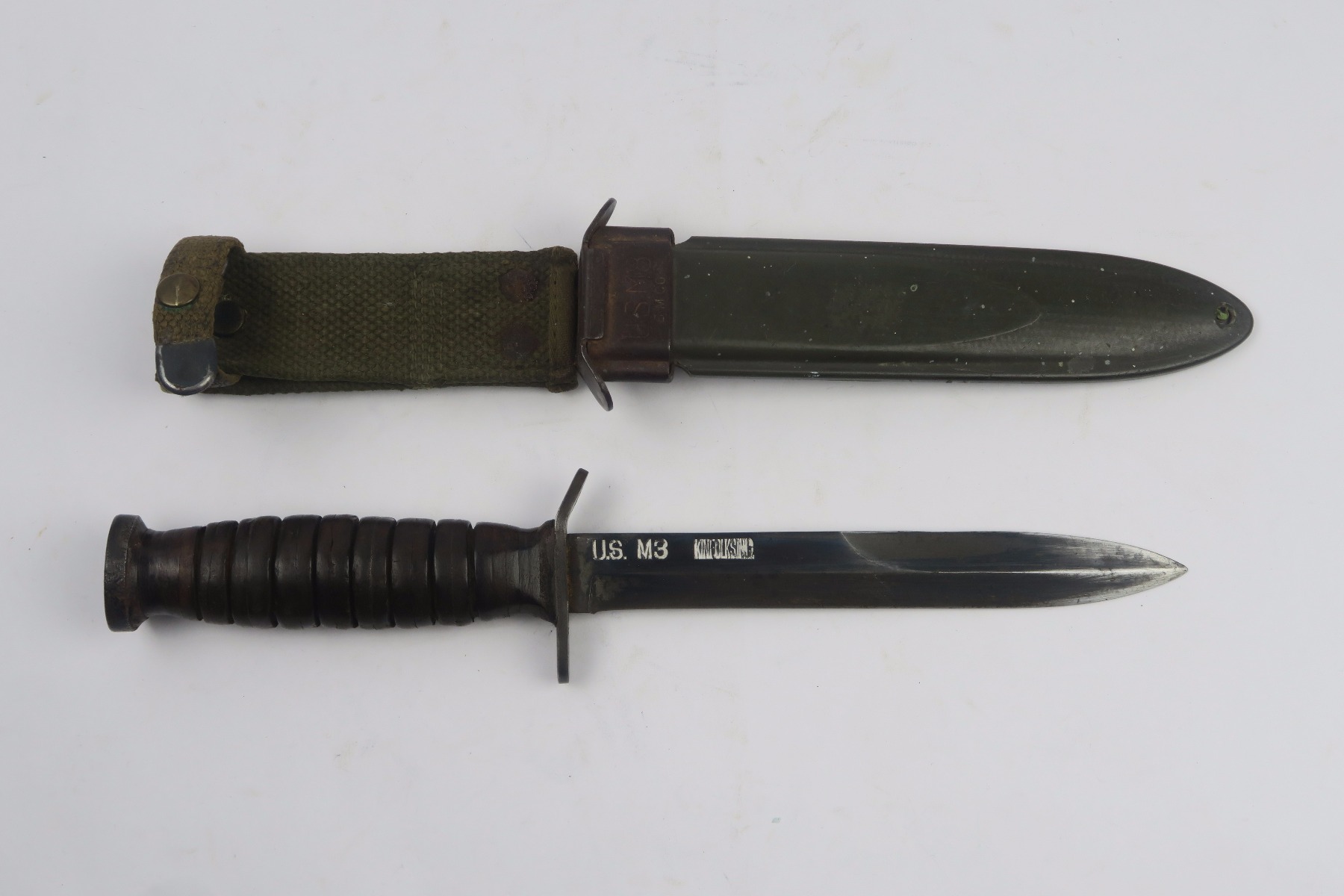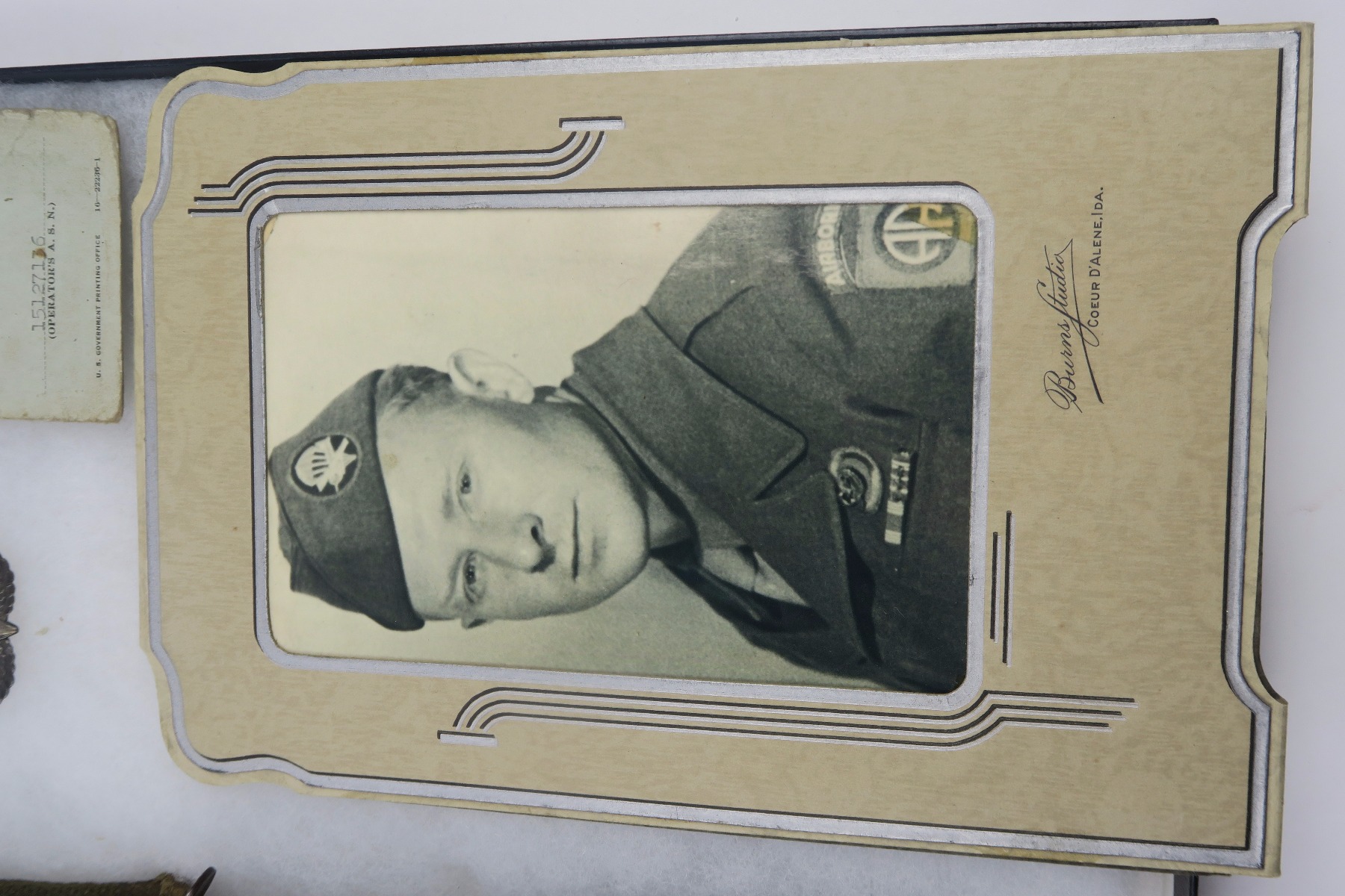 12/5/17 – This is a rare offering of a WW2 Paratrooper veteran’s belongings including two US M3 Fighting knives the solider was issued during his time of service. Each blade is engraved on one side with the soldier’s name: “David T. Quigley” and serial number. David Quigley fought with the US Airborne paratroopers and we have his parachute log record, US Airborne patch and pin, Soldier’s Pay Record booklet, Motor Vehicle Permit, dog tags, photo, and two identification cards for when he was enlisted in the Army Reserve Corps. Furhter research on this soldier found that he was born June 6th 1925, received a Purple Heart during WW2, and died on February 10th, 1991. Everything shown in photos is included with this listing. The two blades are different maker stamps, one being CASE blade marked and the other being KINFOLKS blade marked. The family had each blade engraved with his name after he returned from WW2. This is a very cool grouping of REAL US history! Guaranteed all original and authentic.