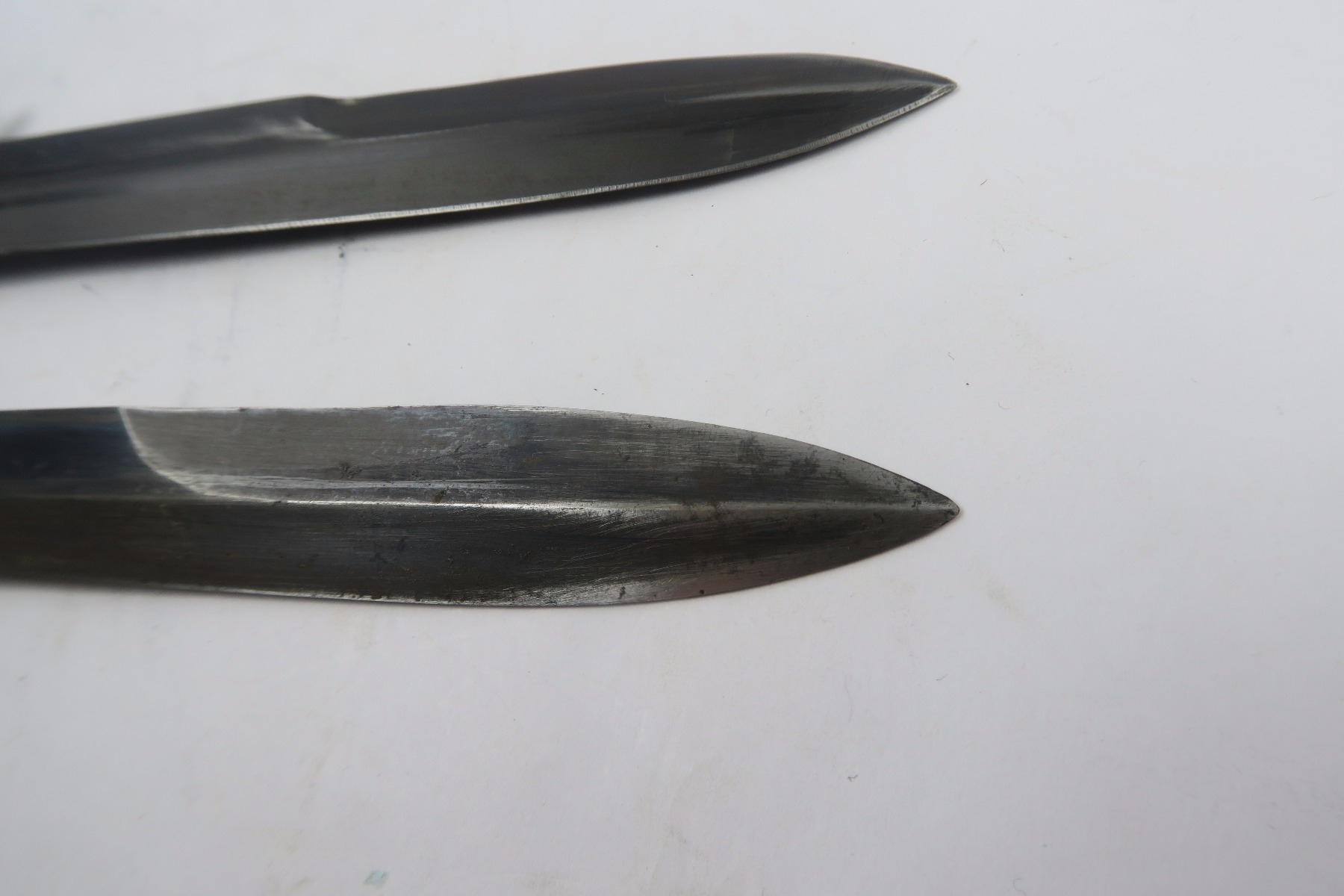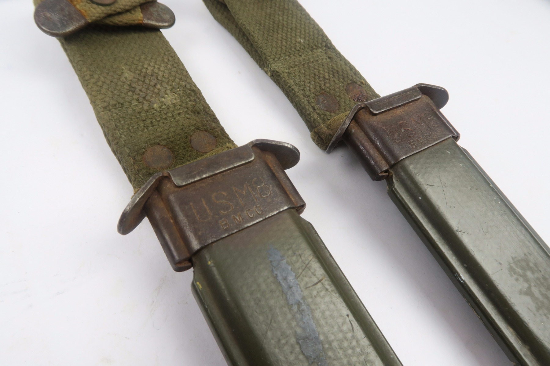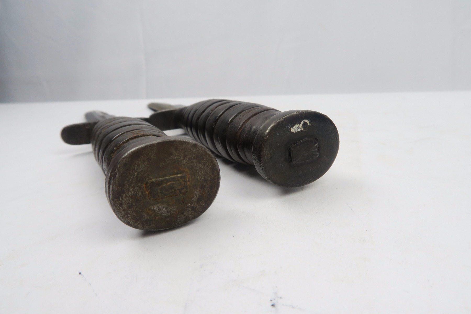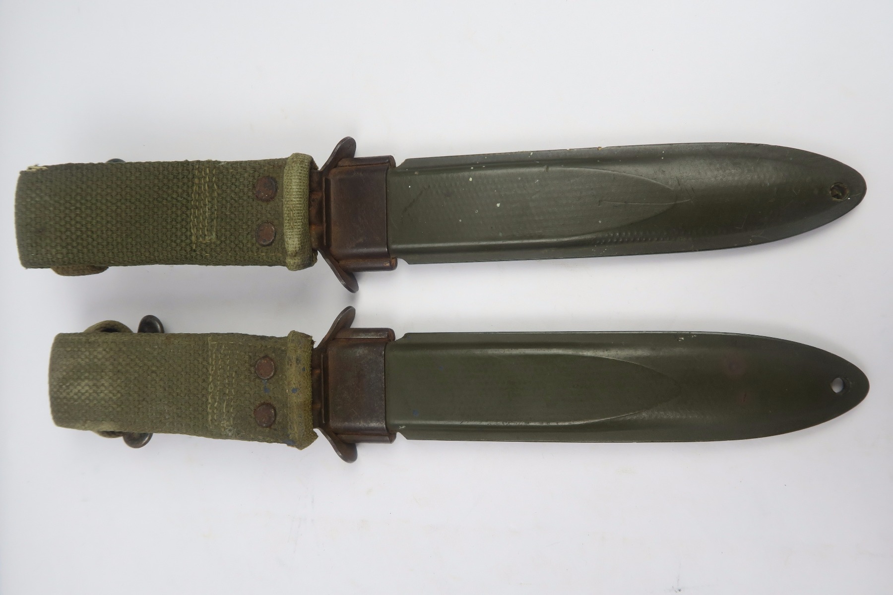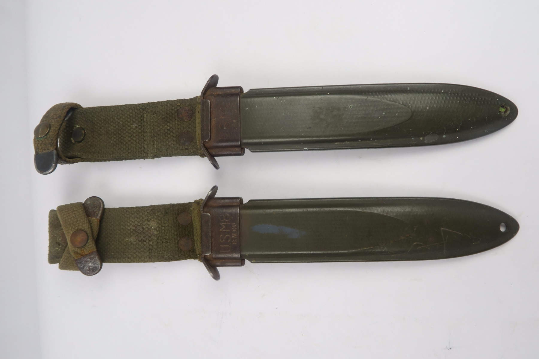 12/5/17 – This is a rare offering of a WW2 Paratrooper veteran’s belongings including two US M3 Fighting knives the solider was issued during his time of service. Each blade is engraved on one side with the soldier’s name: “David T. Quigley” and serial number. David Quigley fought with the US Airborne paratroopers and we have his parachute log record, US Airborne patch and pin, Soldier’s Pay Record booklet, Motor Vehicle Permit, dog tags, photo, and two identification cards for when he was enlisted in the Army Reserve Corps. Furhter research on this soldier found that he was born June 6th 1925, received a Purple Heart during WW2, and died on February 10th, 1991. Everything shown in photos is included with this listing. The two blades are different maker stamps, one being CASE blade marked and the other being KINFOLKS blade marked. The family had each blade engraved with his name after he returned from WW2. This is a very cool grouping of REAL US history! Guaranteed all original and authentic.