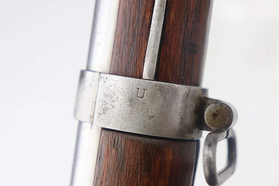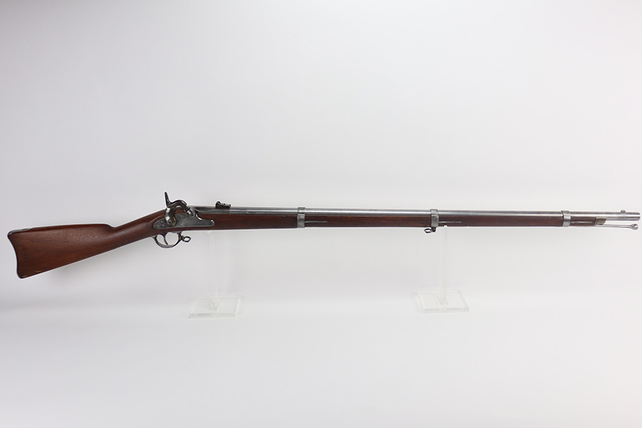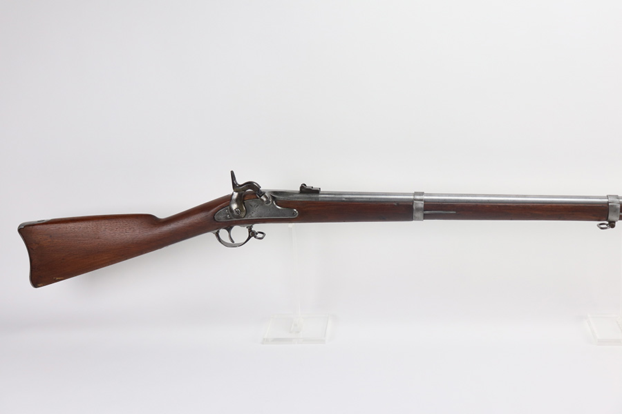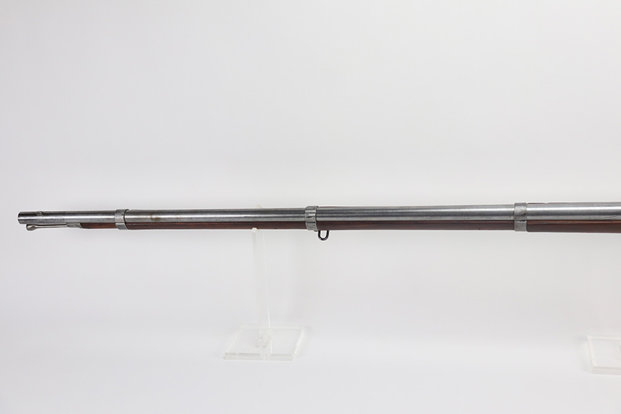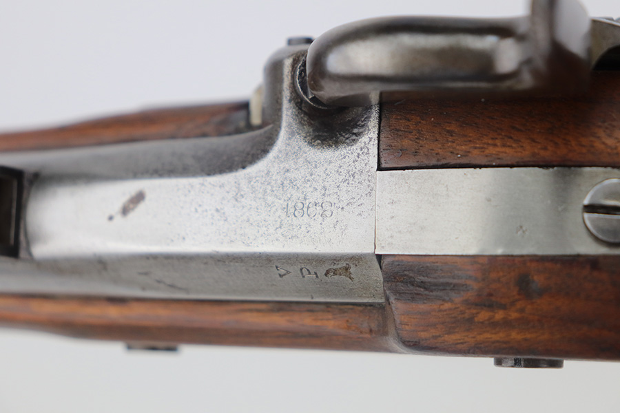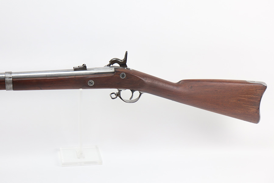 6/21/21 – This is a very nice example of a Springfield Model 1861 Rifle issued to the US military in 1862. The gun has the proper military proofs on the receiver. The lock has the proper Springfield logo and is dated 1862. The butt plate is marked “US”. The stock has very faint inspector proofs on the left side. Overall, the gun is in very nice condition with spotty oxidation throughout and areas of minor pitting here and there, most noticeable around the muzzle, on the barrel bands, and on the top of the receiver. There are a few noticeable scratches on the left side of the barrel. The stock is excellent but has been sanded – markings just barely visible. The bore is excellent – shiny with strong rifling. 40″ barrel. NOTE: The trigger guard is loose/can be removed if pulled down on.