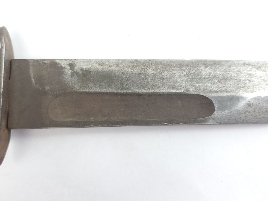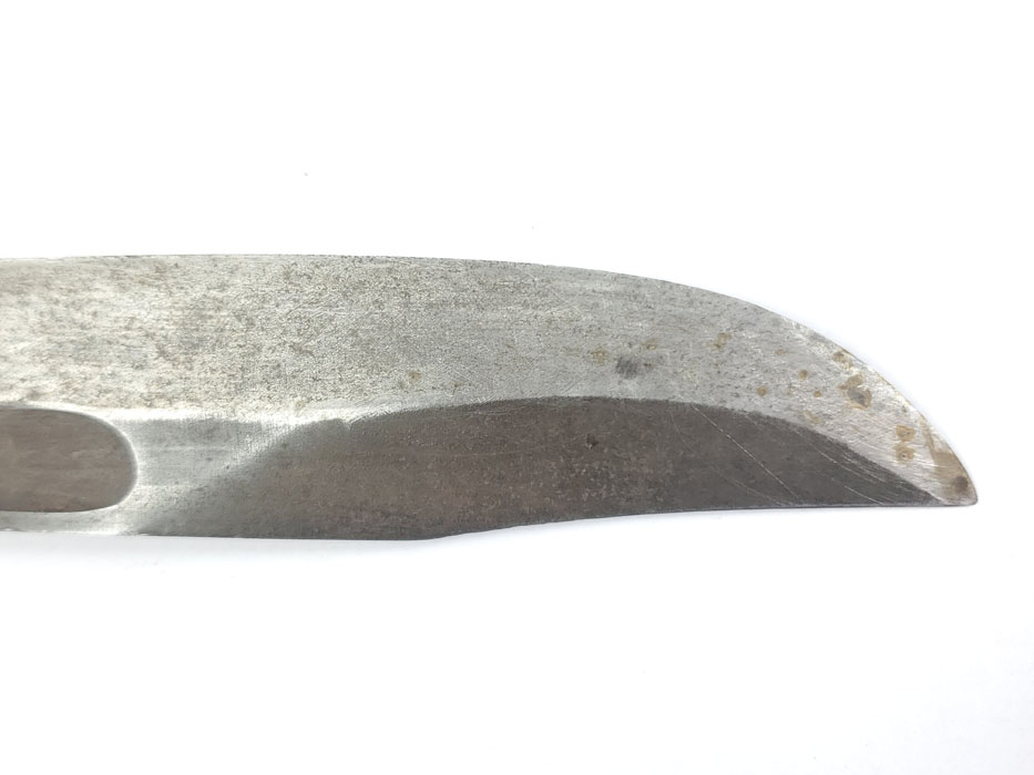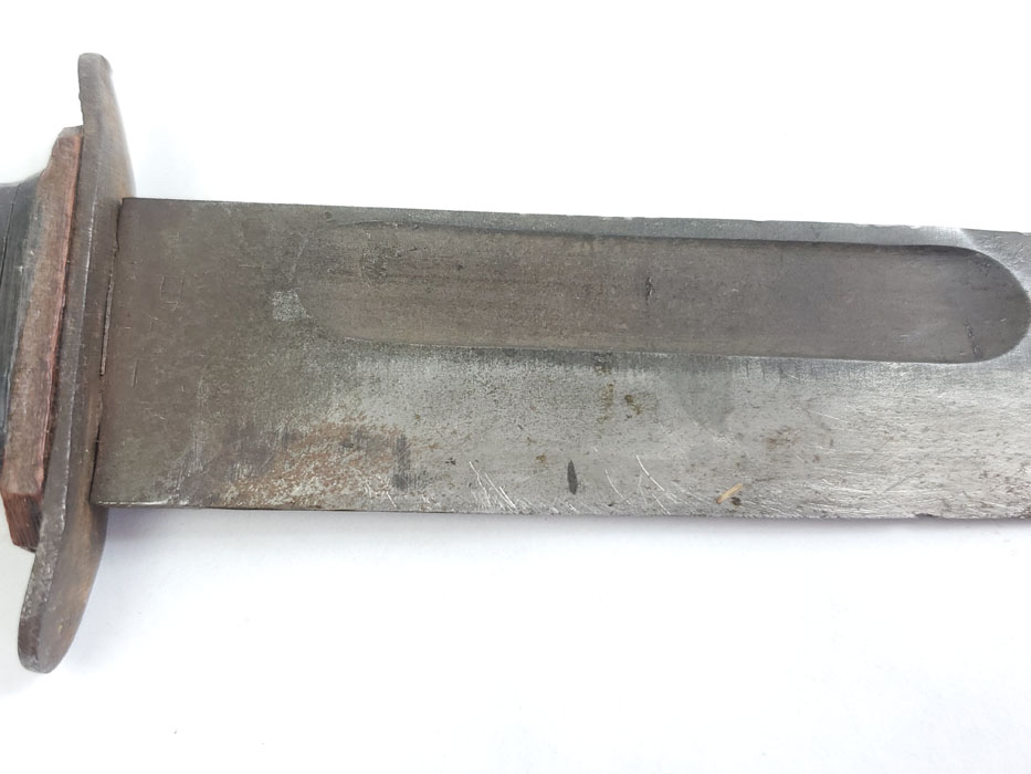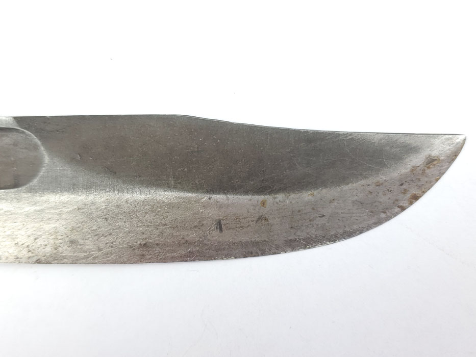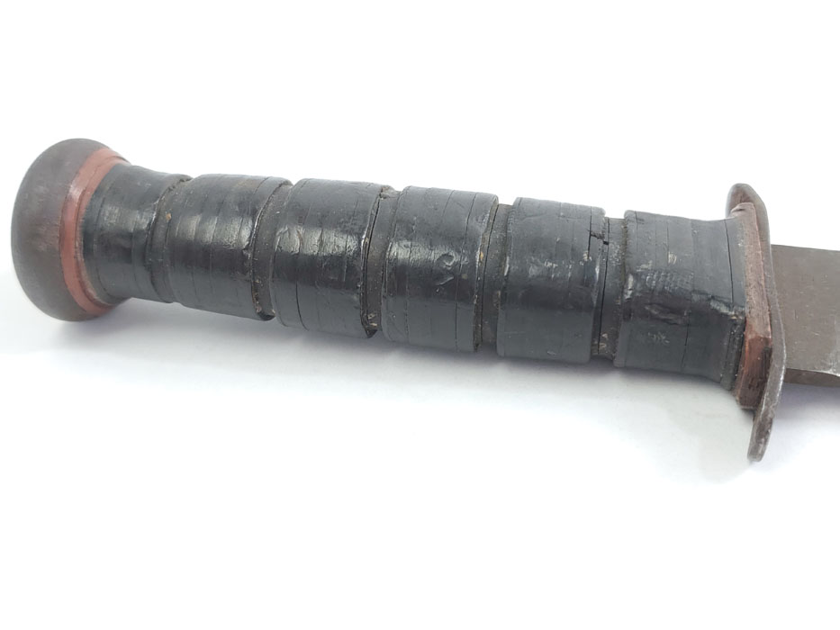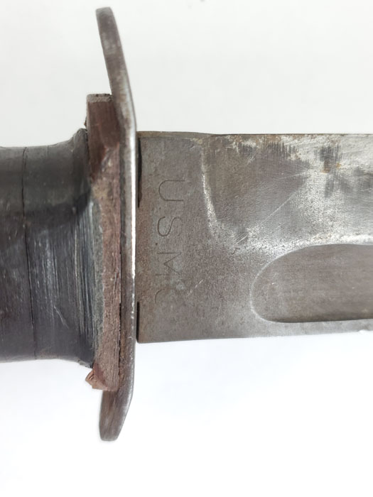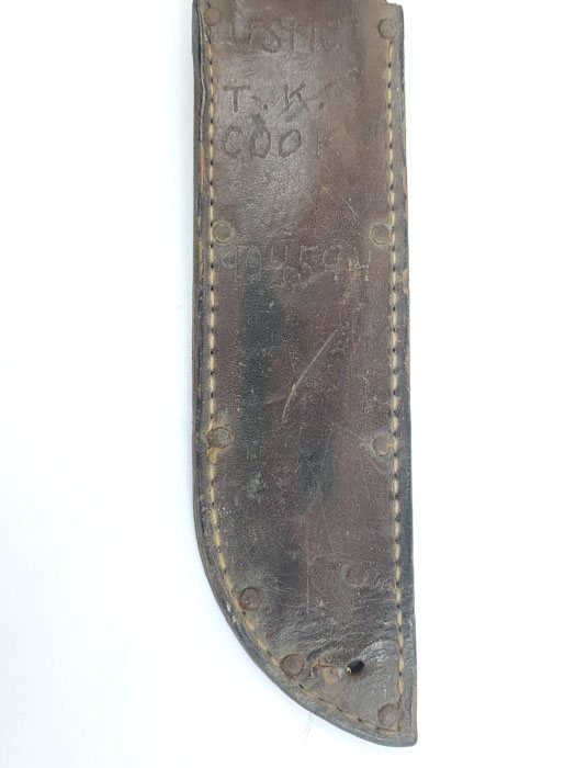 5/22/20 – This is an original USMC KA-BAR made by PAL for use during WW2. The blade comes with the original leather scabbard, which is inscribed on the front with the original owner’s name and service number. This KA-BAR has the earlier production red spacers on the handle. The blade is in fair condition with some surface wear throughout, but the markings are still visible near the hilt. The leather sheath is completely in tact with all original rivets and stitching.