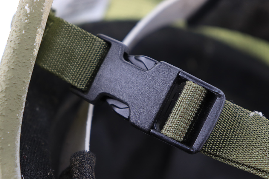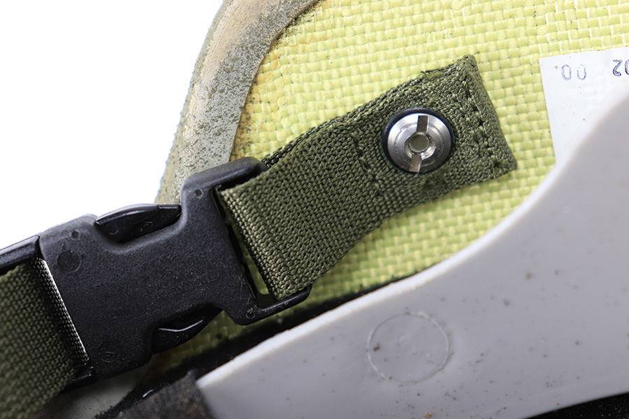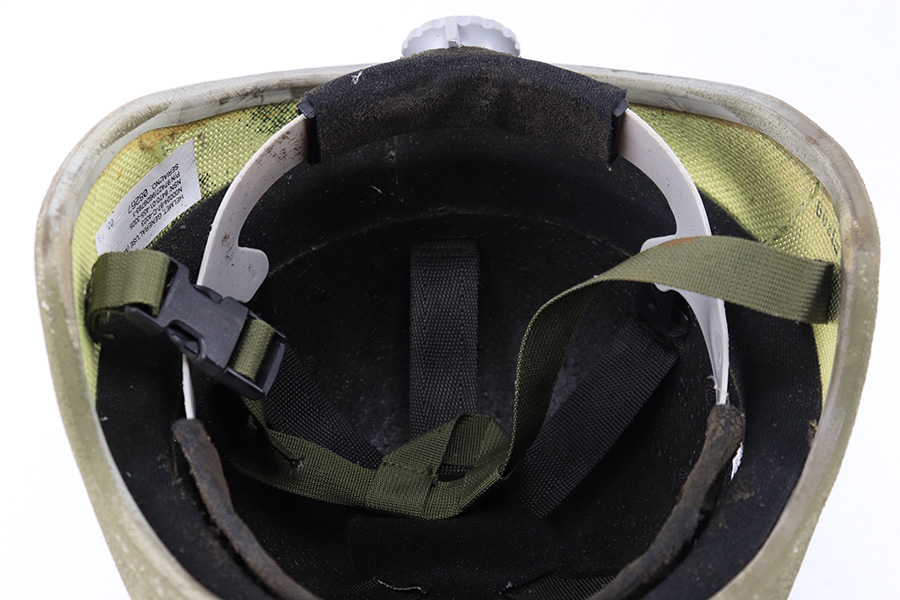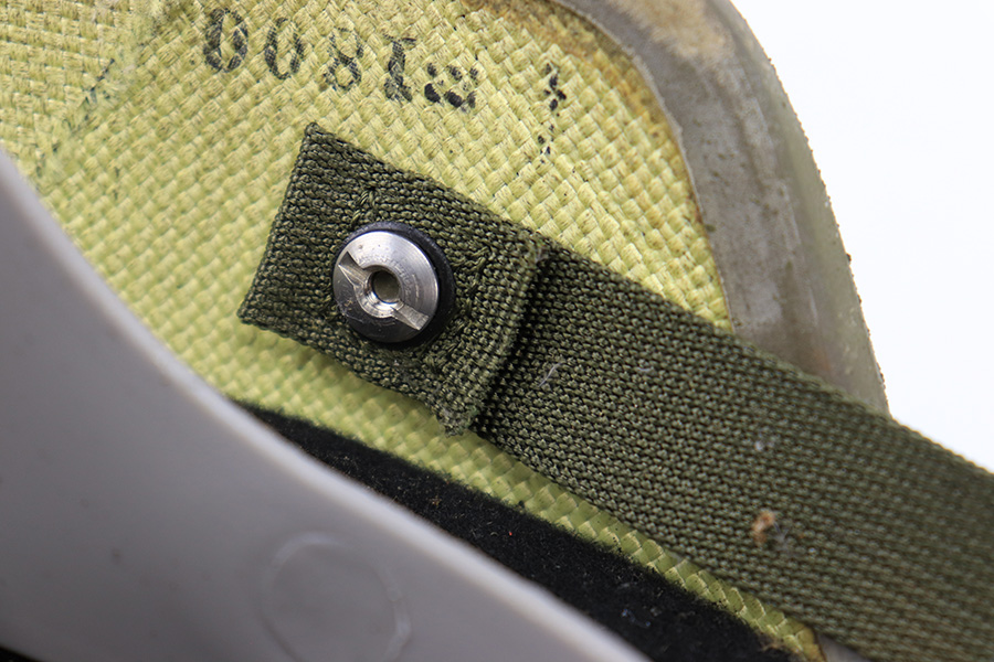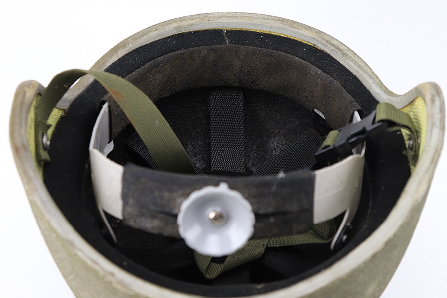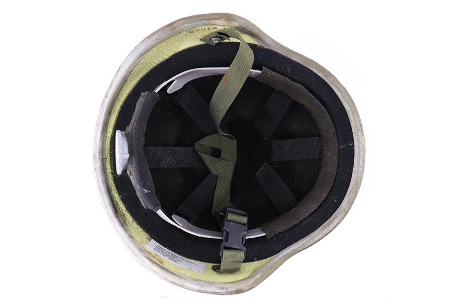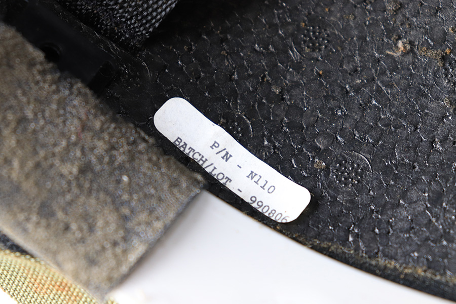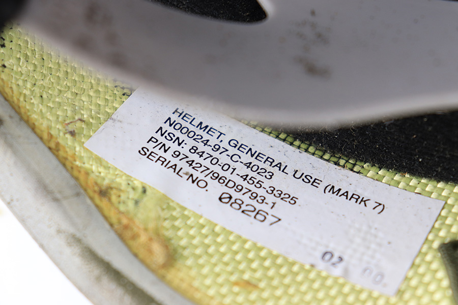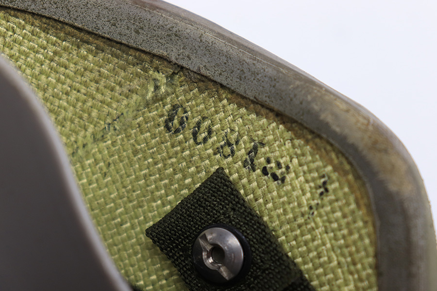 8/22/23 – This is an original US Navy Gentex Mark 7 battle helmet. The helmet is in great condition with an excellent olive green painted exterior kevlar shell. The interior liner is size adjustable for a universal fit. The liner is in great condition but does have some mild shedding when handled along the headband. The original interior labels are still attached and clearly visible. One of the labels shows the manufacture date “02 00” in the corner of the label, for February of 2000.