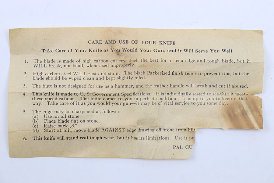SOLD – USN Mk 1 RH-35 PAL Knife with Care Tag