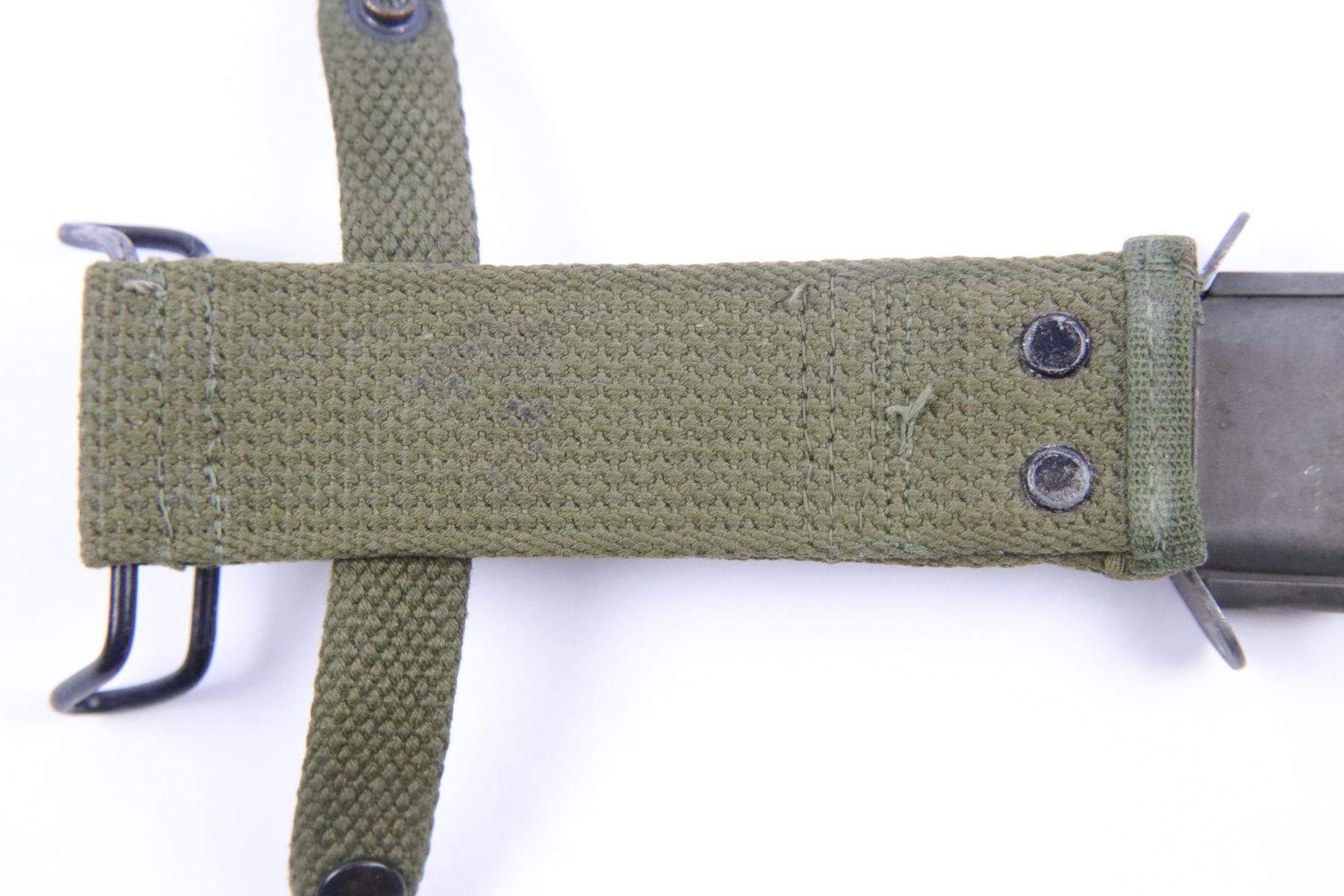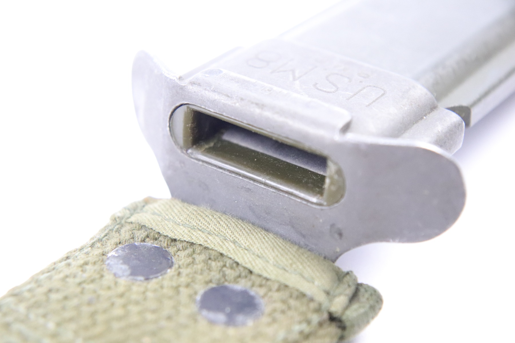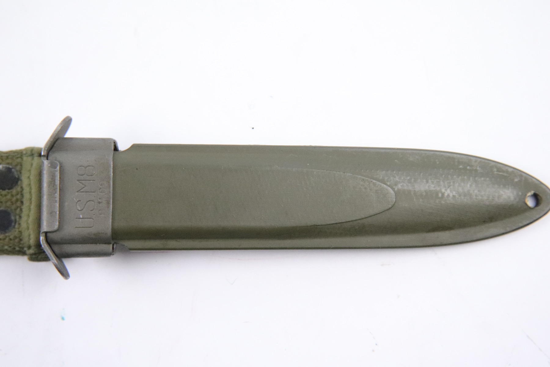5/18/18 – This is an original Utica US M4 bayonet for the M1 carbine rifle during WW2. The bayonet is US ordnance stamped on the underside of the hand guard, next to the Utica maker stamp. Excellent condition and completely original with an original US M8 scabbard. Guaranteed original and authentic.