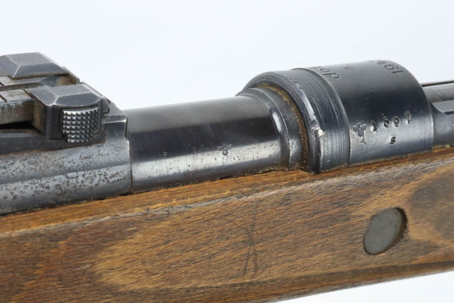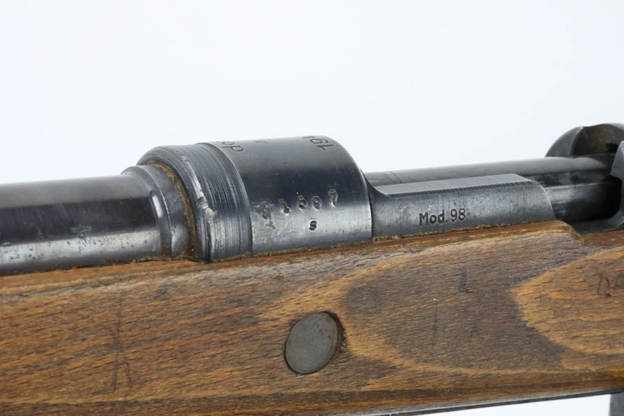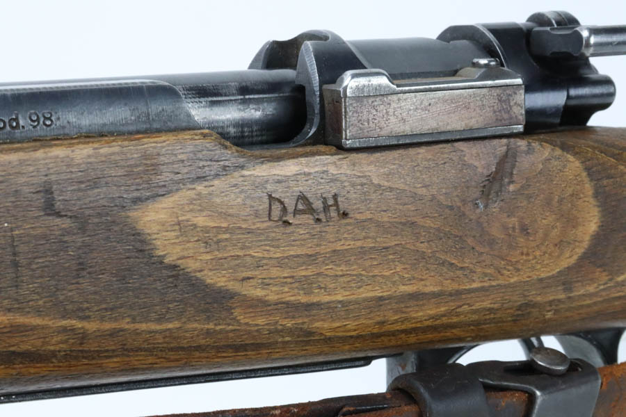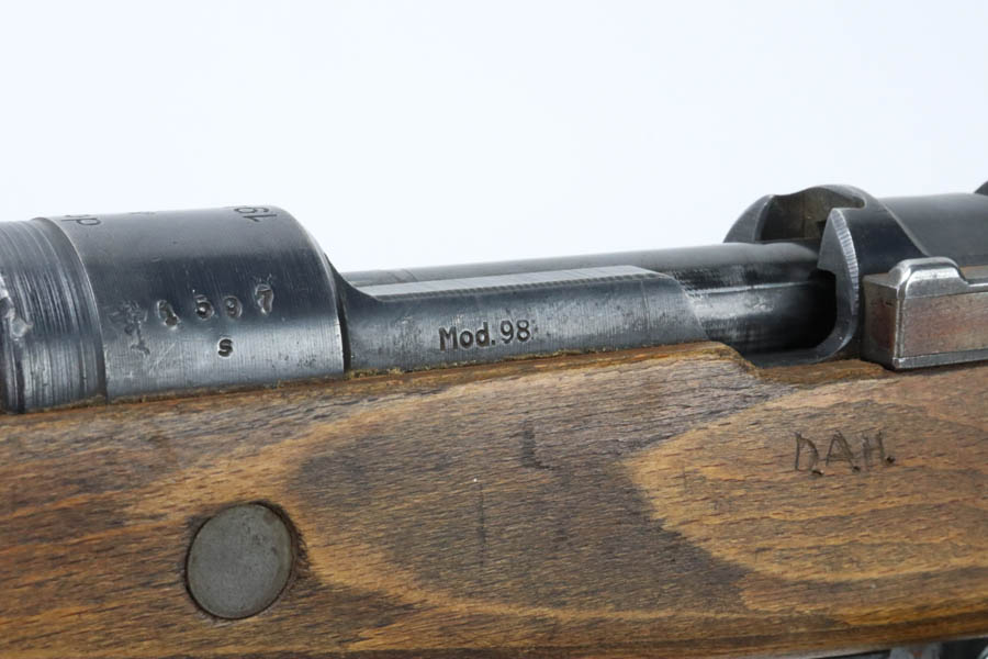 08/02/2024 – For sale is a K98k rifle made by BRNO of Czechoslovakia under German occupation. The rifle is in great condition for its age and the metal retains a very nice bluing throughout. There are visible spots of freckling and oxidation and edge wear. The stock is in nice condition without any cracks or breaks, but there are some pressure marks visible, and the initials “D.A.H.” are scratched into the left side. The bottom of the stock and the top of the handguard are stamped “dot.” The rifle matches throughout. The bore is bright with nice rifling. The bottom of the magazine has “PA 03781529” etched into it.