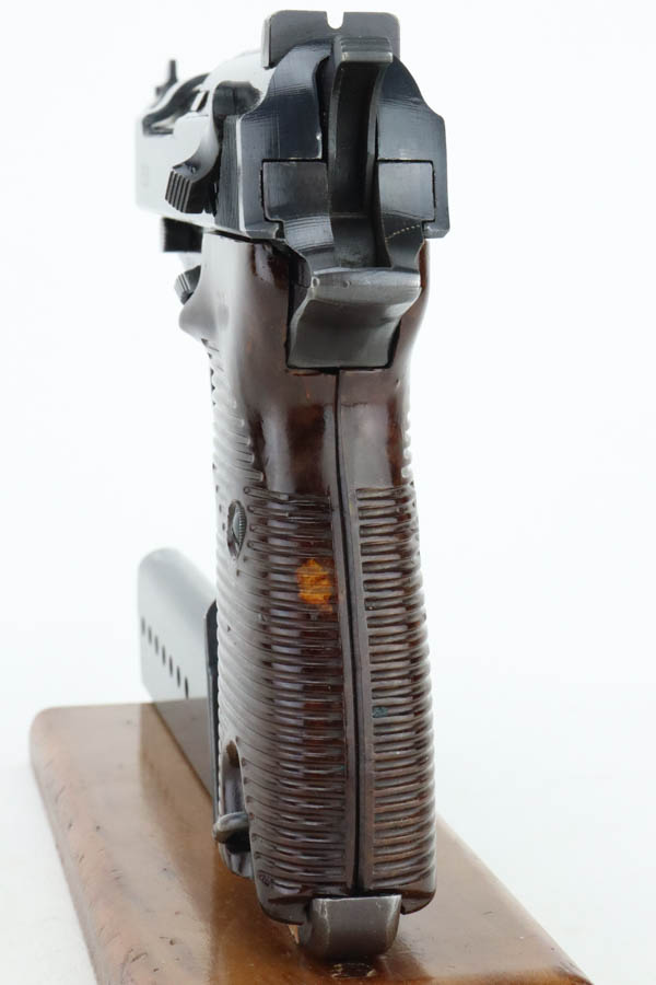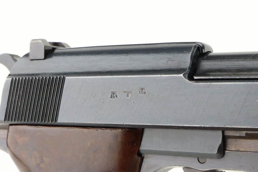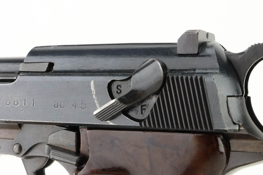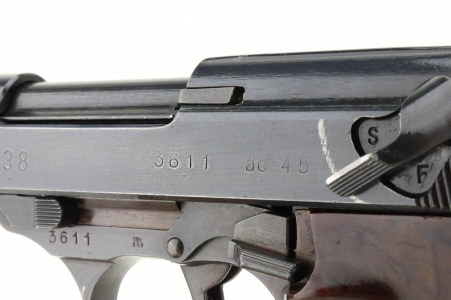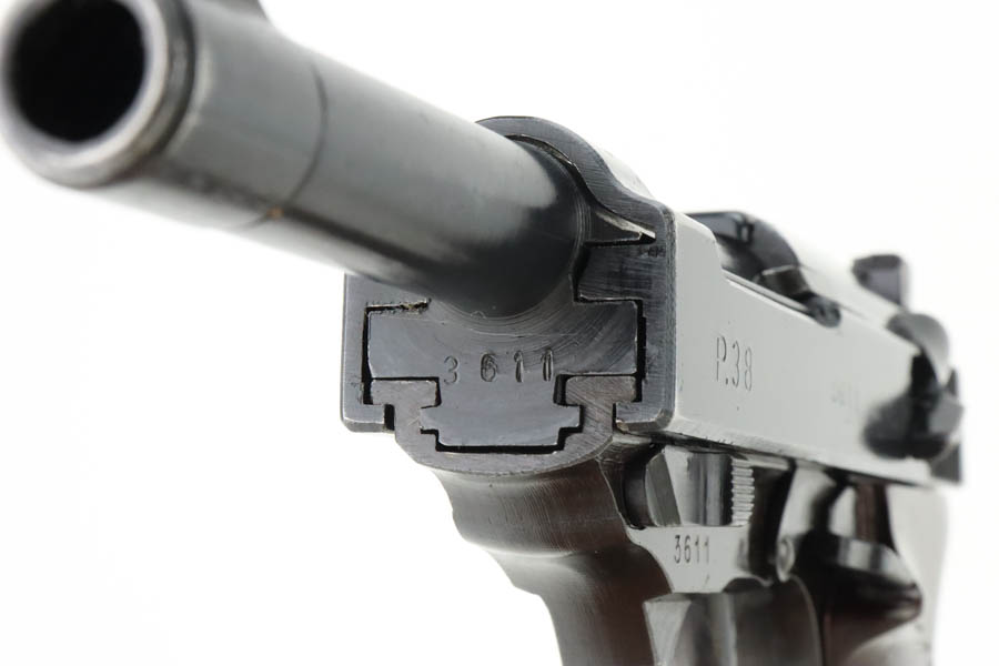 05/30/2024 – For sale is an excellent condition Walther P.38 Handgun made in 1945. The pistol is in an overall 98% condition with minor edge wear towards the front of the slide and a mark left by the safety lever. The bore is excellent and very bright with some streaks in the grooves from use. The bakelite grips are in good condition and free of cracks. The handgun has all matching serial numbers.