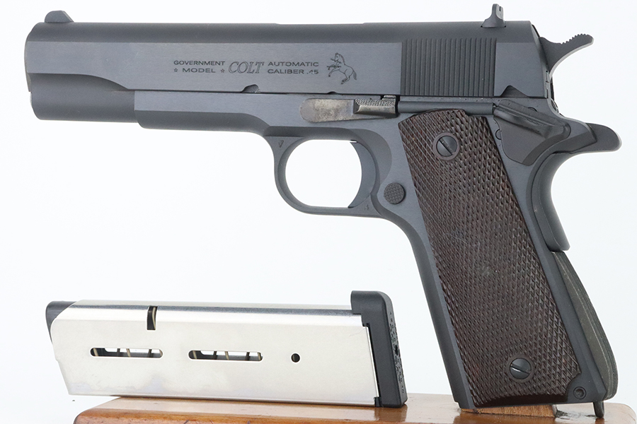 08/13/2024 – For sale is a Colt Model 1911 Government with a high polish blued finish. The overall condition is excellent with some small scratches visible on the finish. The slide stop lever has been replaced with a USGI one and has some pitting visible on it. The bore is very bright with great rifling.