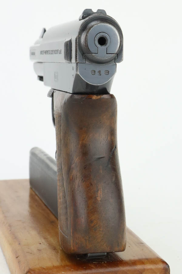 05/30/2024 – For sale is a Mauser Model 1934 pistol made for the German Army. This handgun is in an overall 97% condition and has some edge wear on the frame and slide, and some handling scratches throughout. The pistol is stamped with Eagle/655 inspection marks and army-proofed on the frame. The wood grips are clean and free of cracks. The bore is bright and has great rifling.