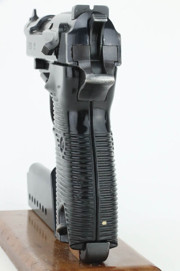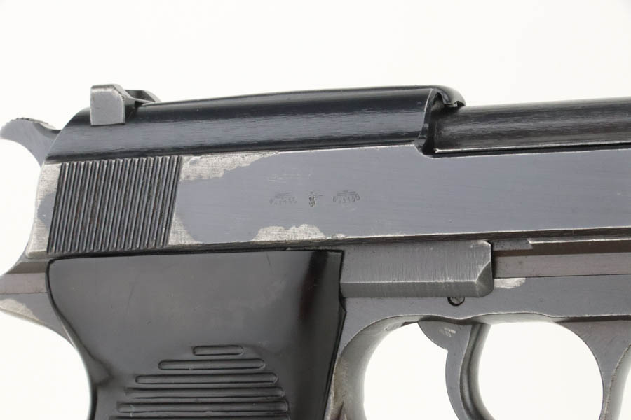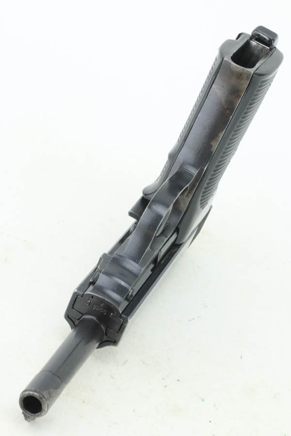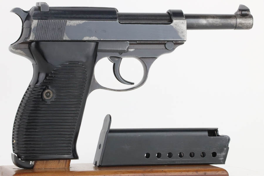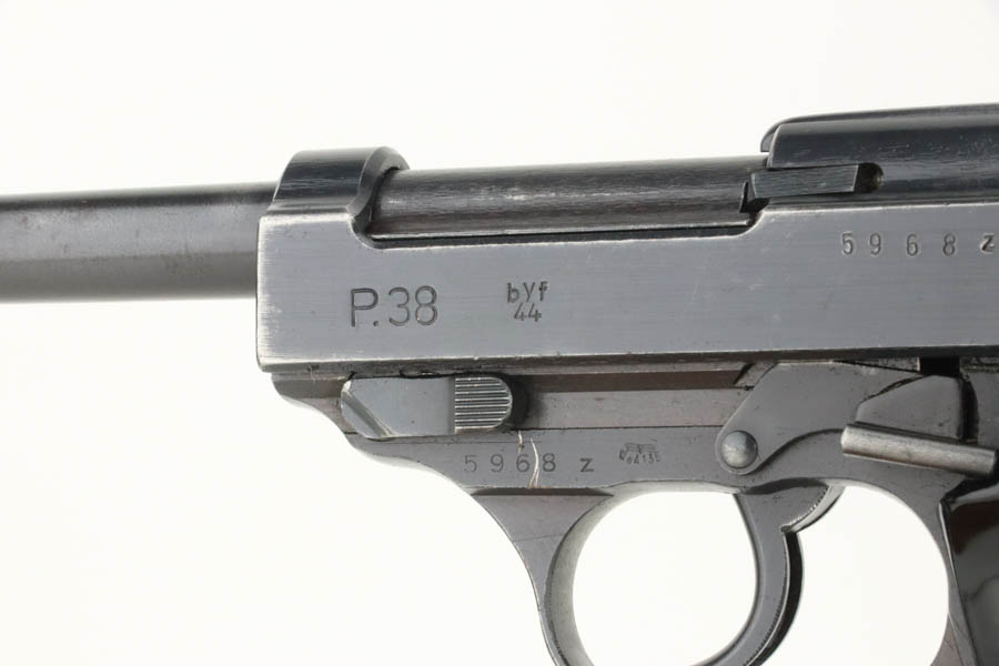 09/13/2024 – For sale is a P.38 handgun made at the Mauser factory in 1944. The pistol has a nice military blue finish with some edge wear towards the front of the slide. There is some finish loss on the top of the barrel as well and the front of the grip. The grips are in great condition with minor handling scratches. The magazine is a post-war reproduction. The pistol has matching serial numbers throughout.