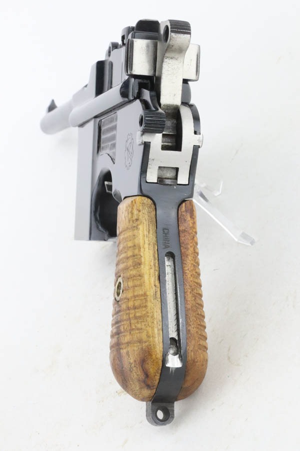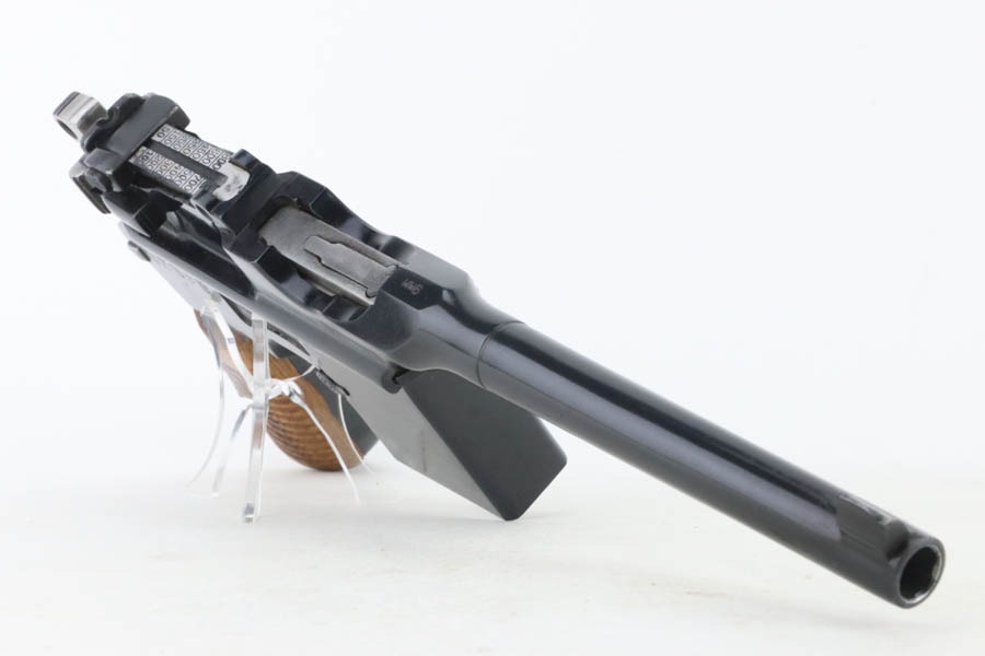 10/23/24 – This is a Navy Arms TU711 in minty condition, retaining nearly all of its finish, just a few tiny handling marks here and there. Terrific bore, shiny with strong rifling. Excellent wood grips. The following was taken off the Navy Arms website: “Patterned after Mauser 711 (semi-auto version of the Model 712 Schnellfeuer), 5 1/4 in. barrel, 712 upper receiver that has been converted to 9mm Para. and mounted on new lower receiver, supplied with 10 and 20 shot detachable mag., mfg. in China, 2 lbs. 11 oz. Imported 1992 only.”