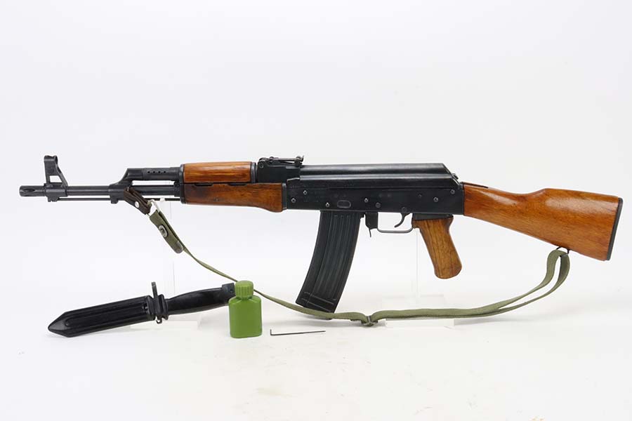 07/16/2024 – For sale is a Norinco Model 84S rifle chambered in 5.56×45. These rifles are Type 56 style AKs that were adapted for the US market. The chambering was changed from 7.62×39 and a threaded barrel with a birdcage style flashider was added. This rifle is in great condition with a lot of the original bluing remaining but there is wear on the side and top of the receiver. The wood furniture are in excellent condition with no cracks or breaks. The bore is bright with great rifling. The rifle comes with one magazine, a bayonet, and oiler bottle.