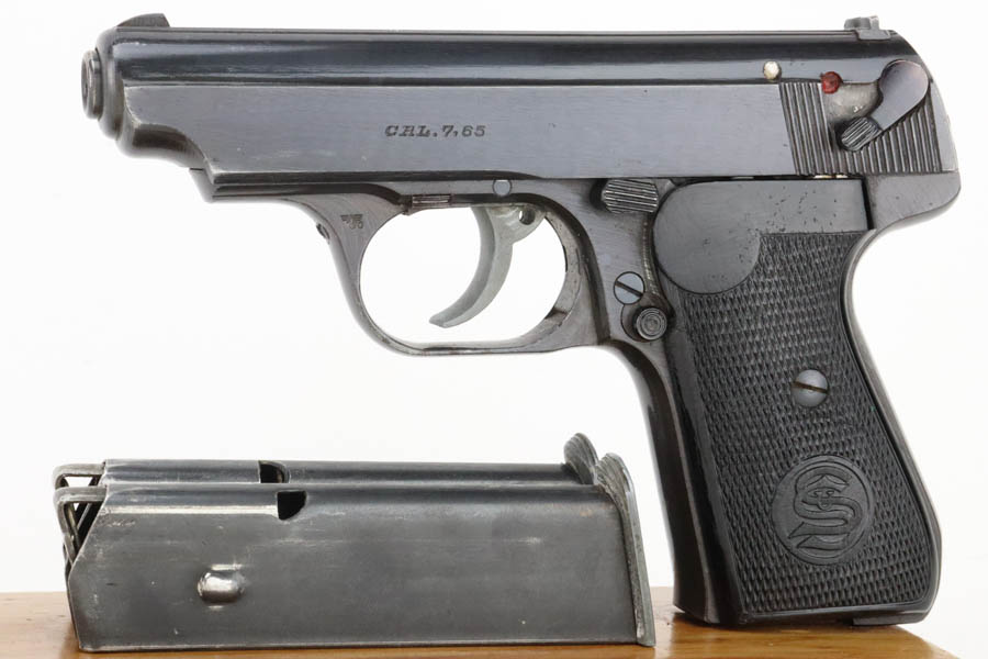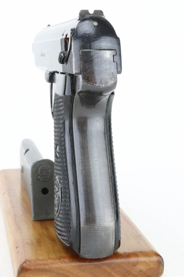 05/28/2024 – For sale is a Sauer Model 38h pistol issued to the German Police during WW2. This handgun is in an overall 98% condition with minor edge wear on the slide from the holster. The handgun has matching serial numbers on the slide and frame. The trigger guard is stamped with an Eagle/C denoting it being issued to the police. The frame and barrel are stamped Eagle/N. The holster is in great condition with minor wear and stamped with a Police Eagle next to the magazine. The inside of the holster has a series of letters and numbers. One extra magazine is included.