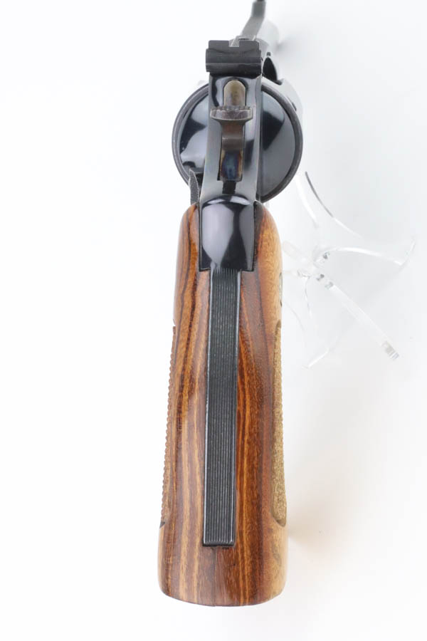 07/30/2024 – For sale is a Smith & Wesson Model 27-2 revolver chambered in .357 mag with a 6″ barrel. The overall condition is excellent with the metal retaining a very nice high polish bluing. The trigger and hammer have a nice case color finish. The wood grips are in excellent condition and the diamond knurling is still sharp. The bore is mirror bright with great rifling. The revolver comes with a soft cloth and a S&W box that is not numbered to the gun.