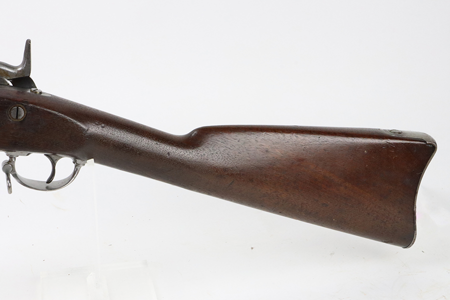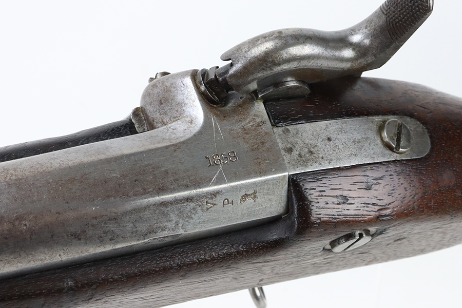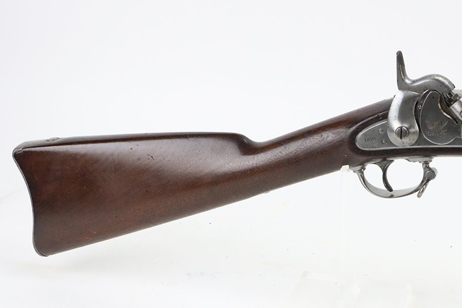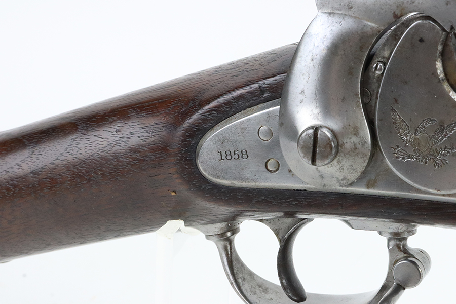 08/26/2024 – For sale is a very nice Springfield Model 1855 rifled musket chambered in .58 caliber. This rifle is in great condition for its age with the metal having spots of grey patina throughout. There aren’t any signs of pitting or heavy corrosion. The stock is in great condition without any cracks or breaks. The lock plate is marked “US Springfield” with the Eagle Crest and the year 1858. The top of the barrel is also stamped 1858. The bore is bright which is rare for a gun this old, with great rifling. The rifle comes with a socket bayonet and scabbard.