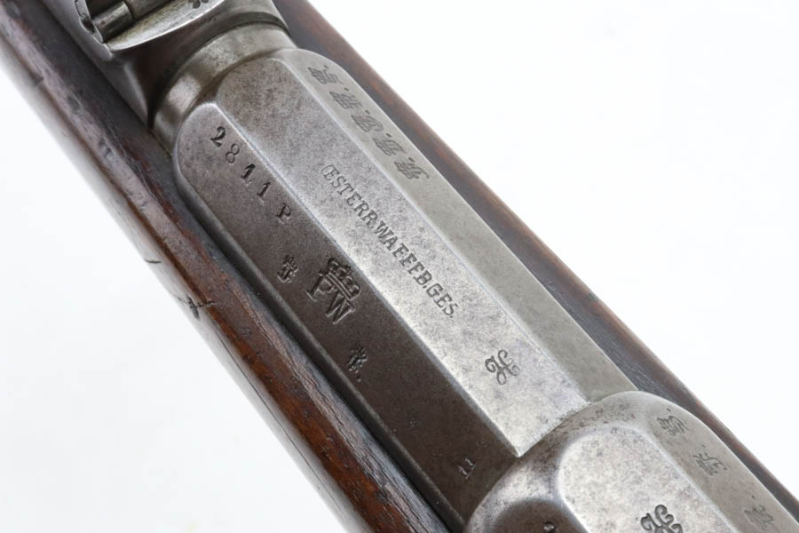 07/22/2024 – For sale is a model 1871 Mauser made at Österreichische Waffenfabrik Gesellschaf on contract with Steyr in Austria. The rifle is in great condition for its age. The metal has a layer of patina throughout but is free of any active rust or corrosion. The stock is clean and free of any cracks or breaks. The proofs are still visible on the bottom of the stock. The rifle is nearly all matching except the buttplate is mismatched. The cleaning rod is unmarked. The bore is fairly bright but fully frosted over and is darker towards the muzzle.