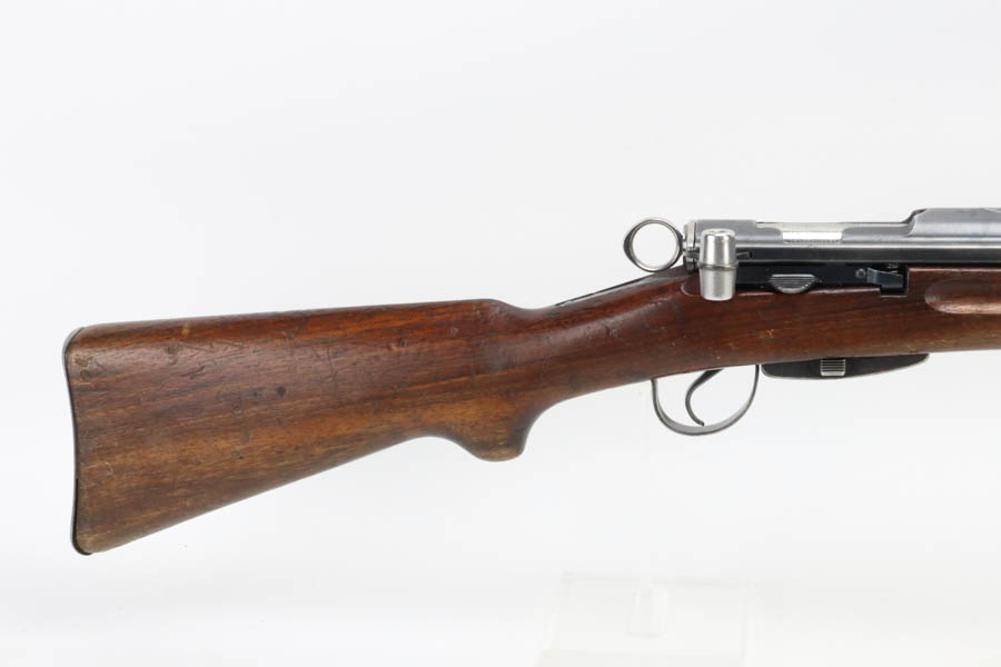 08/13/2024 – For sale is a desirable Swiss K31 rifle made early on in 1935. These rifles would be produced from 1933 to 1958. This rifle is in excellent condition overall for its age and is in “wartime” condition. The K31 is considered the best of the military surplus rifles in the bolt action era with their fantastic accuracy and match-like triggers. The metal retains some of its original bluing but most of it has worn away or begun fading. The rifle is all matching on visible serial numbers including the receiver, bolt, and magazine. The bore is very bright with great rifling but the brightness is fading towards the muzzle. The stock is in good condition and typical of K31s with a worn toe due to Swiss soldiers kicking snow off their boots with the stock. The rifle comes with 40 rounds of PPU 7.5×55 174gr FMJ ammo. There is also a troop tag underneath the buttplate of the soldier it was issued to.