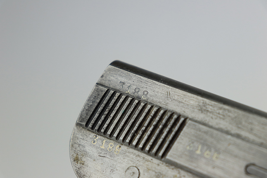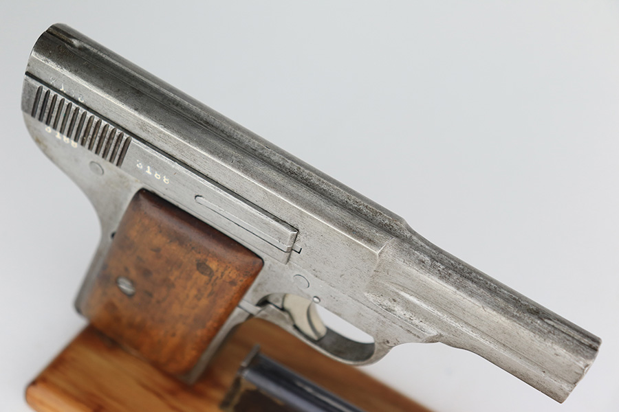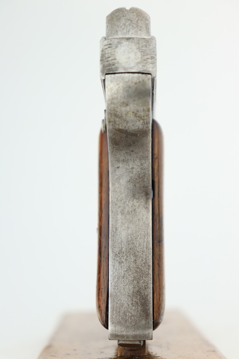 11/20/23 – This is a super rare, “lunchbox special” example of the Armand Gavage pistol from WW2. This pistol has no test proofs or waffenamts, and was never finished. So presumably, this example was left on the factory floor or “smuggled out in a lunchbox” as it did not complete testing/inspection. It’s in the proper German serial range, and one of only a few thousand ever produced. There are five other known examples without proof marks that were left in the white, with one of them being only two digits off from this one. The pistol is in good condition otherwise, and the bore is clean with strong rifling. The grips show age and handling wear but no cracks. More information provided below: