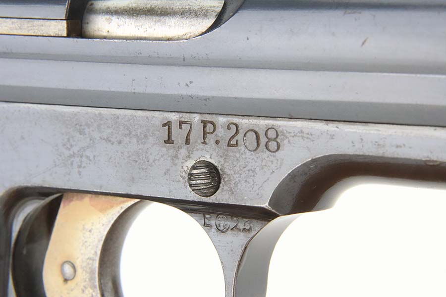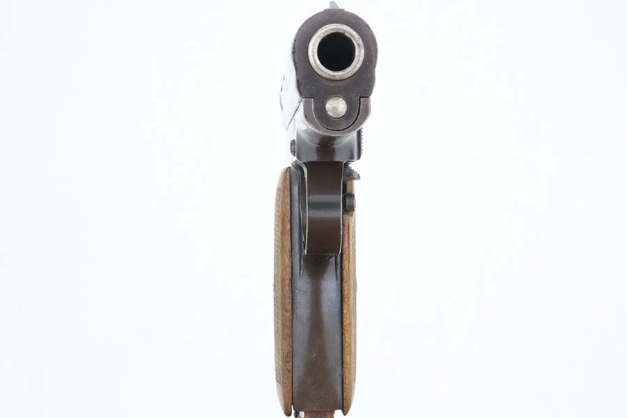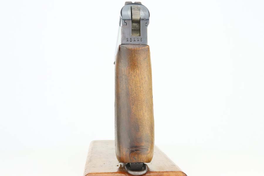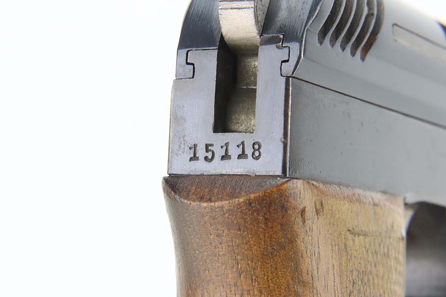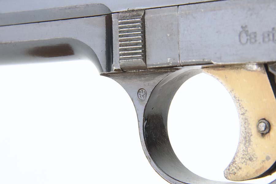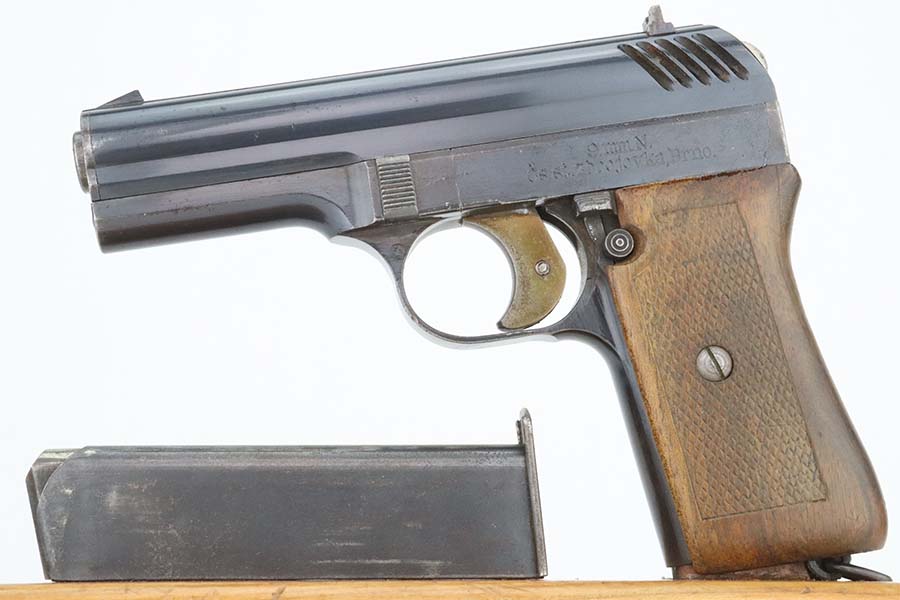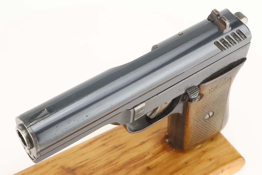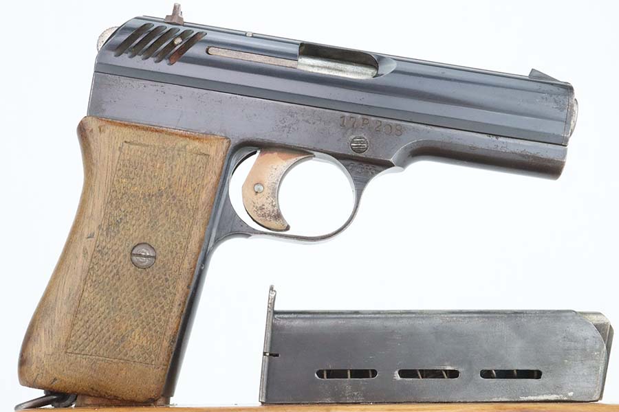 3/28/24 – The Czech vz.22 pistol was manufactured by Zbrojovka Brno (the Brno Weapons Factory) between 1920 and 1923. Though it was initially intended to be a production military pistol, it ultimately served as a mere prototype for the vz.24 which was manufactured by Ceska Zbrojovka (CZ). In October of 1918 Czechoslovakia declared its independence from the Austro-Hungarian Empire, and in 1919 took steps to establish an arms factory in Brno, which was initially staffed largely by Austrians and Hungarians because the Austrians had the requisite expertise in arms manufacture. The Prototype CZ-22 was notoriously unreliable and generally required individual tweaking with each pistol, which led to the full order of nearly 20,000 pistols largely being full of pistols that were quite dissimilar. This pistol is chambered in 9mm Nickl, which is like a rimless .380 ACP. It is also unit marked on the right side, reading ’17P.208′. This particular pistol retains 95-96% original blue, as it doesn’t have major finish loss but there is patina coming through. It comes with original wooden “wrap around” grips that are in excellent condition. Just as with later CZ’s this gun has the similar bottom release magazine. It has a strong bore with no major flaws. There is a Czech Lion and 1923 date on frame / trigger guard.