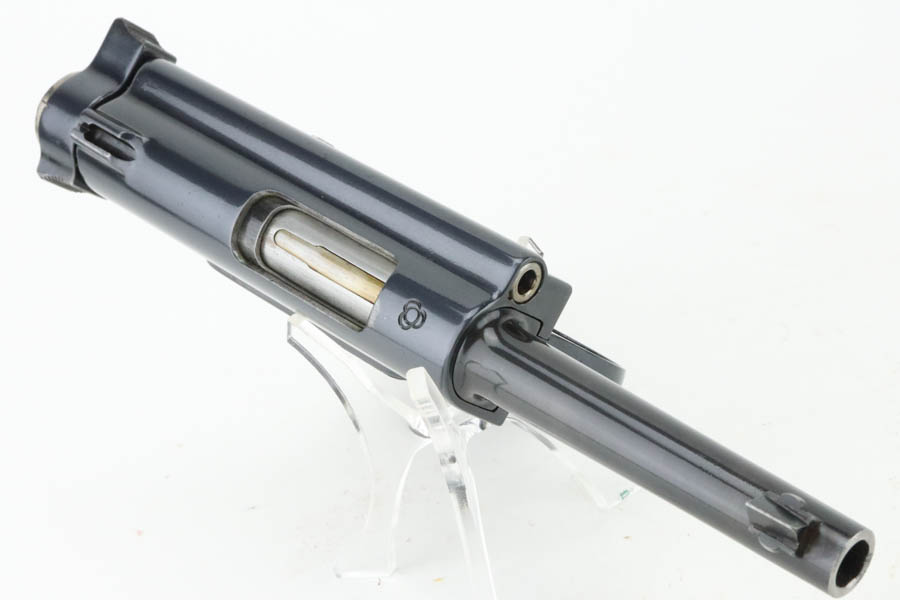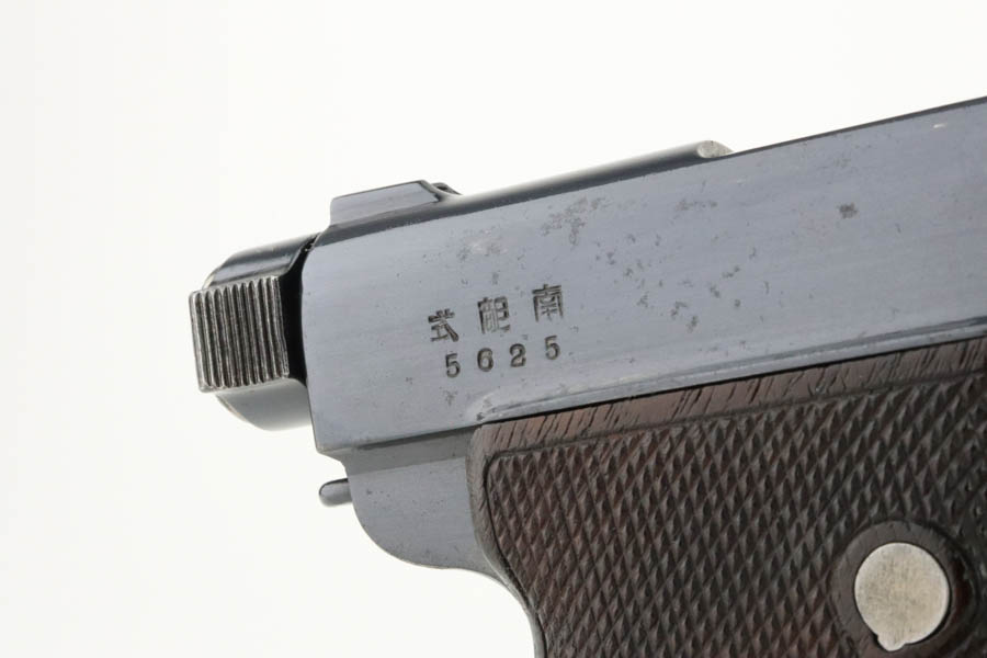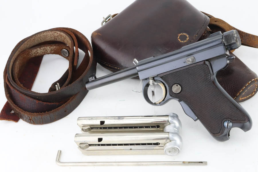 5/31/24 – This is a truly exceptional and complete example of a very rare Japanese Baby Nambu rig. The listing includes both of the original, matching magazines, a very rare clamshell holster with shoulder strap, an original cleaning rod and even six original rounds of 7mm ammo. The pistol is all matching and original, including the grips with the full four-digit serial inside. It has 98+% of the blue remaining with only very minor high edge wear and a tiny bit of surface oxidation. Strong, shiny bore. The grips are in great shape with no cracks. The holster is even more rare than the pistols, and this one is in fantastic condition. Beautiful pigskin pattern with strong leather top flap, and only a minor scrape on the back. The cleaning rod is also extremely difficult to find. Lastly, original 7mm Nambu cartridges sell for ~$50 a round. One of only 6,500 produced, and given the completeness of this rig, there are only a handful of comparable groupings still in existence.