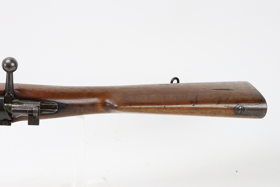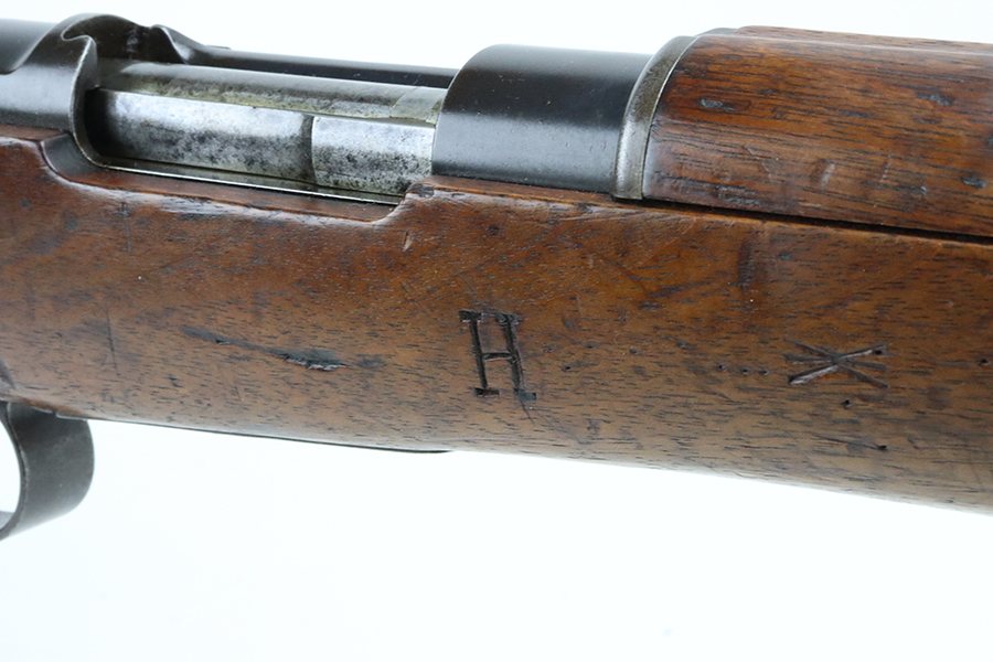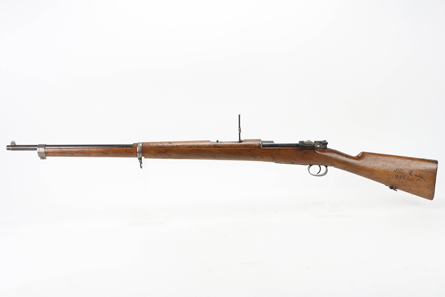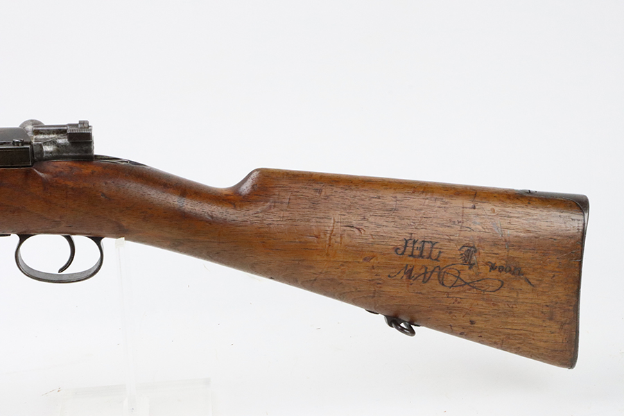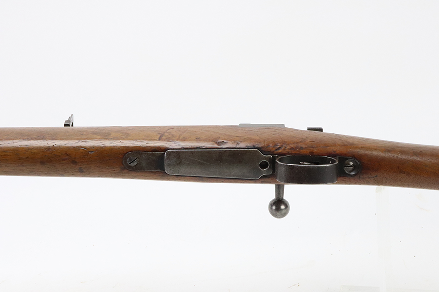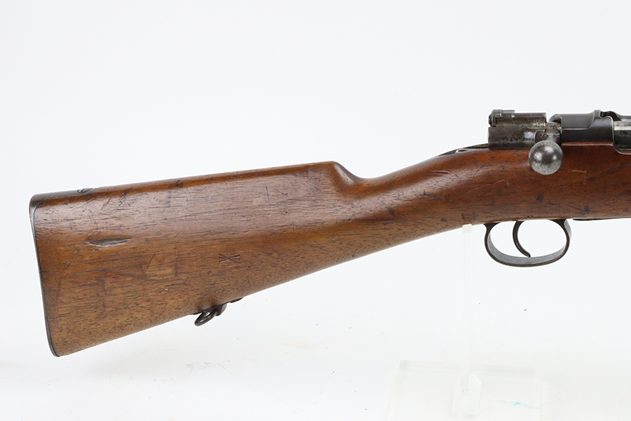 07/11/2024 – For sale is a Mauser Model 1896 made by Ludwig Loewe Company for the Boers prior to the Boer War. Based on the Mauer 1893, these rifles were the Boers’ primary rifles against the British Empire. This rifle is in great condition overall with a lot of the original bluing remaining on the metal. The receiver is stamped with “Mod Mauser 1896” and Loewe’s maker mark and serial number. The metal throughout the rifle has spots of oxidation and spots of browning with age but there are no pitting or heavy corrosion. The stock is in great condition but well worn. There is an engraved signature and what could be initials on the left side of the buttstock. The rifle has matching serial numbers on the receiver, stock, trigger guard assembly, magazine floor, and bolt. The bore has great rifling and is somewhat bright but it is darkening. The rifle is missing its cleaning rod.
