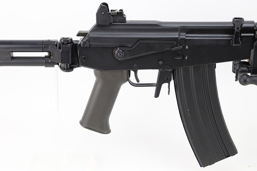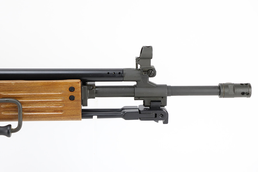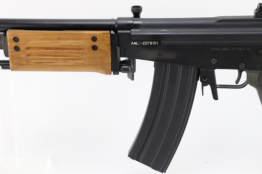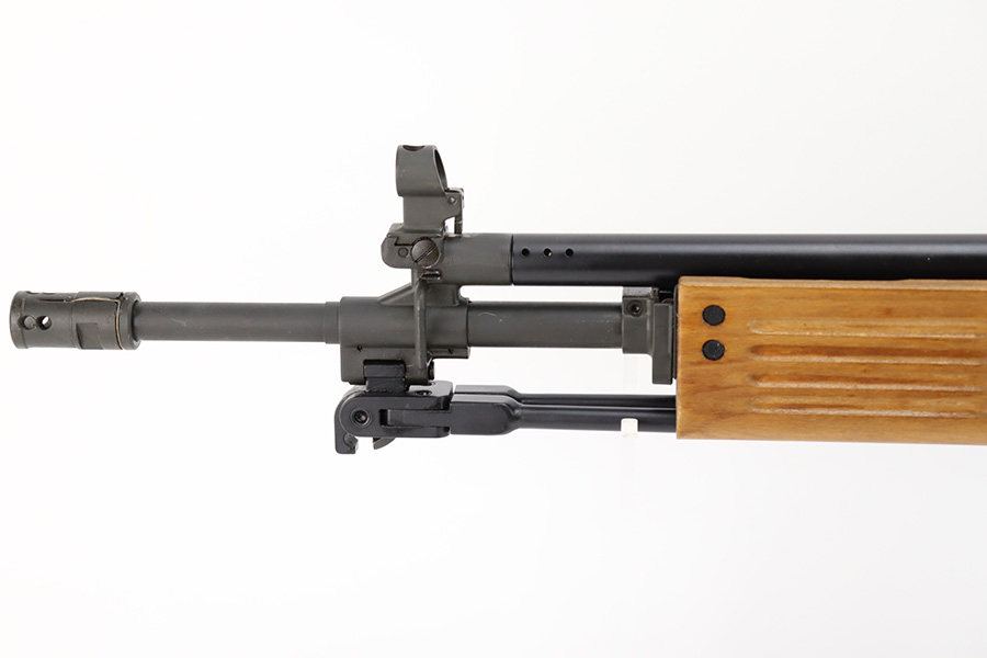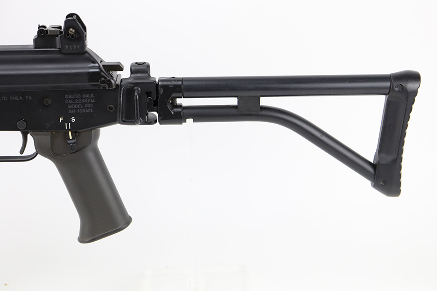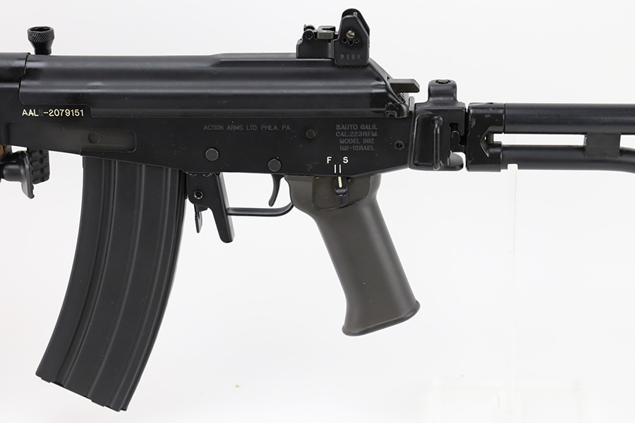12/28/23 – This is a near-mint example of the rare IMI Model 392 Galil. Only ~400 of these imported during the 1980s, these were made in Israel and imported by Action Arms of Philadelphia, the Model 392 is a semi-automatic sporting variant of the Israeli Galil/ARM family of AK-47-derived weaponry. Hooded post and 2-leaf peep sights with flip-up night sights, ported flash hider, and a milled receiver with thumb safety. 16in barrel with folding bi-pod and side-folding stock. Hardly any finish loss to note, and a minty bore.