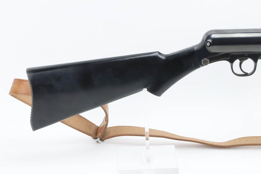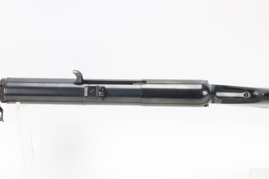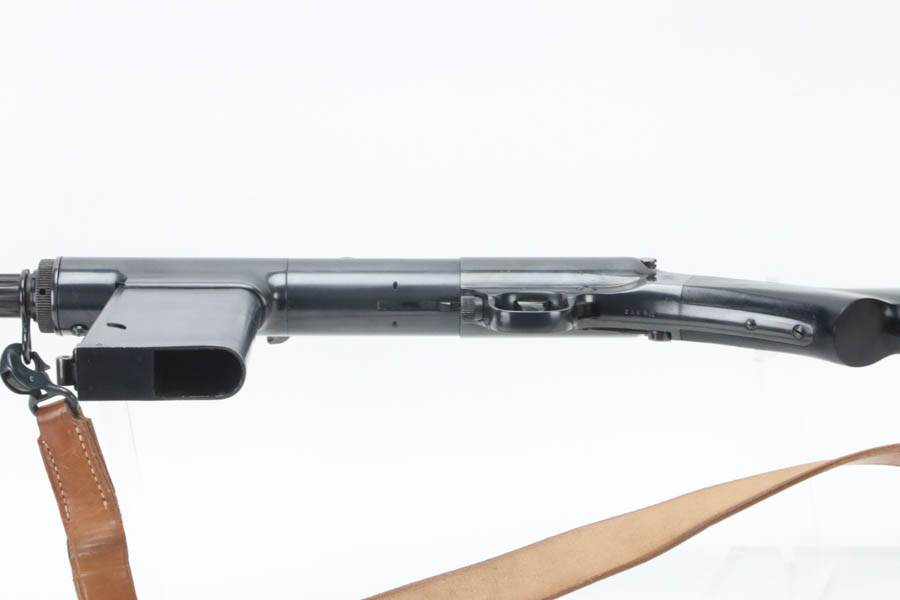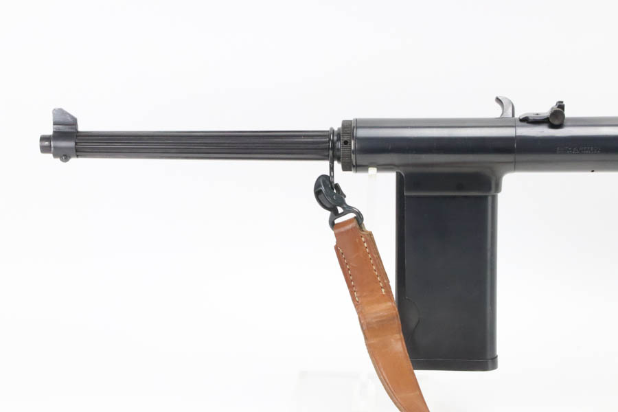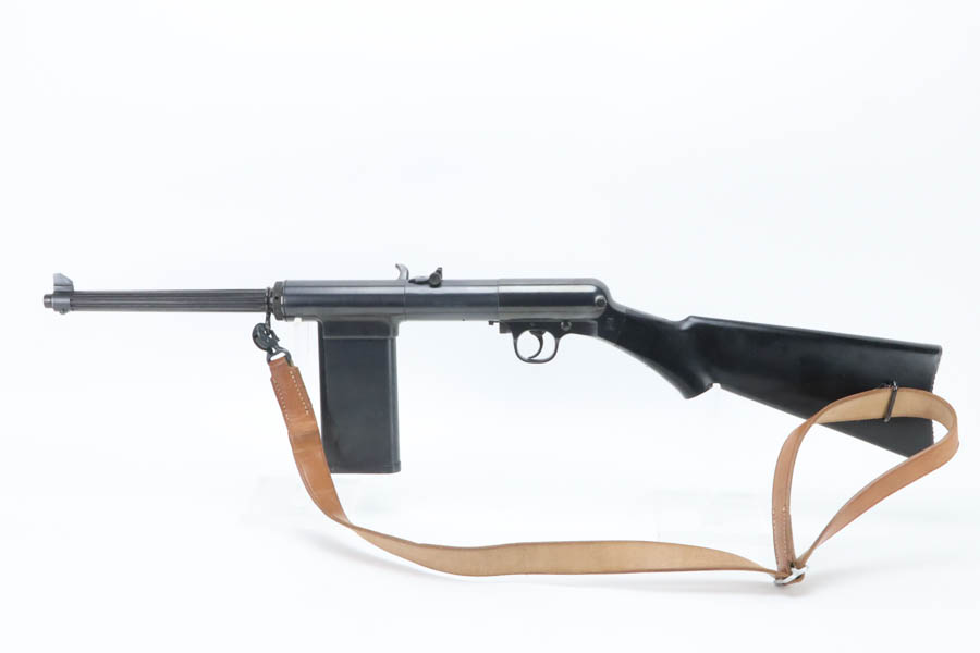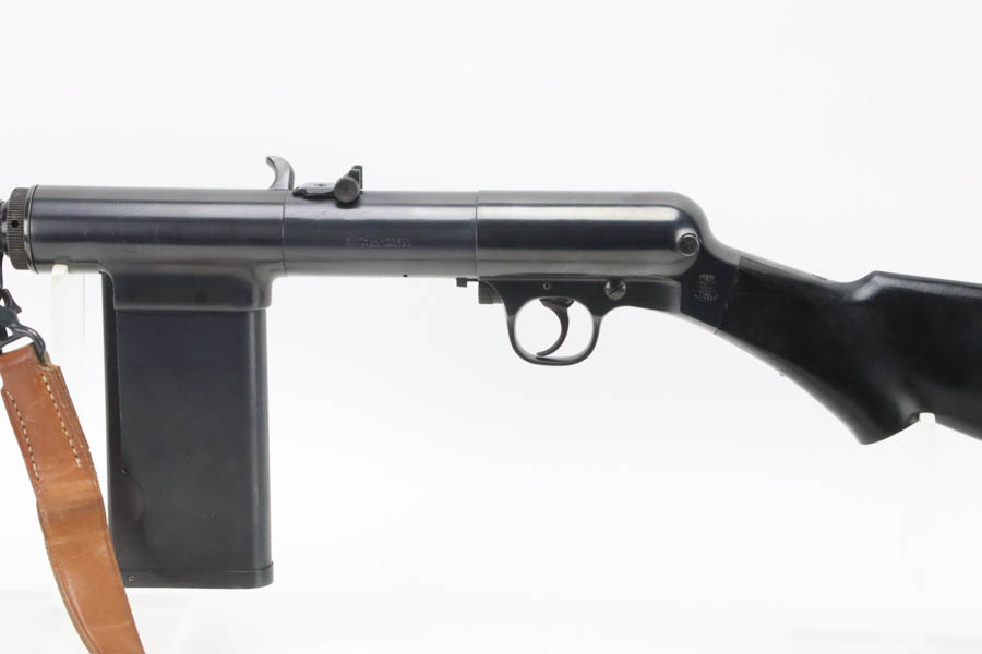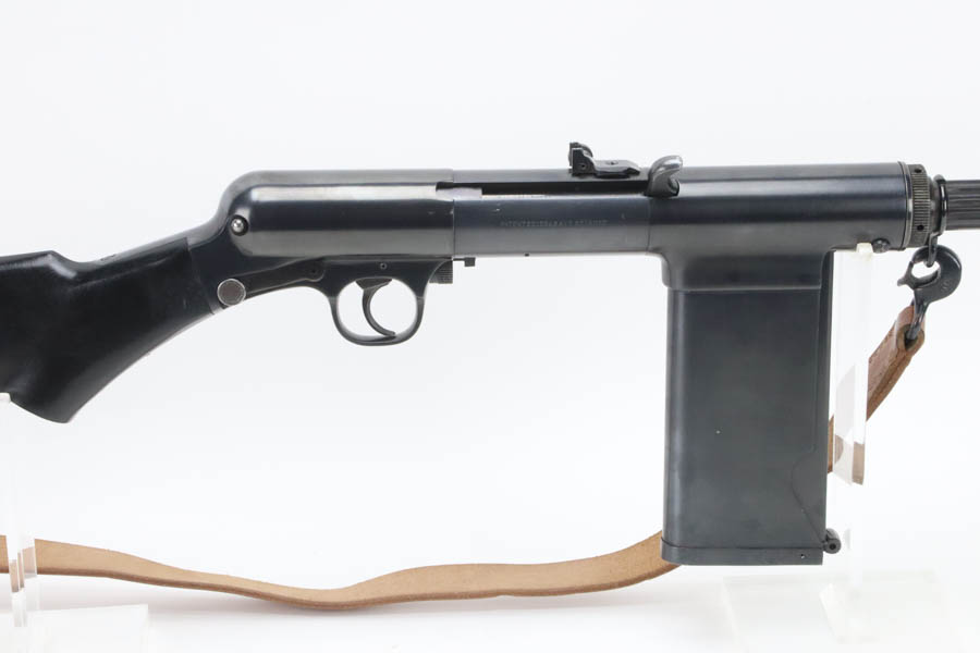 In early 1939 the British government asked Smith & Wesson to design a light rifle firing the 9×19mm Parabellum cartridge for military use. The British government advanced one million dollars toward production of the design following receipt of prototypes. Testing at the Royal Small Arms Factory revealed the rifle had been designed for cartridges as loaded by United States civilian cartridge companies, and the higher pressure United Kingdom military loads caused broken receivers after as few as 1,000 rounds. The British government required redesign so rifles would withstand firing 5,000 rounds without failure. The receiver was strengthened with an external sleeve to meet that requirement. Rifles with the strengthened receiver were designated Mark II and rifles with original receivers were subsequently referred to as Mark I. This rifle is one of the original Mark I examples in exquisite, original condition. The British government cancelled the production contract after receiving 60 prototypes and 950 rifles. Approximately 750 were Mark I rifles, and about 200 were the stronger Mark II design. The rifles were not issued to the armed forces and most were cut in half and dumped at sea when the second world war ended. Five were saved for display in museums including the Tower of London. Smith & Wesson continued production with serial numbers as high as 2200 and the rifle was tested by the United States Army at Aberdeen Proving Ground. The Army rejected the design because the rifle was chambered for what was then a non-standard cartridge for the United States military. There was some discussion about redesign to permit full-automatic fire, but production was halted after a total of 1,227 rifles had been manufactured. The short-barreled weapons were considered unsuitable for sale to civilians under the National Firearms Act, so an inventory of 217 remained at the Smith & Wesson factory until a dealer negotiated Curio and Relic Firearms status with the Bureau of Alcohol, Tobacco, Firearms and Explosives in 1975. Firearms collectors subsequently purchased 137 Mark I and 80 Mark II rifles.
