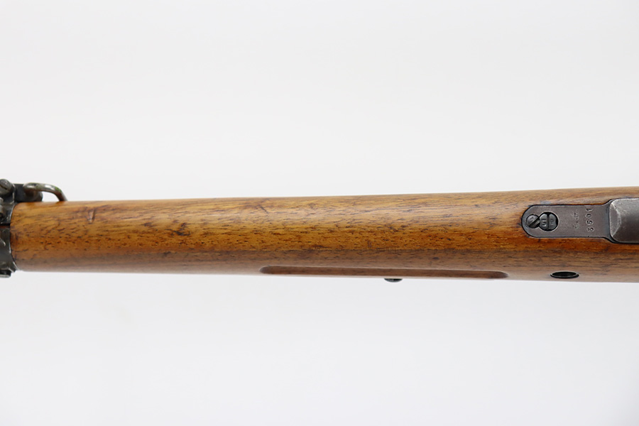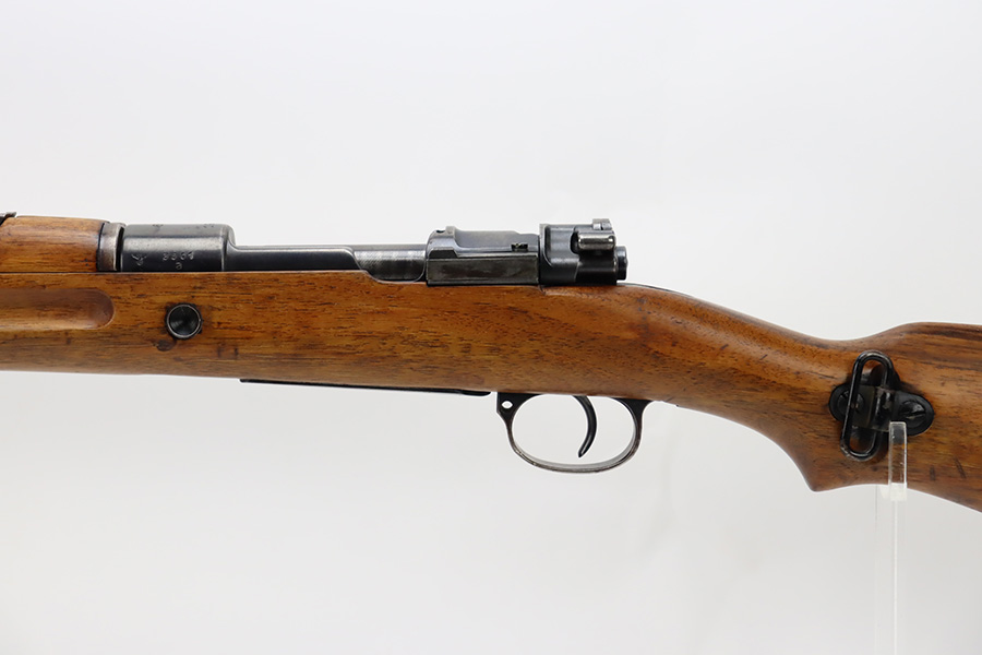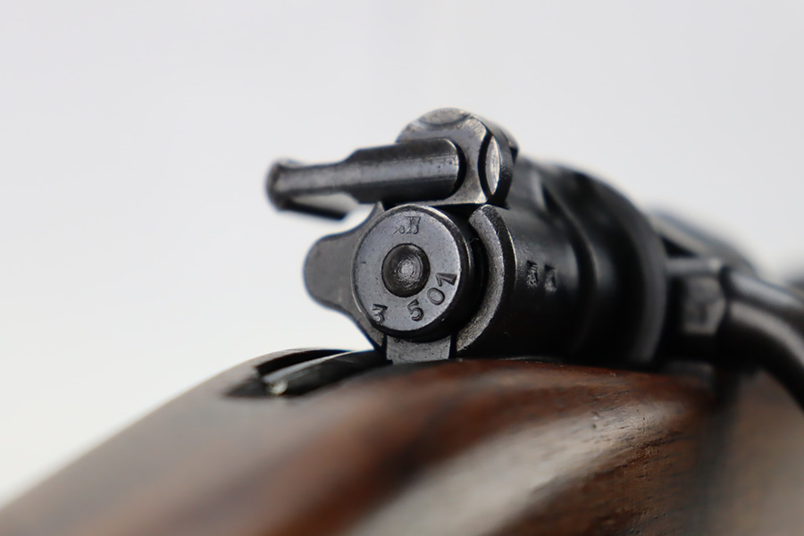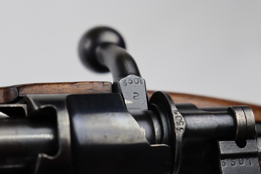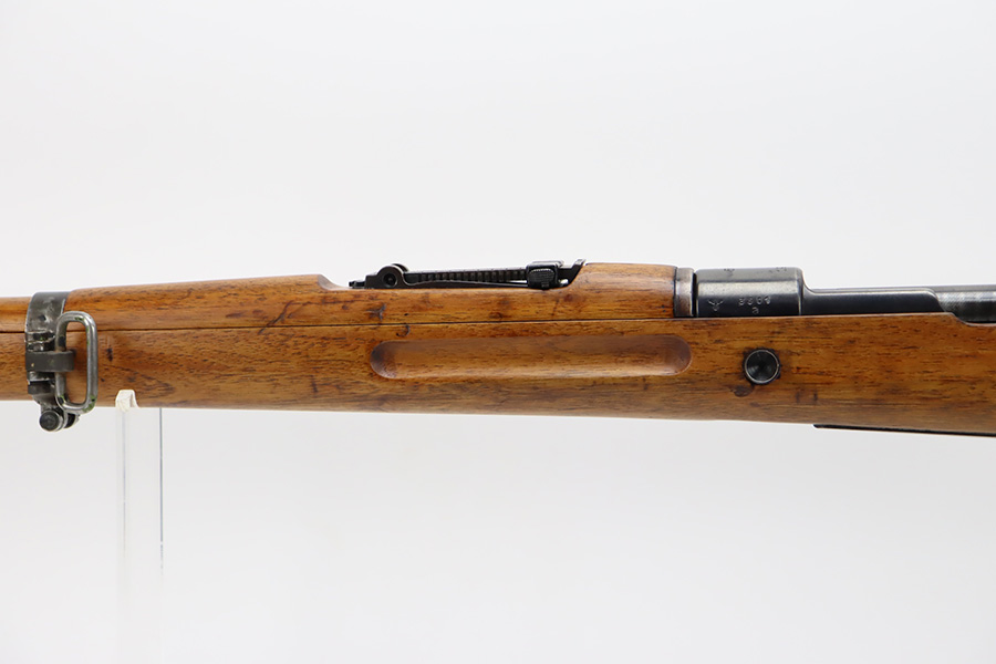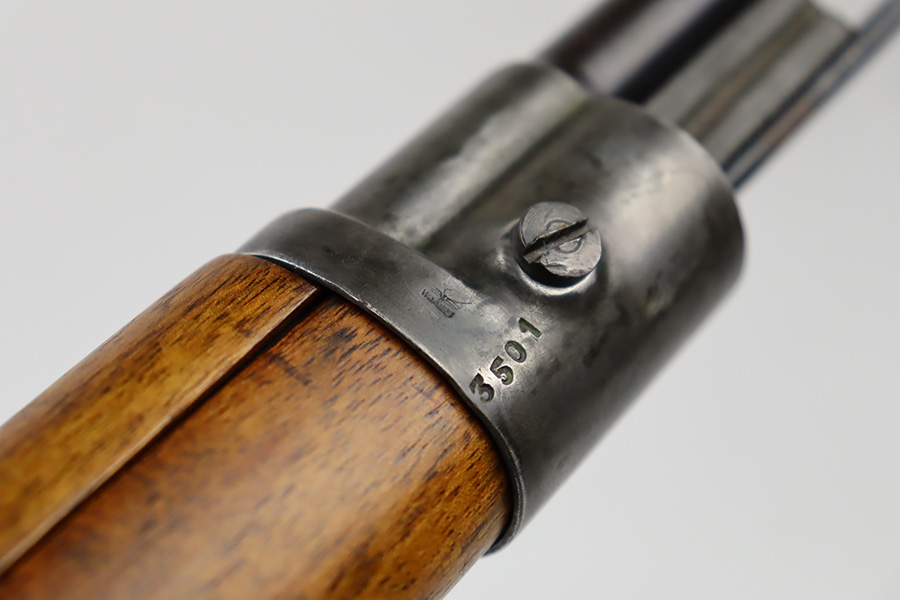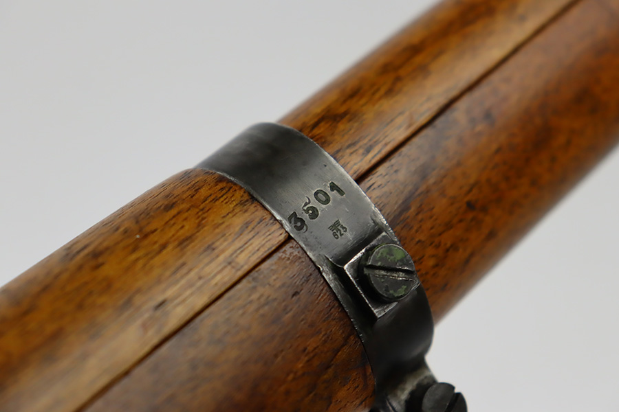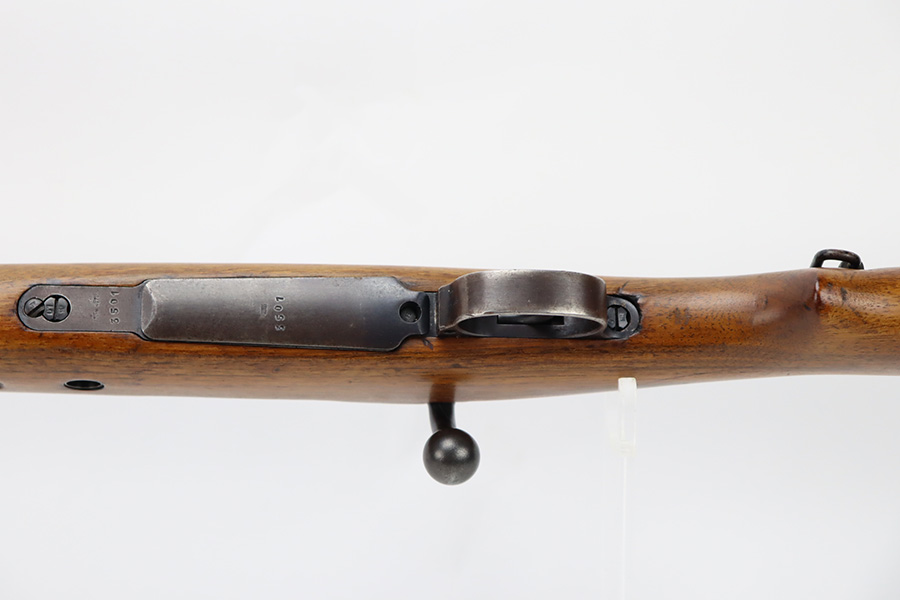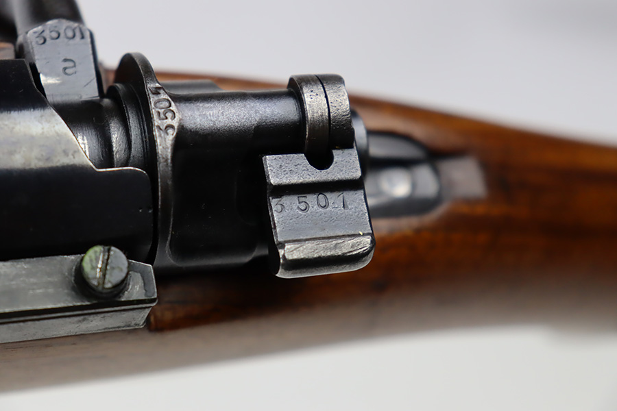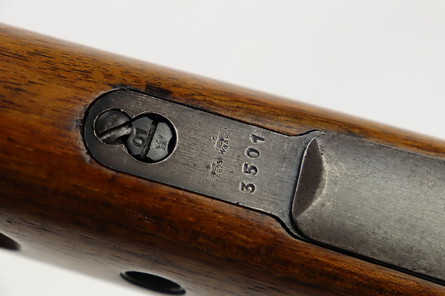 10/5/23 – This is a very rare Steyr G29(o) assembly that was part of a small Luftwaffe contract. These rifles were part of a separate contract that was being manufactured at Steyr when the 1938 annexation of Austria occurred. The Luftwaffe, in desperate need of small arms, immediately took over the production and the rifle was modified as much as possible to the standard 98k Rifle configuration. It was made briefly in 1938 and early 1939, after which the factory was re-tooled to manufacture the standard K98k. This one is matching and has retained roughly 75-80% of its finish. There is some spotty wear around the muzzle and areas of finish loss on the barrel bands and on the floor plate/trigger group. Spotty oxidation on the butt plate. Excellent wood stock that has been lightly sanded. Minty bore.